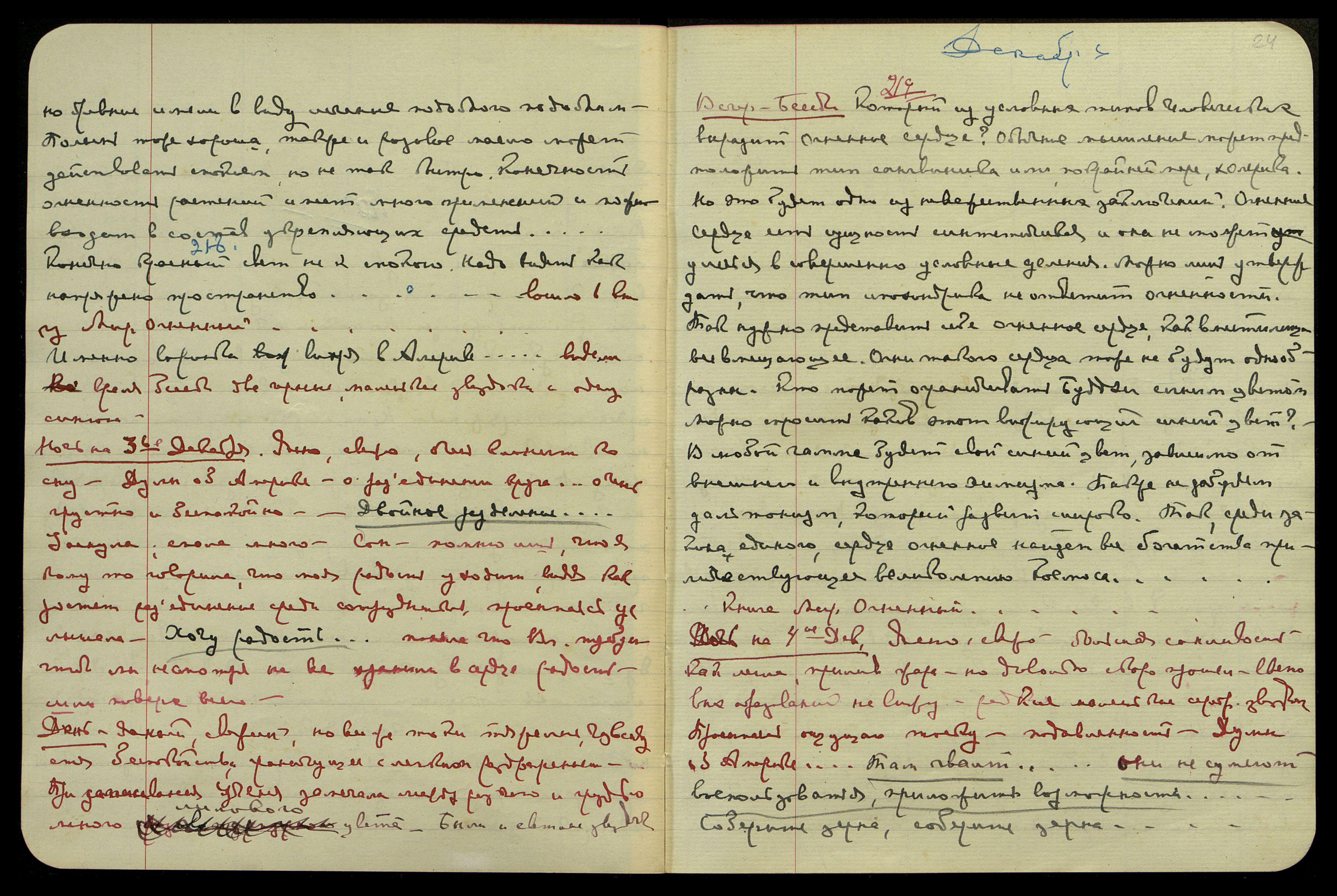 Ночь на 4-е дек[абря]. Ясно, свежо, большая сонливость. Как легла, прилив жара, но довольно скоро прошел, световых образований не вижу, редкие маленькие серебр[яные] звездочки. Просыпаясь, ощущаю тоску, подавленность. Думы об Америке... "Там гвалт... они не сумеют воспользоваться, приложить возможности... Соберите зерна, соберите зерна..."