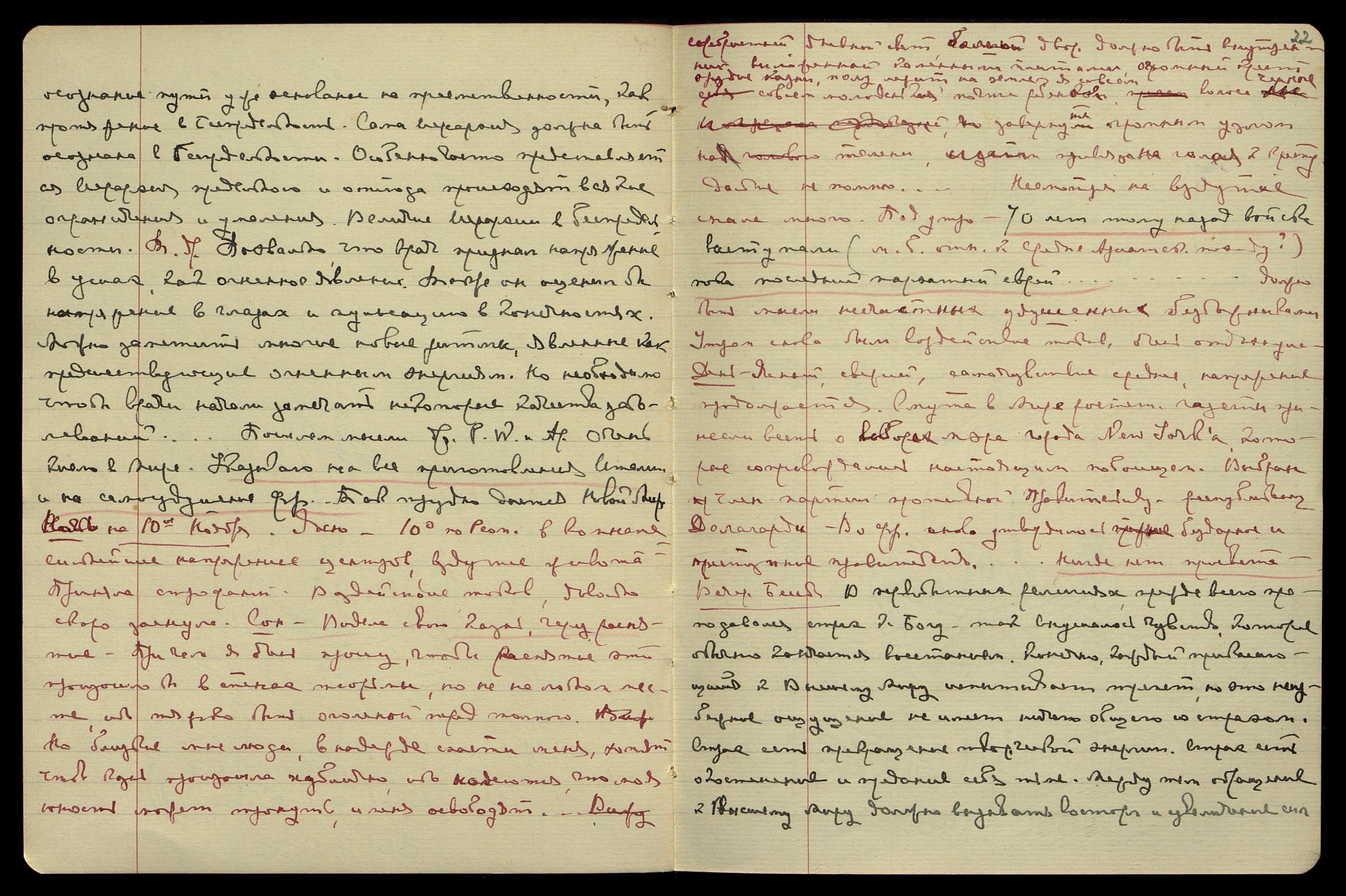 День ясный, свежий, самочувствие среднее, напряжение продолжается. Смута в мире растет. Газеты принесли весть о выборах мэра города New York'а, которые сопровождались настоящим побоищем. Выбран член партии противной Правительству − республиканец Делагарди. Во Фр[анции] снова утвердилось бездарное и преступное правительство… Нигде нет просвета.