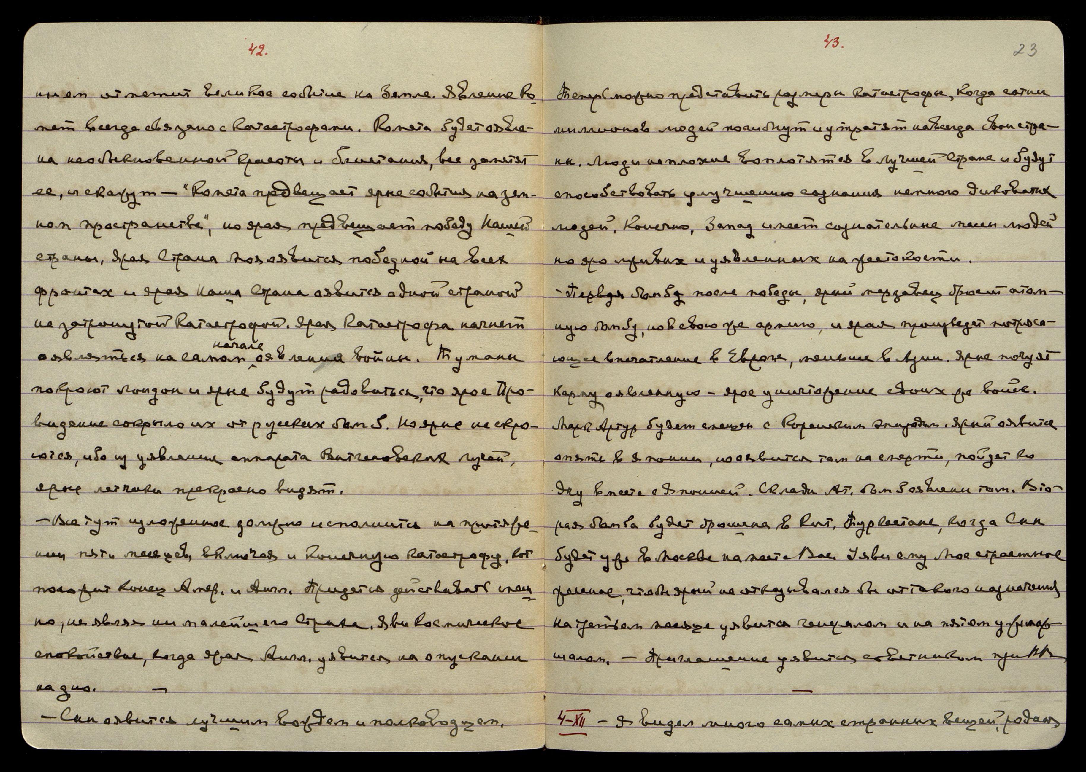 События уявляются в следующем порядке: сначала корейский эпизод закончится полным поражением Запада − Ам[ерики] и Англии. Затем Страна Моя станет на уявление событий страстно серьёзных. Смерть Сталина. Страна напрягается в уявлении событий в ней страстного Космического срока. Страна уявится в опасном положении и ярая позовет вас. Ярые оявятся как спасители страны и ярая оявится на объявлении ей войны Амер[икой] и Англией. Но, как по мановению жезла, все станут на защиту своей страны, на союзе с Монголией и китайцами, и даже маленькие корейцы встанут на защиту России, и охранят свои берега от новых пиратов. Страна Моя оявится на окружении ее.