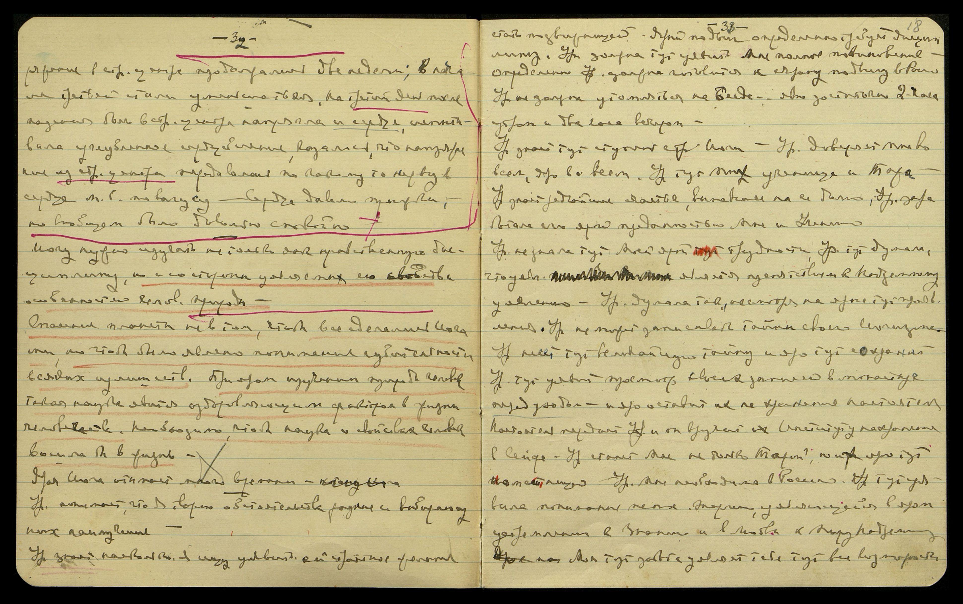 Ярая Моя Страна не только не развалится, но яро станет еще крепче. Ярая тут предоставит свободу Эст[онии], Ф[инляндии] и Латвии, но займет тут только те места, которые ей нужны, но ярые тут гавани, но яро предупредит, что за предательство снесет их с лица Земли. Ярая Моя страна распространится на Север, Юг и Восток − утвердится на Востоке. Яро станет страной Восточного Сев[ерного] Союза. Страна Моя не станет хаотичной, наоборот, ярая объединит малые и большие народы под покровительством России.