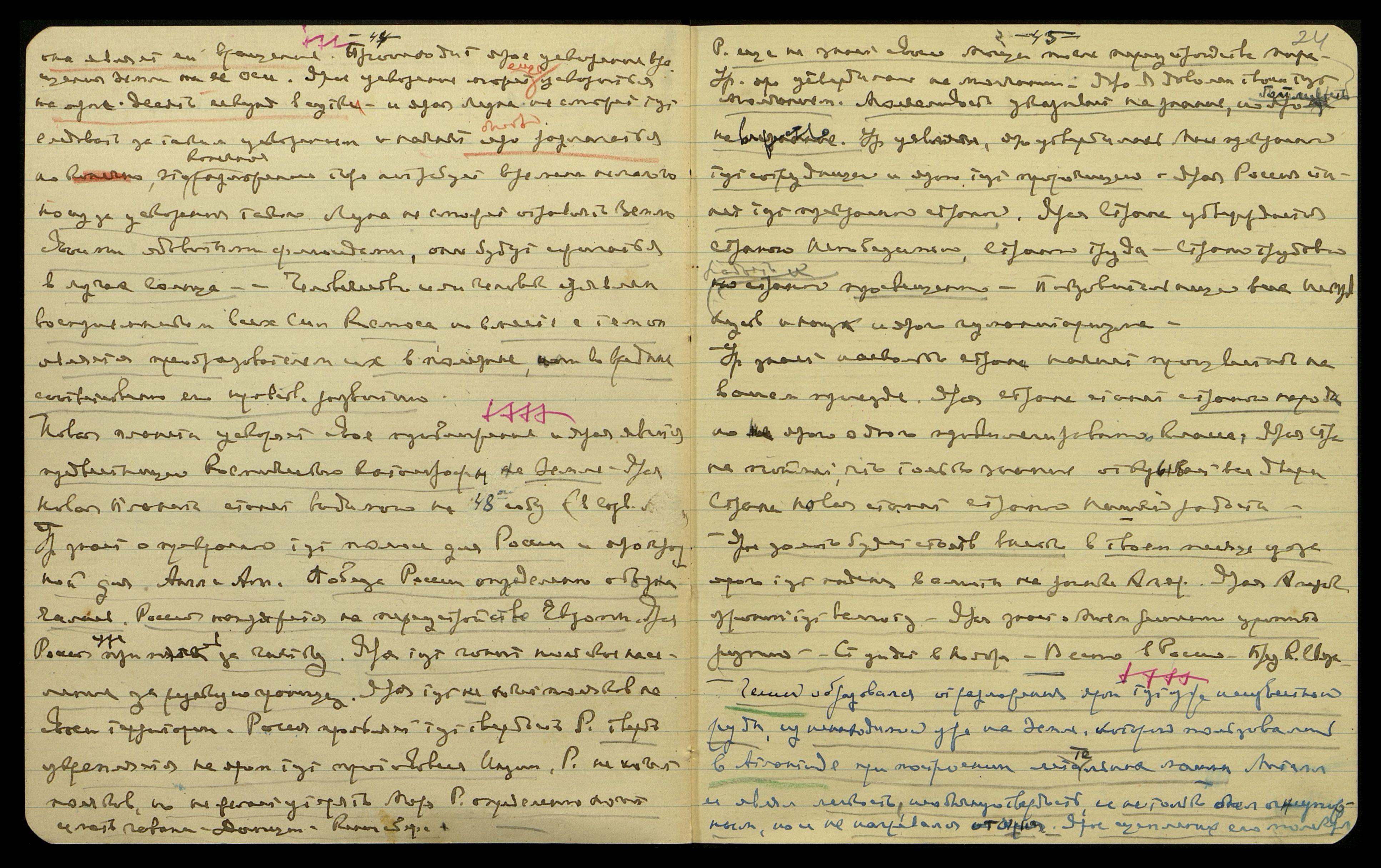 Урусвати знает о прекрасной тут полосе для России и яро грозной для Англии и Ам[ерики]. Победа России определенно обозначилась. Россия напряжется на переустройстве Европы. Ярая Россия уже принялась за чистку. Ярая тут гонит польское население за русскую границу. Ярая тут не хочет поляков на своей территории. Россия проявляет тут твердость. Р[оссия] твердо укрепляется на яром тут противовесе Индии. Р[оссия] не хочет поляков, но не желает утерять моря. Р[оссия] определенно хочет иметь гавани − Данциг** и Кёнигсберг*4.