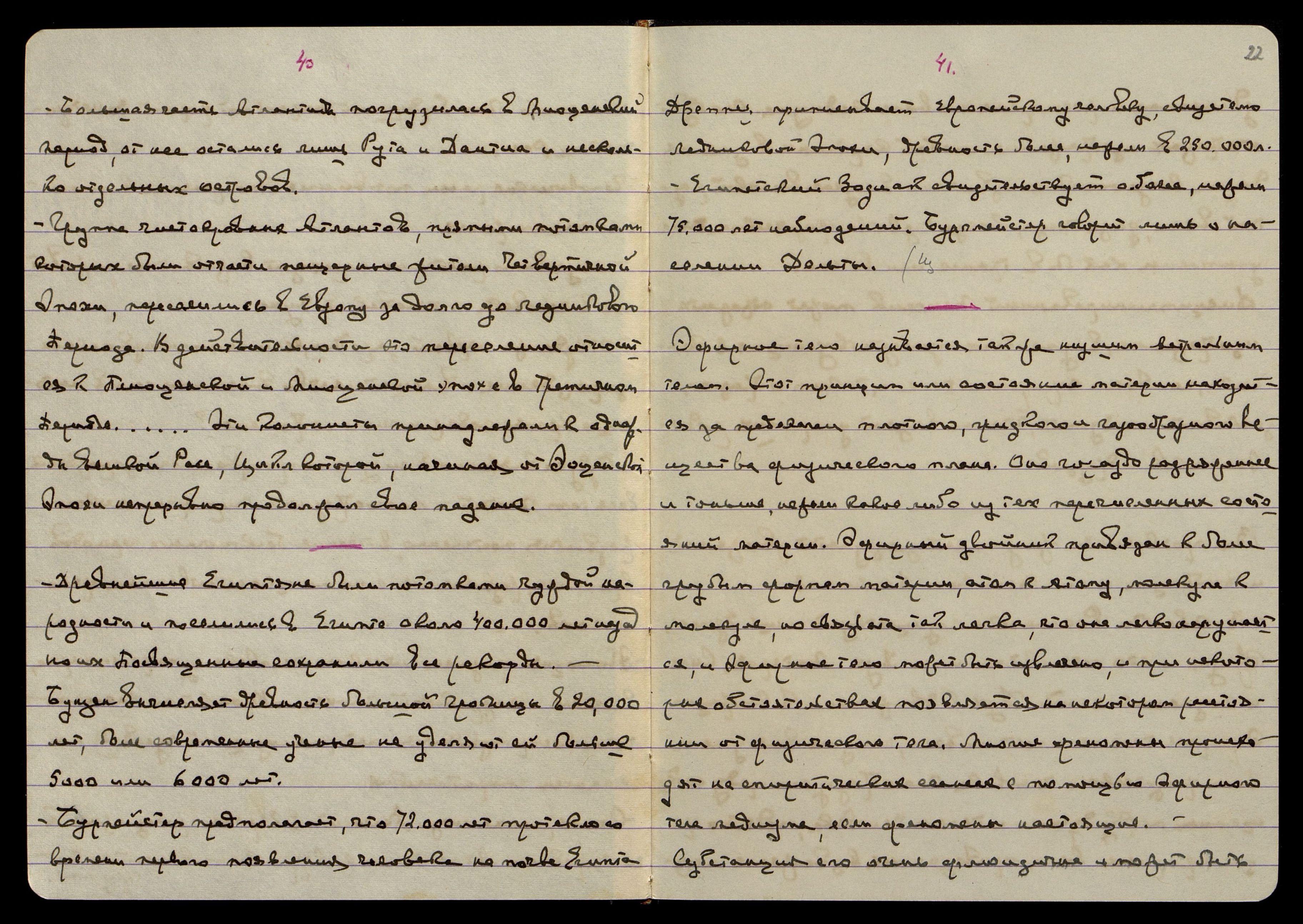 Дрейпер** приписывает европейскому человеку, свидетелю Ледниковой Эпохи, древность более, нежели в 250.000 л[ет]. Египетский Зодиак свидетельствует о более, нежели 75.000 лет наблюдений. Бурмейстер говорит лишь о населении Дельты.