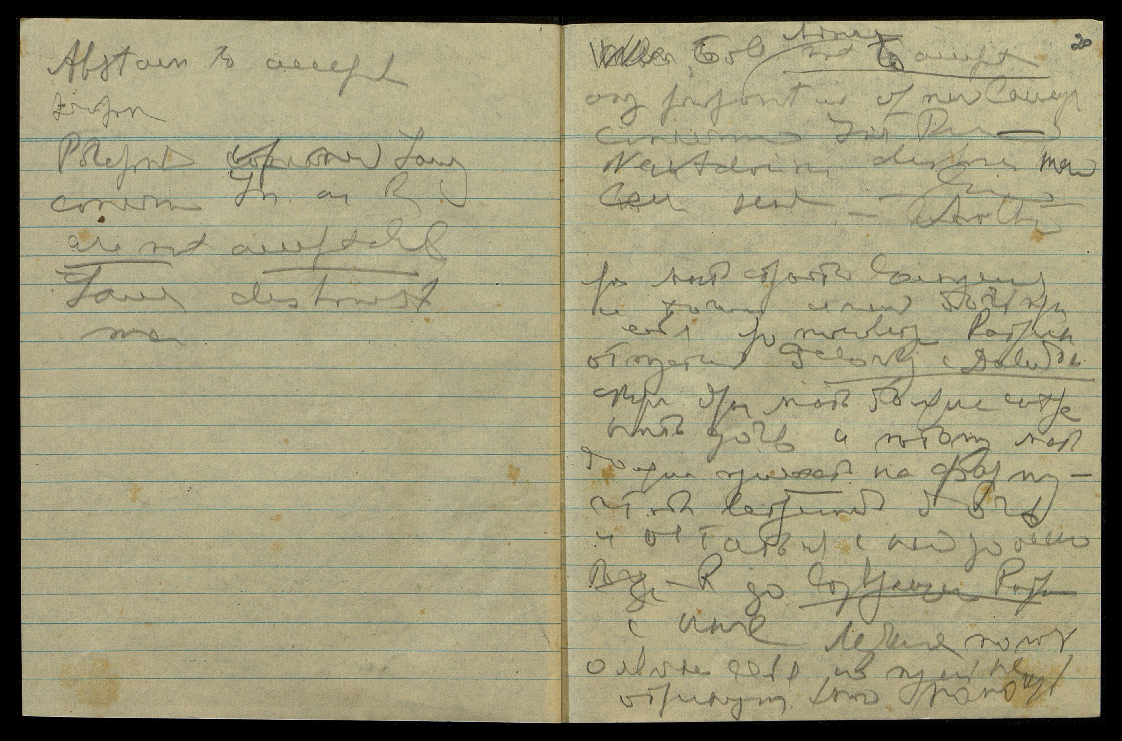 Но ярый Дав[ид] должен отъехать из Швейц[арии] не позже 15 числа, ибо яр[ый] Мне нужен в Америке. Моя сотрудница оявится много лучше без него, ибо ярый страстно раздражает ее.