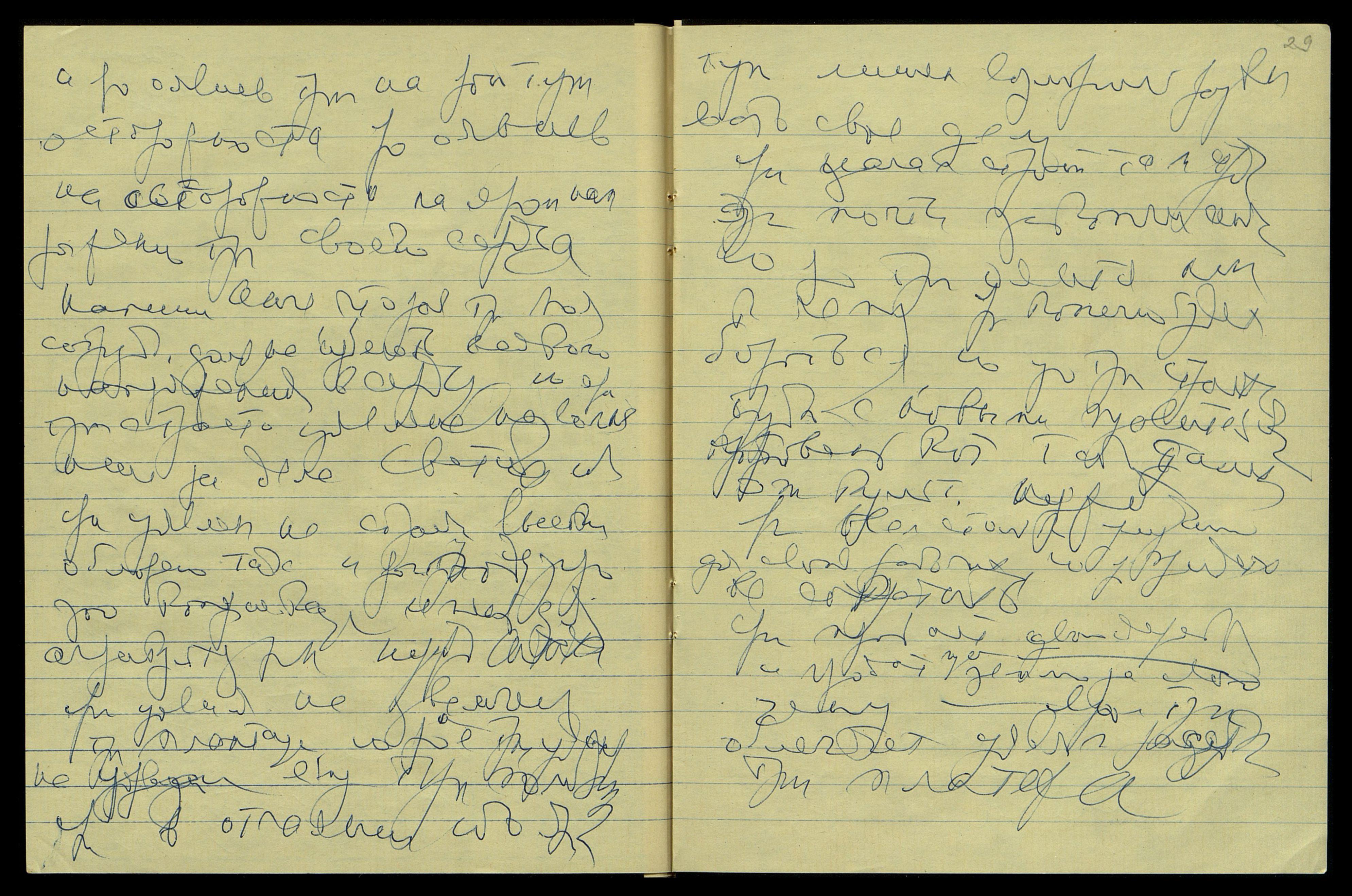 Яро можно не только основать такое общество, но ярая Инге не должна участвовать в нем. Ярая может лишь наезжать изредка и яро тут не принимать на себя никакой работы, ибо ярая имеет Миссию окончить перевод Тетради [слово неразборчиво] и яро тут оявиться на ярой тут страстной новой работе по переводу и ярой тут книги "From the Mountain Top" [англ.: "С горной вершины"] — ярая книга эта оявлена Нашим Владыкой, и яро тут уявите её как можно красивее и ближе к смыслу, так хоте[лось] бы передать — почуйте в ней истинный, не затуманенный смысл, извращенный недостатком выразительности англ[ийского] языка. Ярая Книга Мне также дорога, как и уявленные Нам Книги Писем. Л[а Дью] Иллариона Мне менее близка.