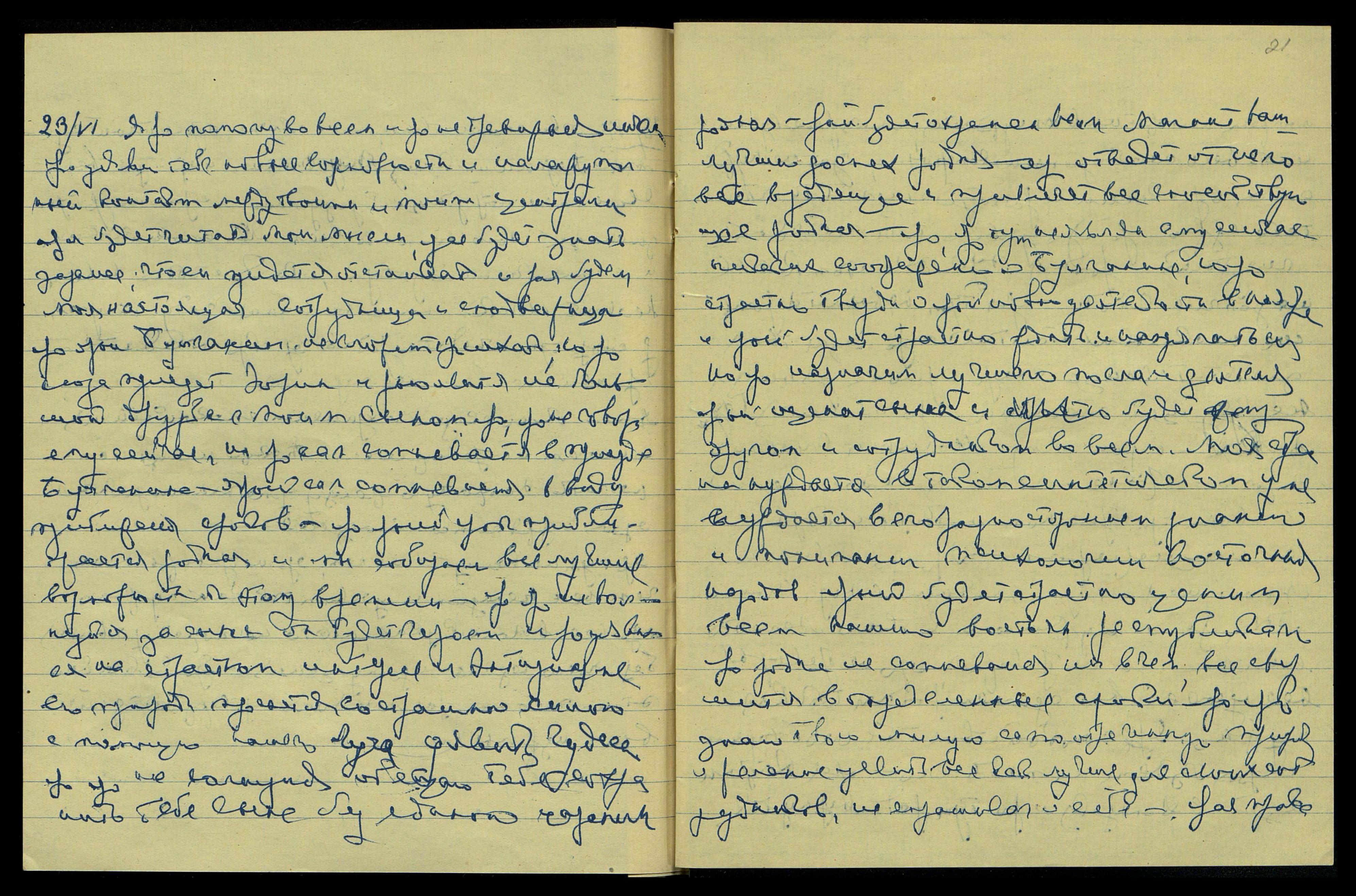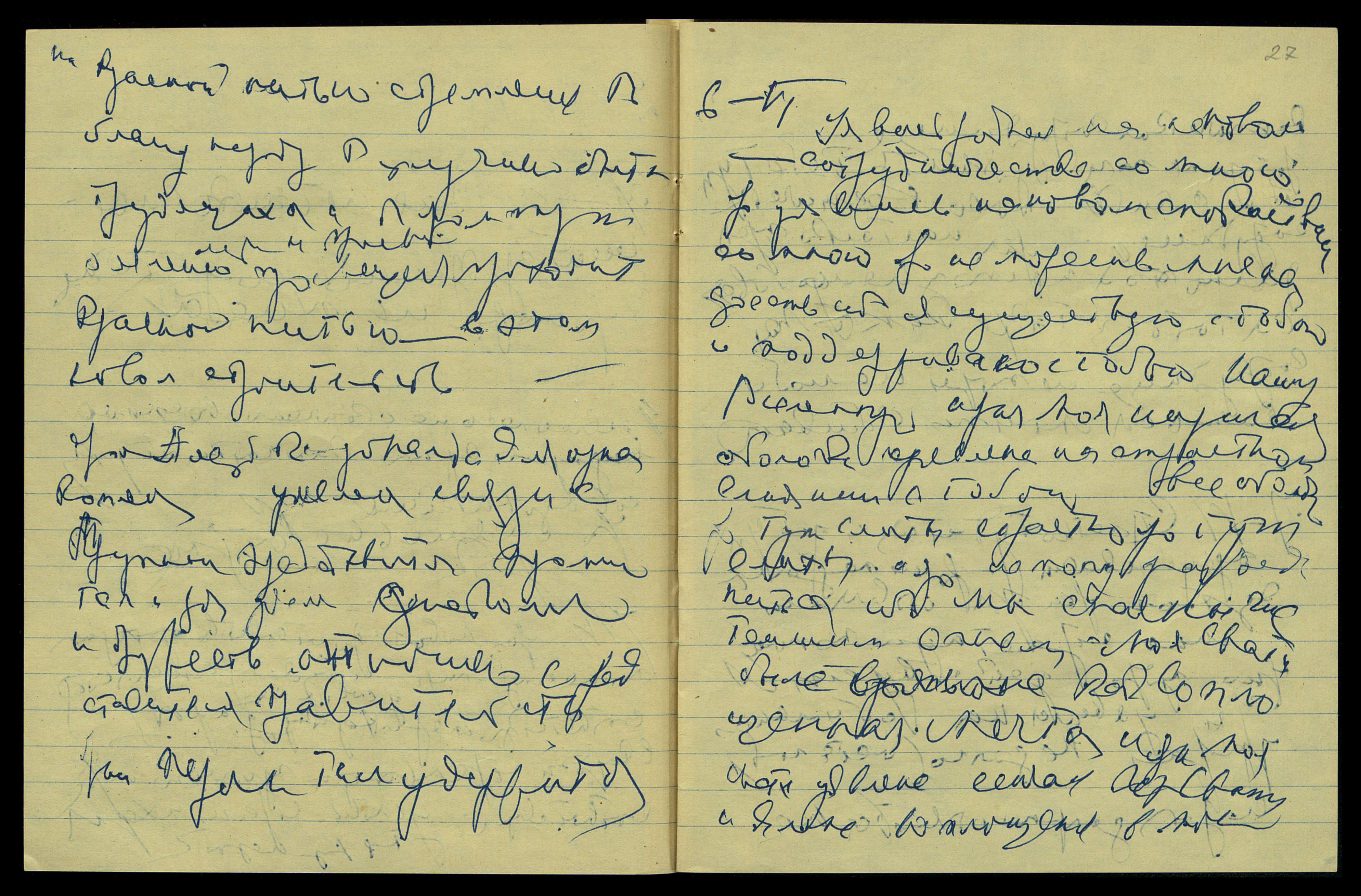 Ярая напишет письмо страстно краткое, но и нужное Зине. Яро ояви ей свою усталость ярко, родная, и яро ояви Мою жену на скором свидании с ней. Яро оявимся скоро на свидании. Яро еще не пиши о невозможн[ости] Дедлею перенести вибрации Индии. Ярый может определенно ослабить Сердце. Ярое сердце определенно ослаблено саксофоном, и ярый не сможет. Яро тут состав его организма [слово неразборчиво] ассимилировать Лучи Индии.