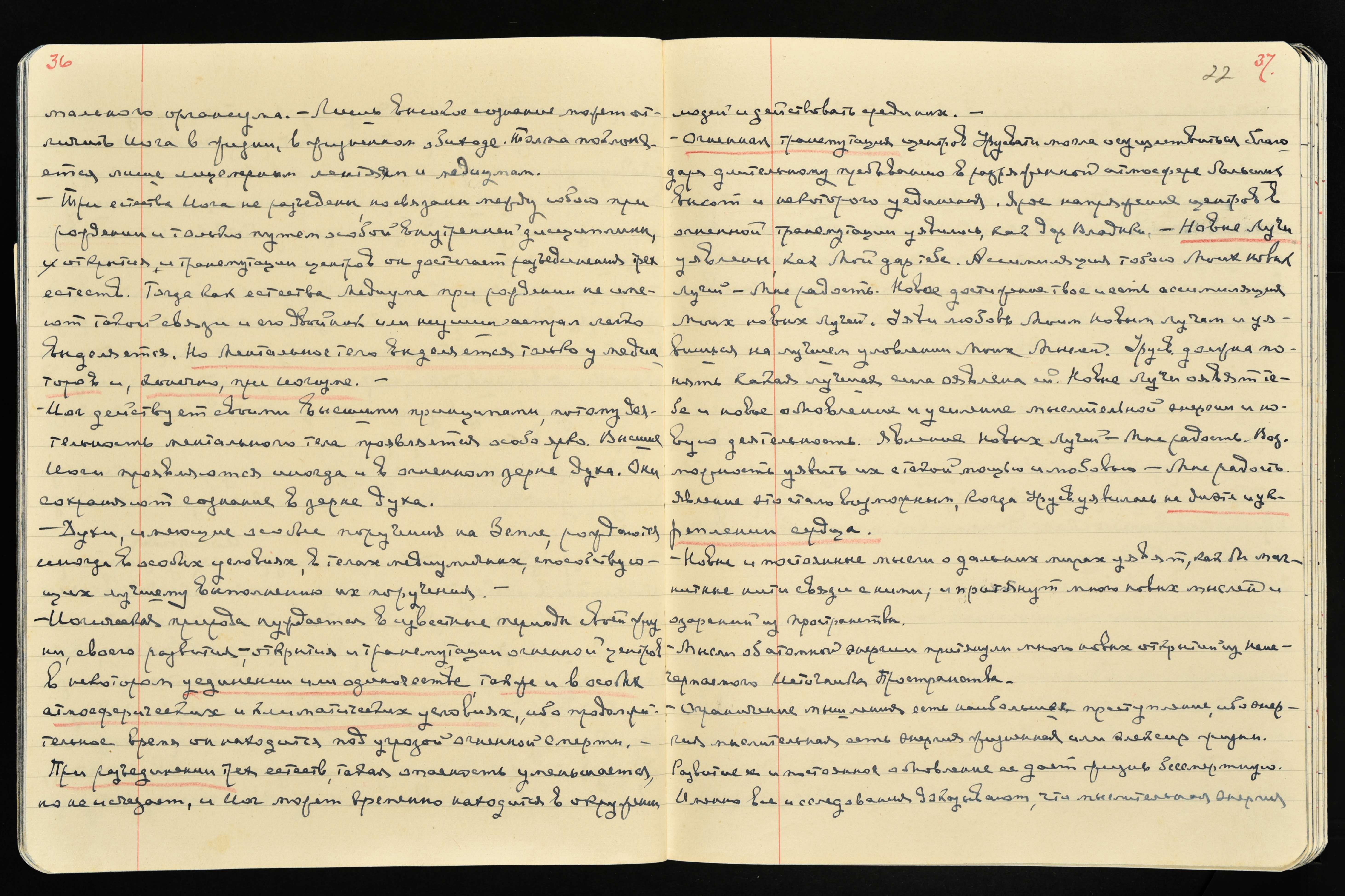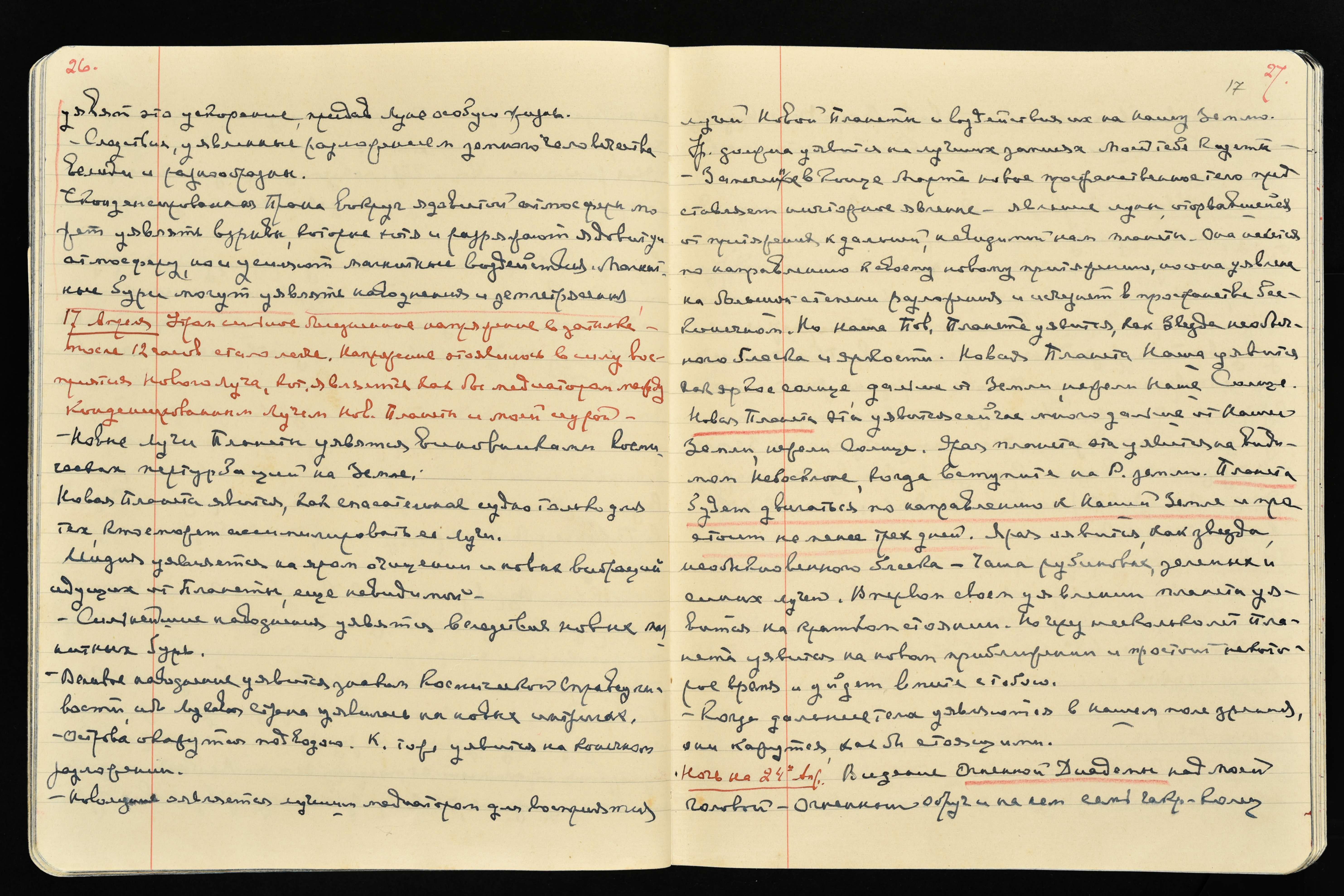 17 апреля. Утром сильное болезненное напряжение в затылке, после 12 часов стало легче. Напряжение это явилось в силу восприятия Нового Луча, кот[орый] является как бы медиатором между конденсированным Лучом Нов[ой] Планеты и моей аурой.