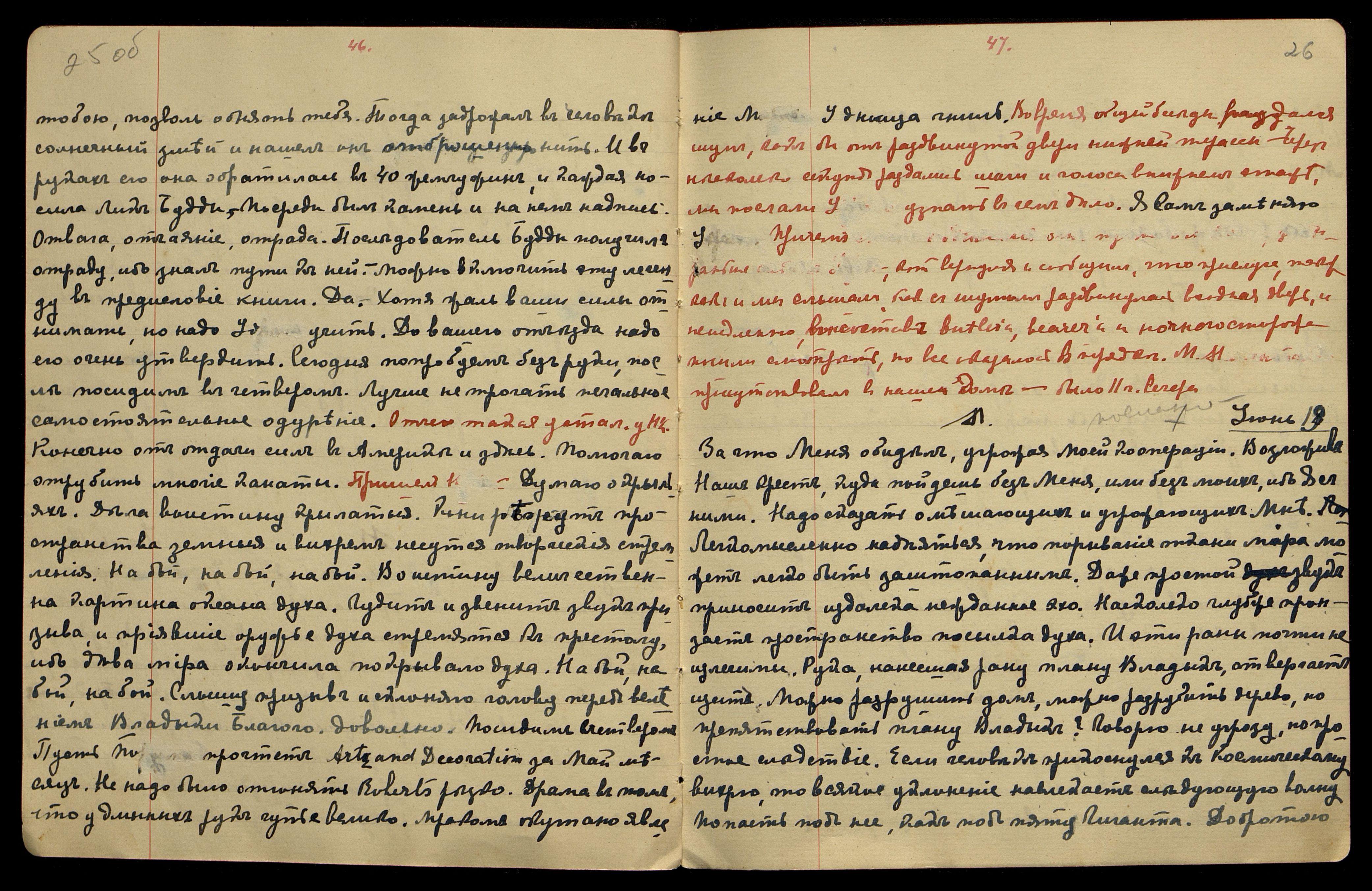 Урусвати слышала голос Будды. Теперь предложу, как поступил бы Я на месте Ф[уямы] — поехал бы осенью в Америку, чтобы лично закрепить дела. Явление на один месяц может равняться письмам двух лет. Данные напутствия личных дел лучше сказать лично. Чую, лучше отвезти Л[юмоу], лучше прямо в Америку. Пусть пришлют приглашение на экстраординарное собрание корпорации, и заказ может быть продолжен по возвращении. Явление нужно. Можно ехать в октябре, в половине. Дом нужно на месяц продолжить. Затем можно встретиться по дороге в Альмору. Укажу потом. Когда холодно, лучше запросите о пароходах. Явление жены губернатора поможет в визе — была, достаточно. Не вижу, как письмами можно передать планы. Явление Л[юмоу] обойдется гораздо лучше. Нельзя вызывать сюда никого из круга. Урусвати может отослать книги в банк. Пока не вижу другого решения. Если будет перемена, скажу, но меры примите. Если придется ехать ещё другое обстоятельство полезно — Урусвати может приблизить к беседам У[драю], это полезно перед отъездом. Кроме ночного провода иногда и беседа. Конечно, время серьезное, лишь отвага доведет. Сам Б[удда] посылает призыв. Я вижу, Ф[уяма] беспокоится, но давно сказано — он должен идти, как в Америке. Можно считать, успех Мо[рии] не нарушался, ибо иду осторожно и не ошибался в людях, и держал планы в отважной подвижности. По руд[...] можно будет передать. Новые разные подробности можно собрать. Учу вас, как скорее и полезнее успеть. Мою страну свезешь. Посидите вчетвером.