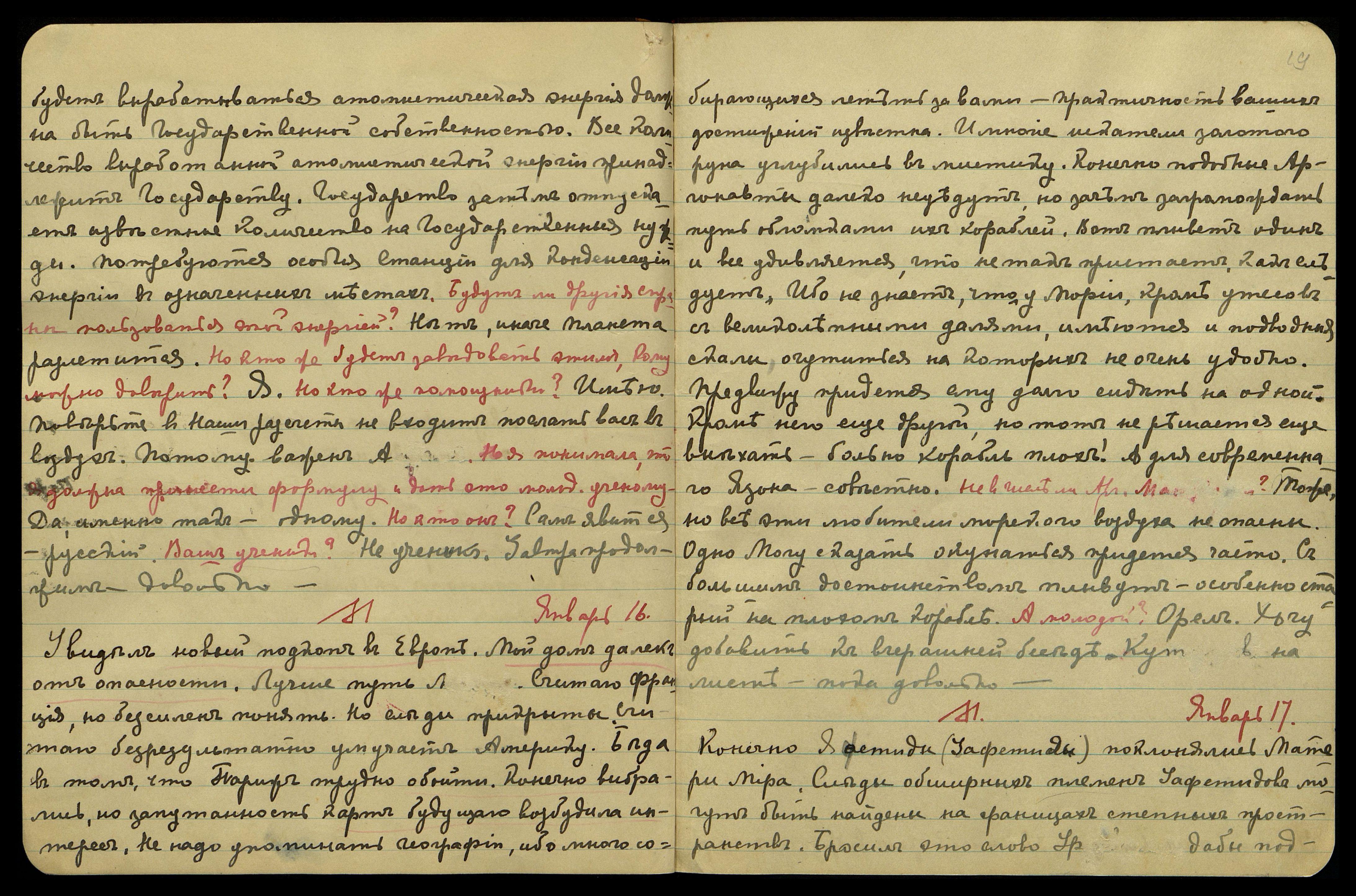 Увидел новый подкоп в Европе. Мой дом далек от опасности. Лучше путь Л[юмоу]. Считаю, Франция, но бессилен понять. Но следы прикрыты. Считаю, безрезультатно умучает Америку. Беда в том, что Париж трудно обойти. Конечно выбрались, но запутанность карт будущего возбудила интерес. Не надо упоминать географии, ибо много собирающихся лететь за вами — практичность ваших достижений известна. И многие искатели золотого руна углубились в мистику. Конечно, подобные аргонавты далеко не уедут, но зачем загромождать путь обломками их кораблей. Вот плывет один и всё удивляется, что не так пристаёт, как следует. Ибо не знает, что у Мории, кроме утёсов с великолепными далями, имеются и подводные скалы, очутиться на которых не очень удобно. Предвижу, придётся ему долго сидеть на одной. Кроме него ещё другой, но тот не решается ещё выехать — больно корабль плох! А для современного Язона — совестно.