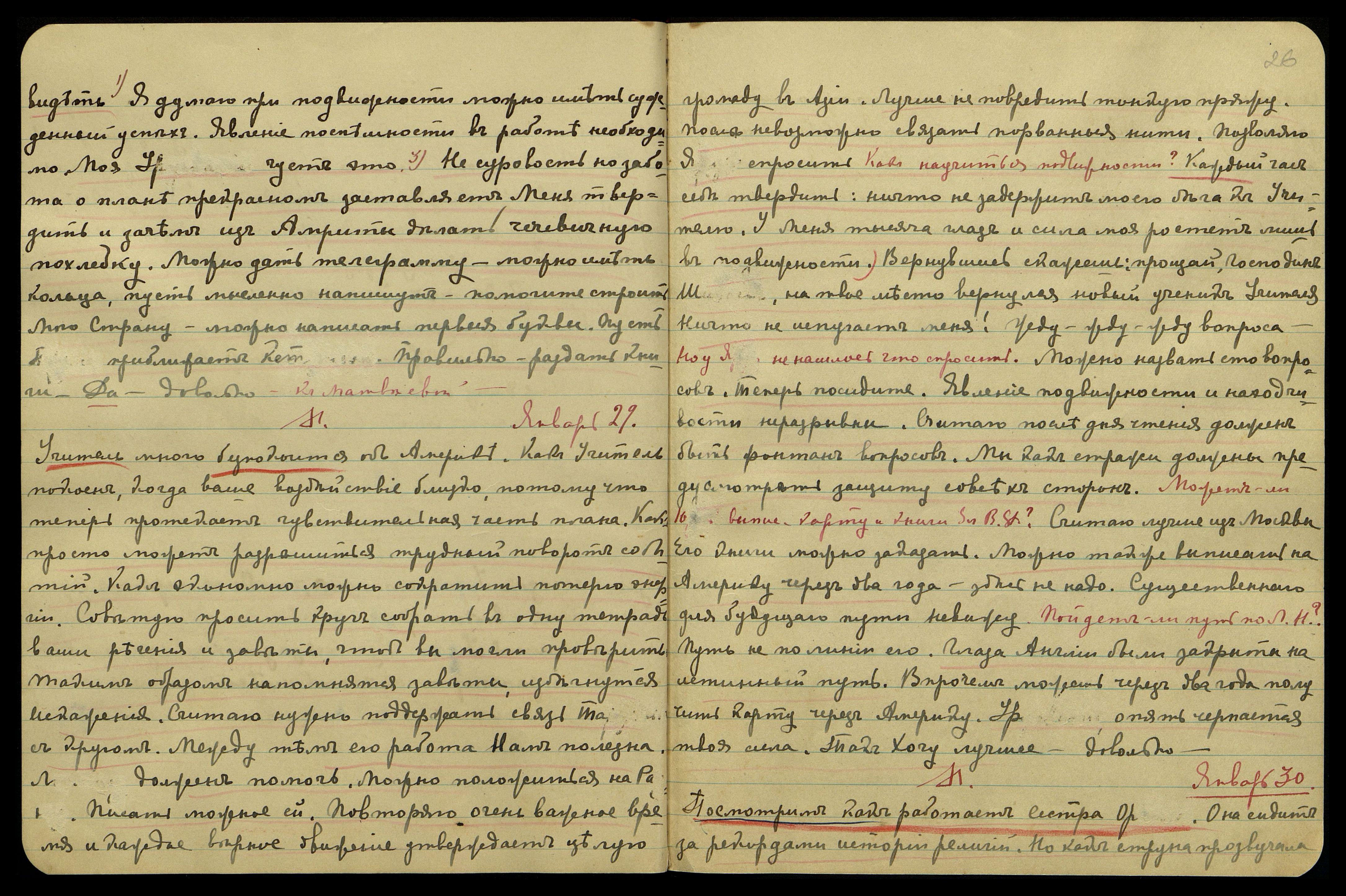 Лучшая доля России предназначена. Свидетельствую о небывалом успехе [на] А[лтае]. Считаю, хорошо течение дел в Америке. Скажите Яр[уе] — пусть мыслит широко. События надвигаются и смешны попытки правительств. Место дураков и идиотов означено. Также мелочность Франции. Лучше Л[юмоу] химика молодого найти. Конечно Hil[le]