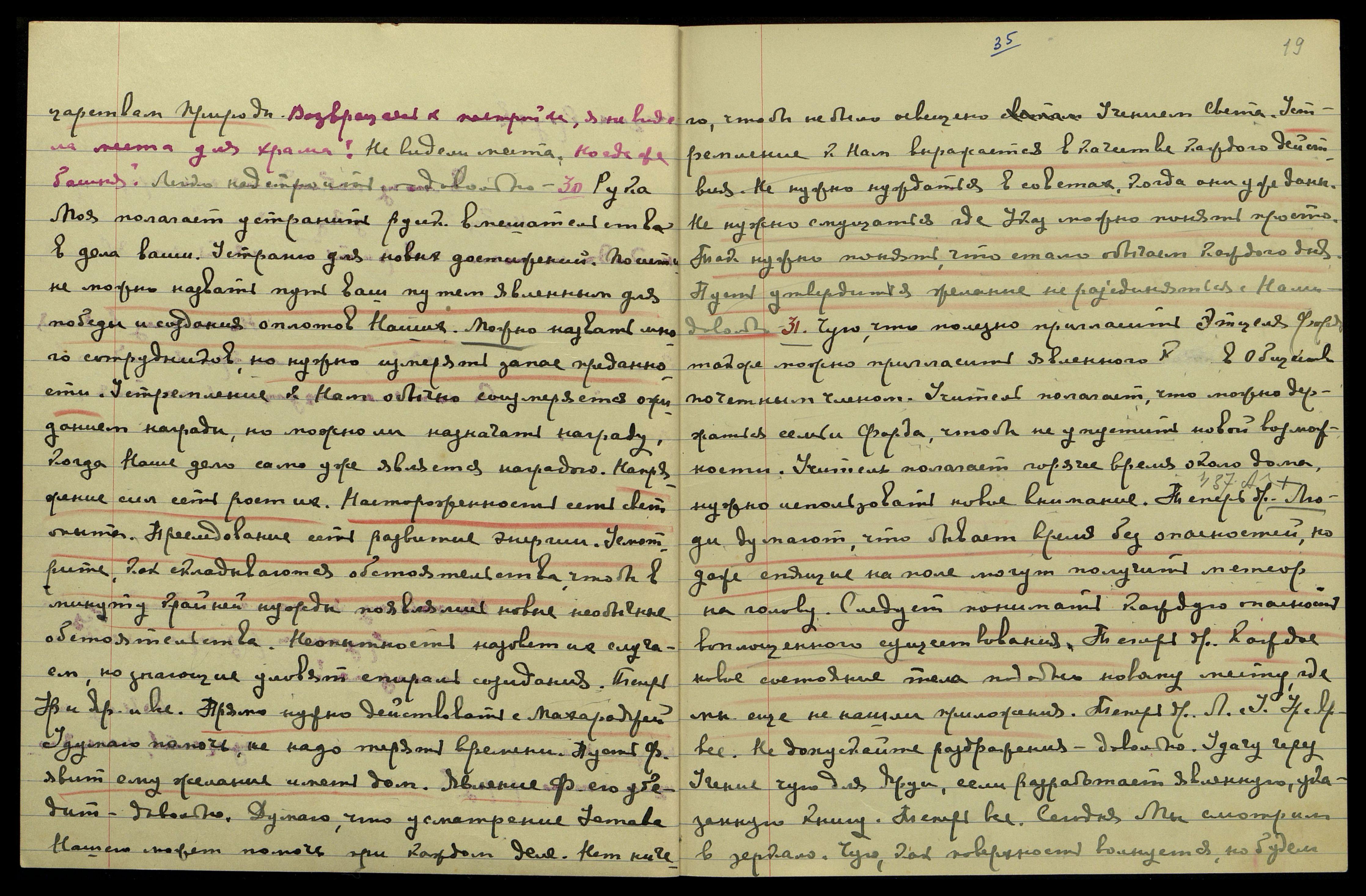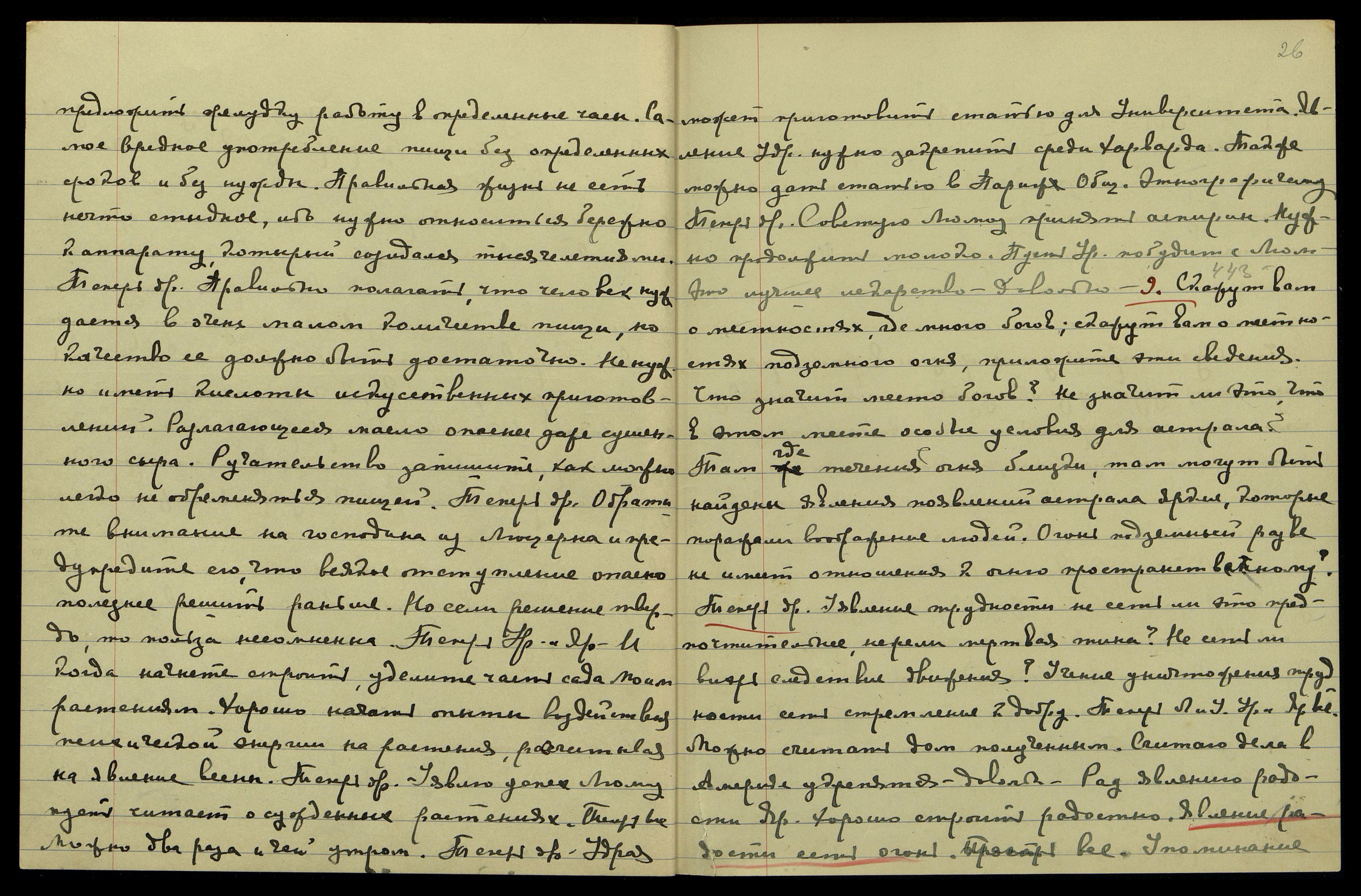 предложить желудку работу в определенные часы. Самое вредное − употребление пищи без определенных сроков и без нужды. Правильная жизнь не есть нечто стыдное, ибо нужно относиться бережно к аппарату, который созидался тысячелетиями. Теперь др[угое]. Правильно полагать, что человек нуждается в очень малом количестве пищи, но качество ее должно быть достаточно. Не нужно иметь кислоты искусственных приготовлений. Разлагающееся масло опаснее даже сушеного сыра. Ручательство запишите, как можно легко не обременяться пищей. Теперь др[угое]. Обратите внимание на господина из Люцерна и предупредите его, что всякое отступление опасно, полезнее решить раньше. Но если решение твердо, то польза несомненна. Теперь Урусвати и Яр[уя]. И когда начнете строить, уделите часть сада Моим растениям. Хорошо начать опыты воздействия психической энергии на растения, рассчитывая на явление весны. Теперь др[угое]. Уявлю успех Люмоу, пусть читает о суждённых растениях. Теперь все. Можно два раза и чай утром. Теперь др[угое]. Удрая может приготовить статью для университета. Явление Удр[аи] нужно закрепить среди Харварда*. Также можно дать статью в Париж Общ[еству] Этнографическому. Теперь др[угое]. Советую Люмоу принять аспирин. Нужно продолжить молоко. Пусть Урусвати побудет с Люмоу − это лучшее лекарство. Довольно.