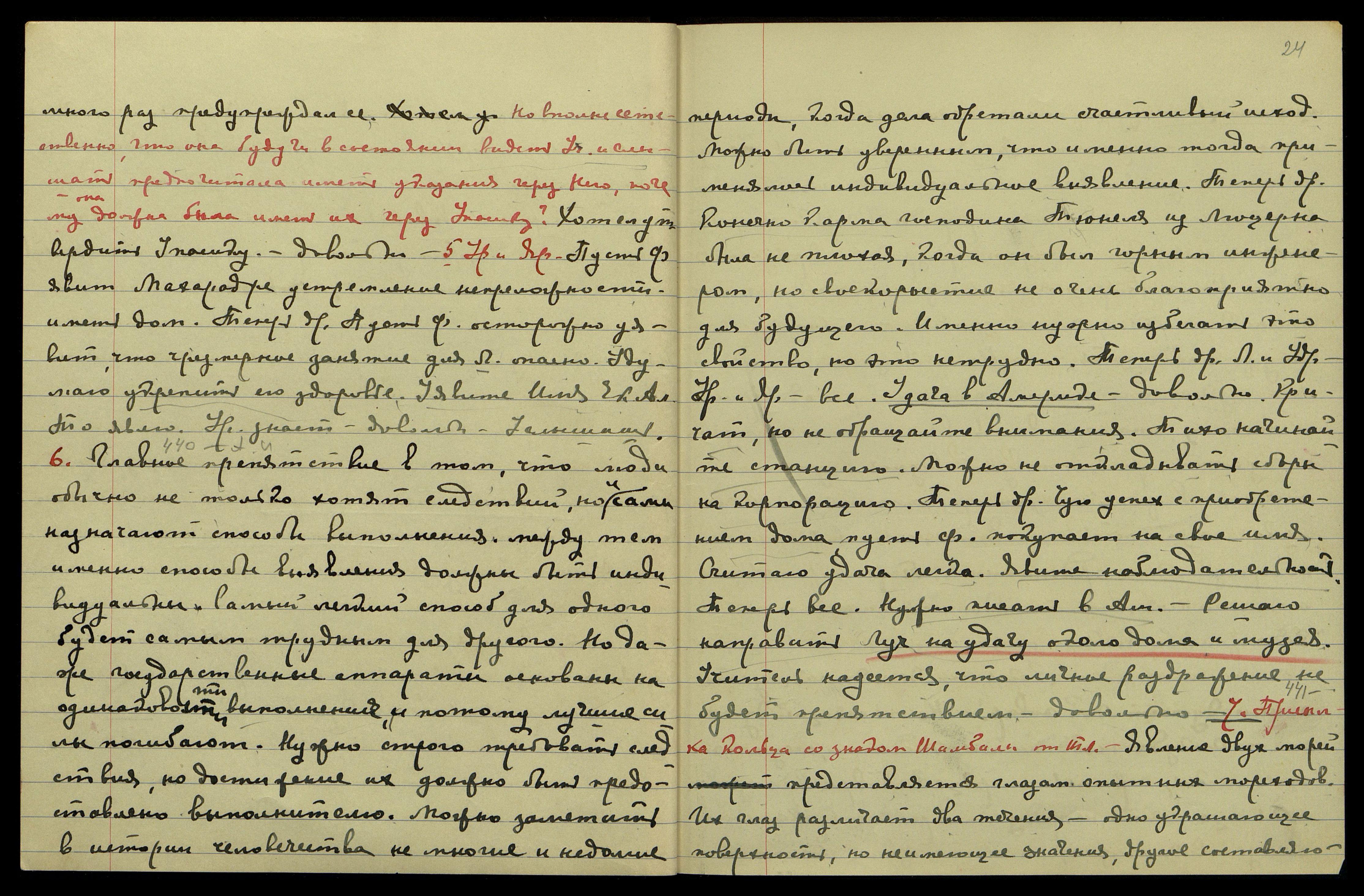 6 [января]. А[гни] Й[ога] § 440. Главное препятствие в том, что люди обычно не только хотят следствий, но и сами назначают способы выполнения. Между тем, именно способы выявления должны быть индивидуальны. Самый легкий способ для одного, будет самым трудным для другого. Но даже государственные аппараты основаны на одинаковости выполнения, и потому лучшие силы погибают. Нужно строго требовать следствия, но достижение их должно быть предоставлено выполнителю. Можно заметить в истории человечества немногие и недолгие периоды, когда дела обретали счастливый исход. Можно быть уверенным, что именно тогда применялись индивидуальные выявления. Теперь др[угое]. Конечно, карма господина Тюнеля из Люцерна была не плохая, когда он был горным инженером, но своекорыстие не очень благоприятно для будущего. Именно нужно избегать это свойство, но это не трудно. Теперь др[угое]. Л[юмоу] и Удр[ая], Урусвати и Яр[уя], все. Удача в Америке. Довольно. Кричат, но не обращайте внимания. Тихо начинайте станцию. Можно не откладывать сборы на корпорацию. Теперь др[угое]. Чую успех с приобретением дома, пусть Ф[уяма] покупает на свое имя. Считаю, удача легка. Явите наблюдательность. Теперь все. Нужно писать в Ам[ерику]. Решаю направить Луч на удачу около дома и музея. Учитель надеется, что личное раздражение не будет препятствием. Довольно.