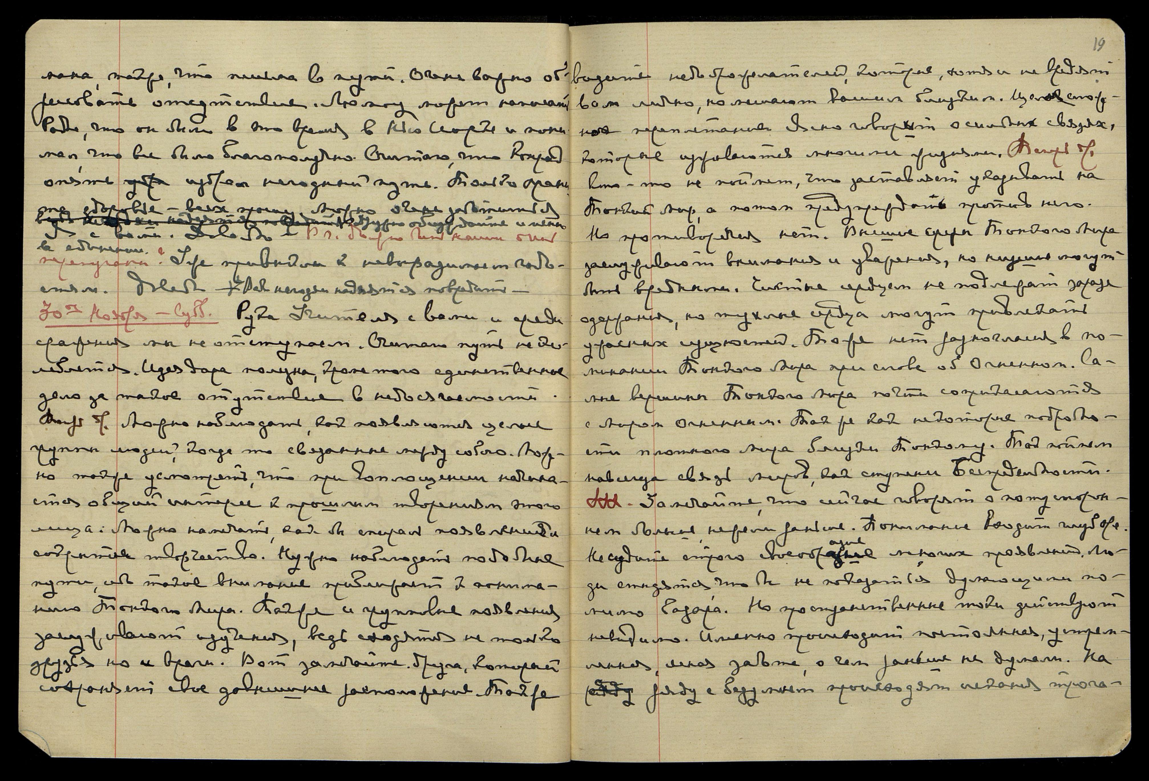 Теперь др[угое]. Живая Этика есть мост ко всем Мирам. Только в живом приложении создаётся прохождение неуязвленное. Ничто не поразит доспех огненный. Можно не тревожиться зарослями метафизики, когда дух знает путь живой мысли. Только мера добра явит Огонь светлый. С таким светильником можно вступить ясно на великий мост. Только для пути дальнего даётся Живая Этика. Нужно любить её, как путевое пособие.