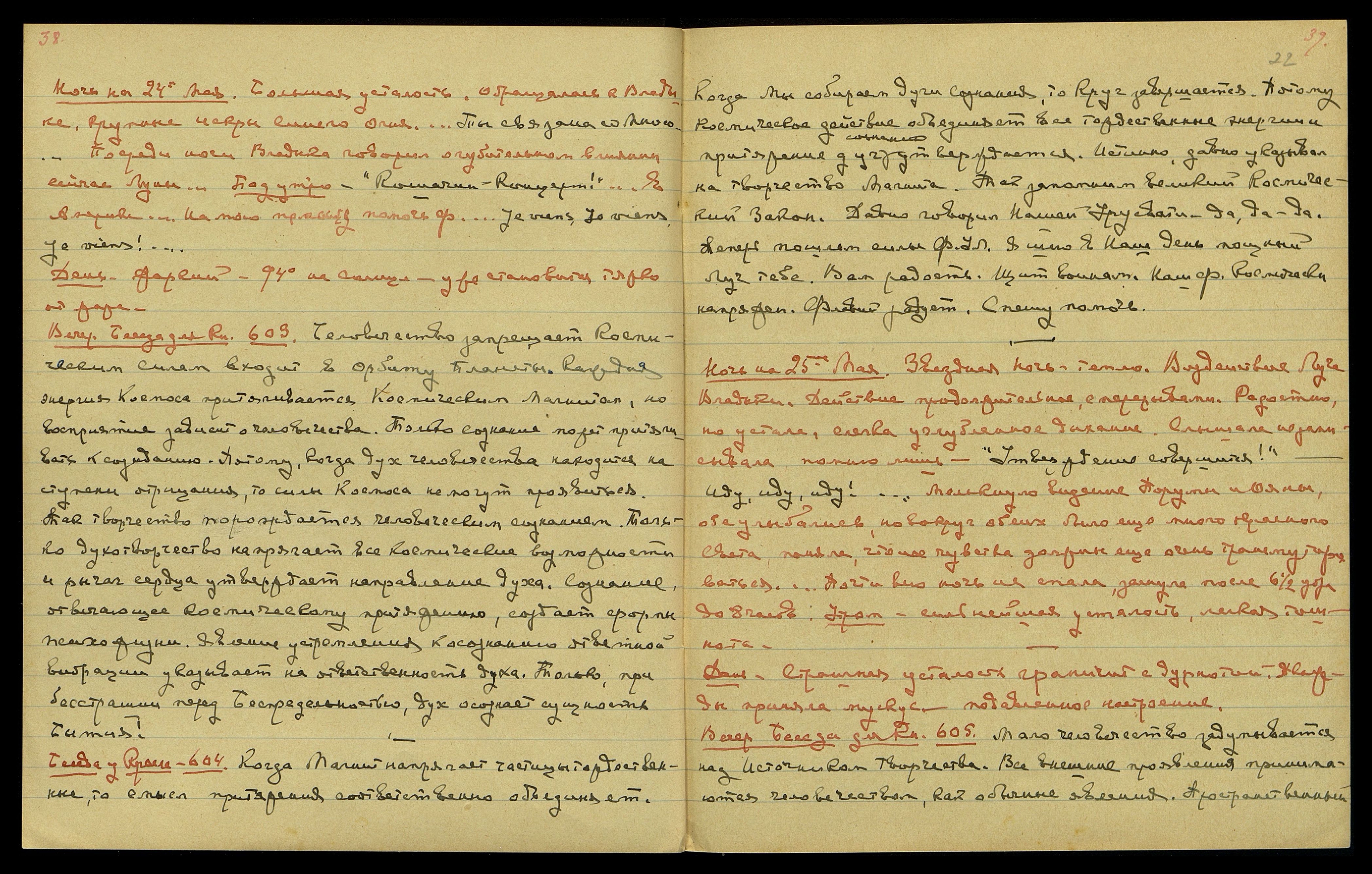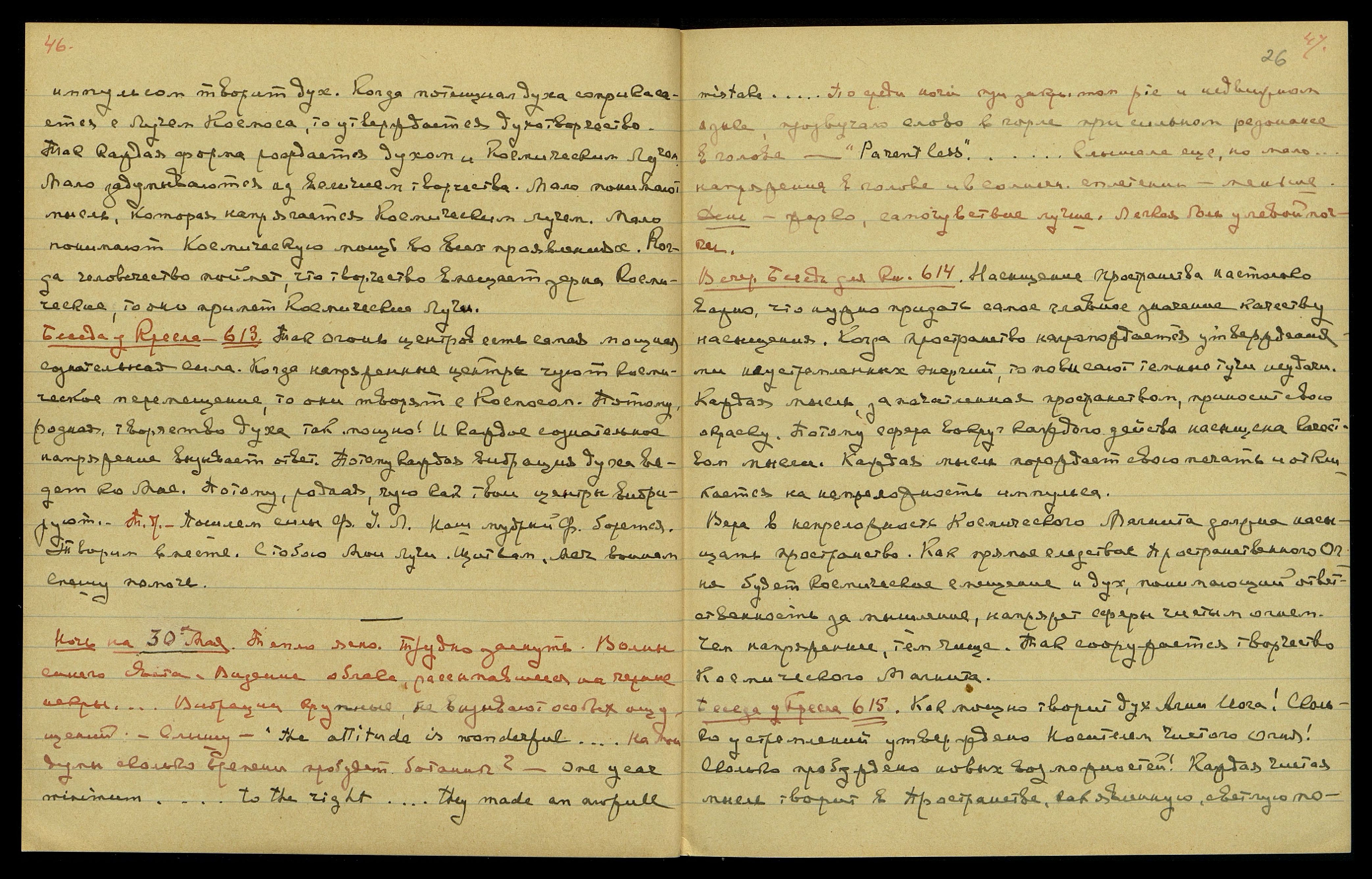 Вечер. Беседа для кн[иги "Беспредельность"] § 597. Космическая вибрация устремляет человечество к пространственному огню. Когда мысль