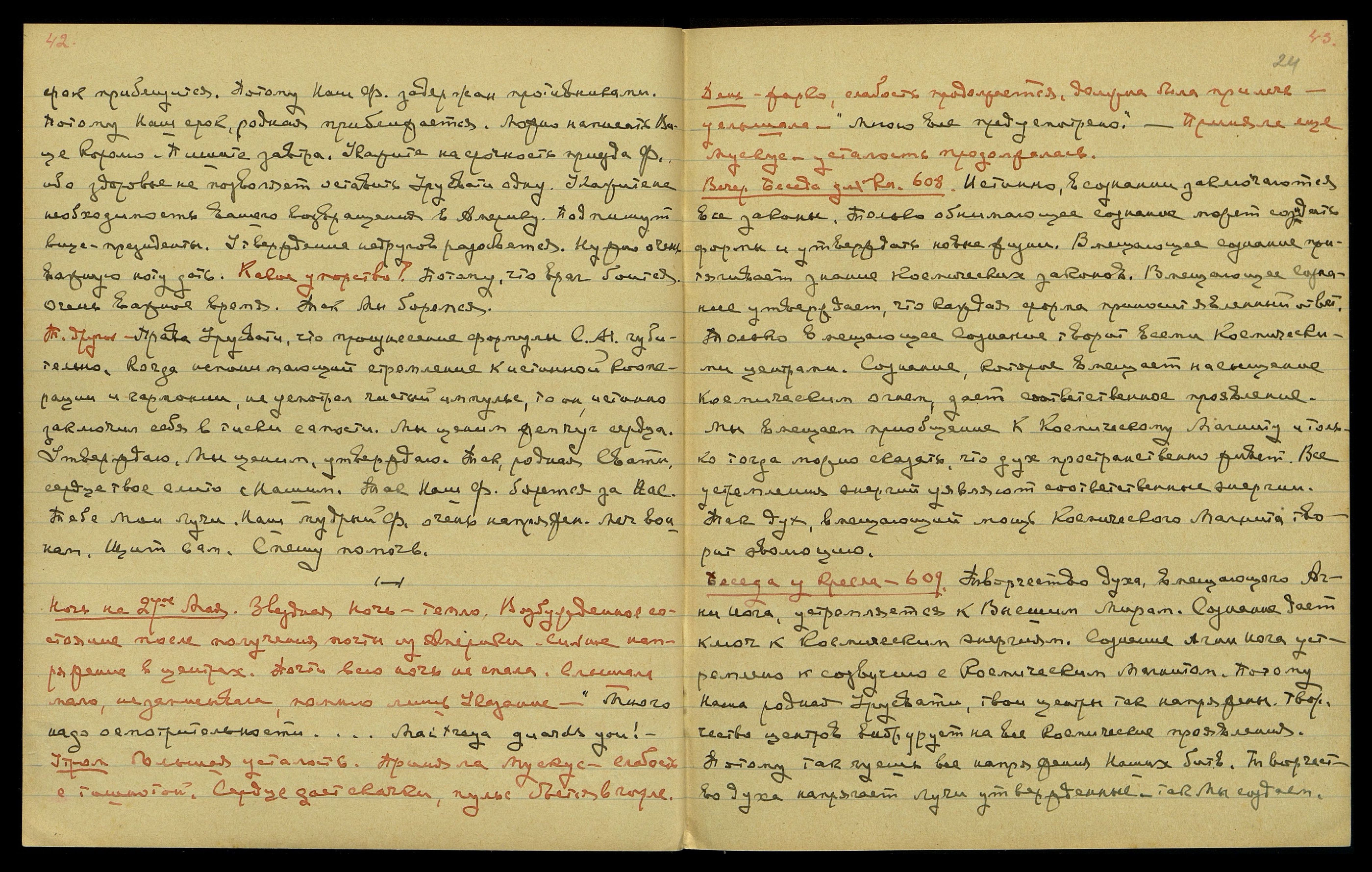 Теперь др[угое]. Права Урусвати, что произнесение формулы С[офьей] М[ихайловной] губительно. Когда непонимающий стремление к истинной кооперации и гармонии не усмотрел чистый импульс, то он, истинно, заключил себя в тиски самости. Мы ценим жемчуг сердца. Утверждаю, Мы ценим, утверждаю. Так Наш Ф[уяма] борется за Нас. Тебе Мои лучи. Наш мудрый Ф[уяма] очень напряжён. Меч воинам. Щит вам. Спешу помочь.