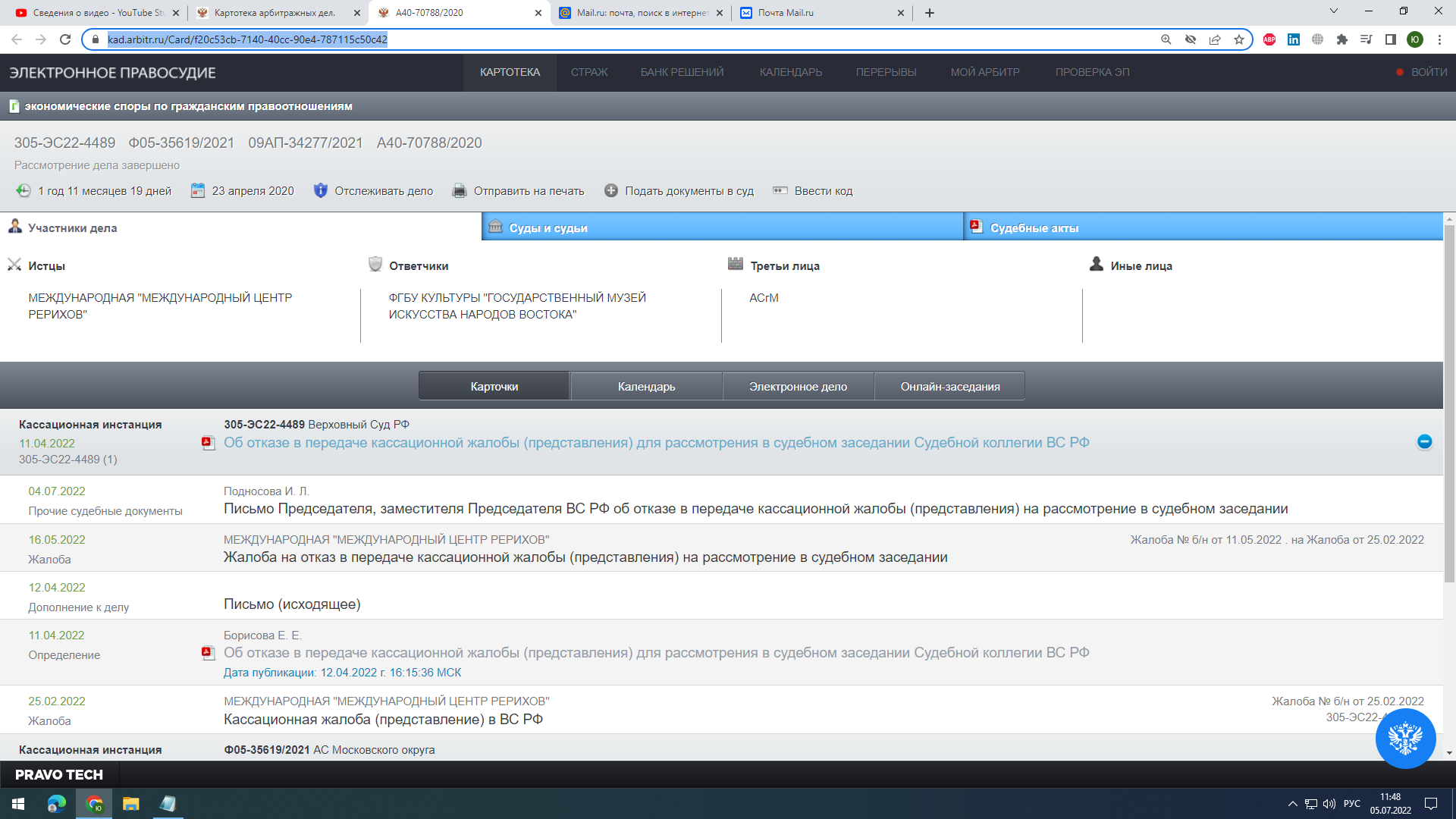 25.02.2022 - МЦР подал кассационную жалобу в ВС РФ;