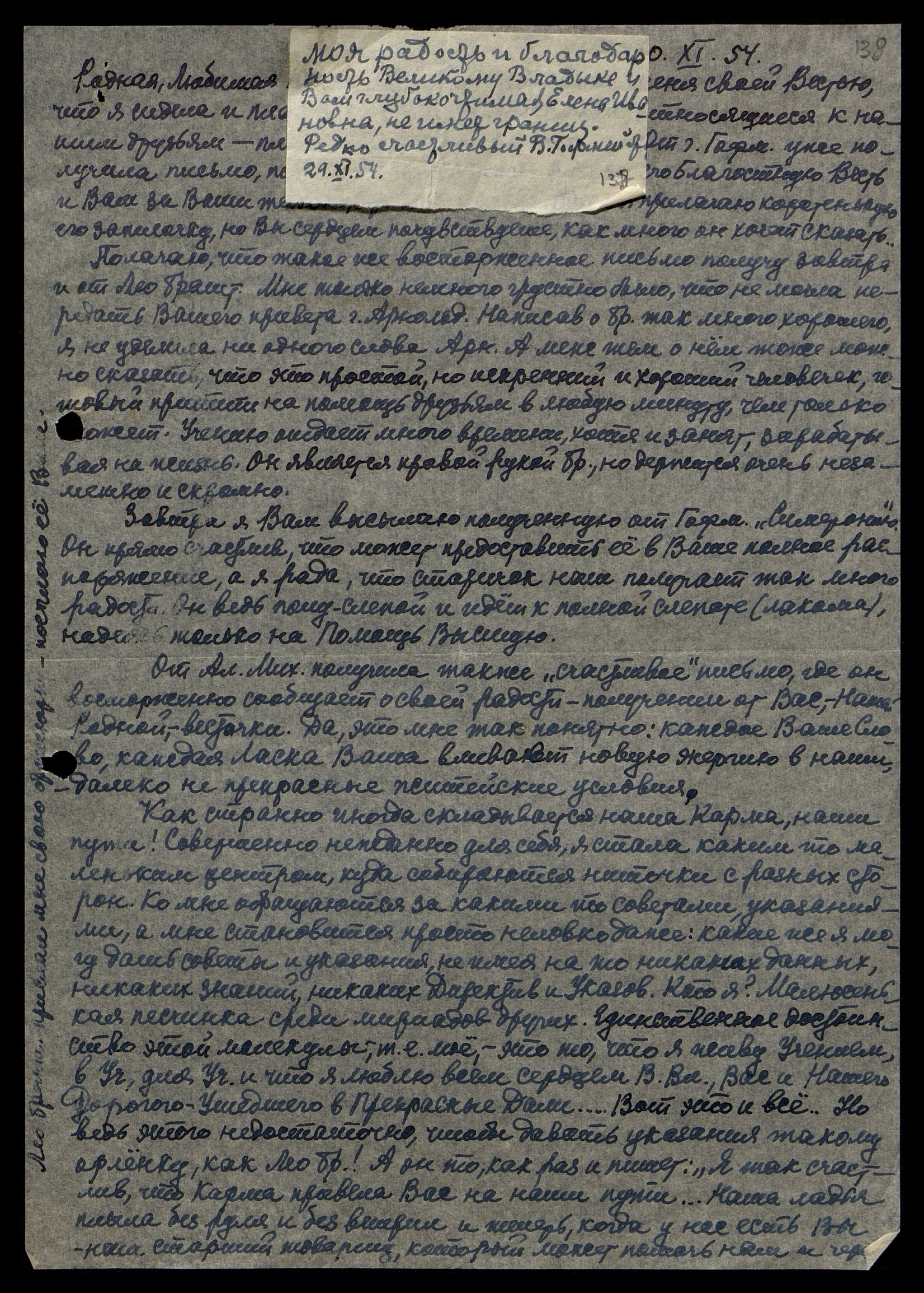 Родная, Любимая, Дорогая, Господи! Как полно моё сердце благодарности за всю и ласку, и заботу проявленную Вами и В[еликим] Вл[адыкой].