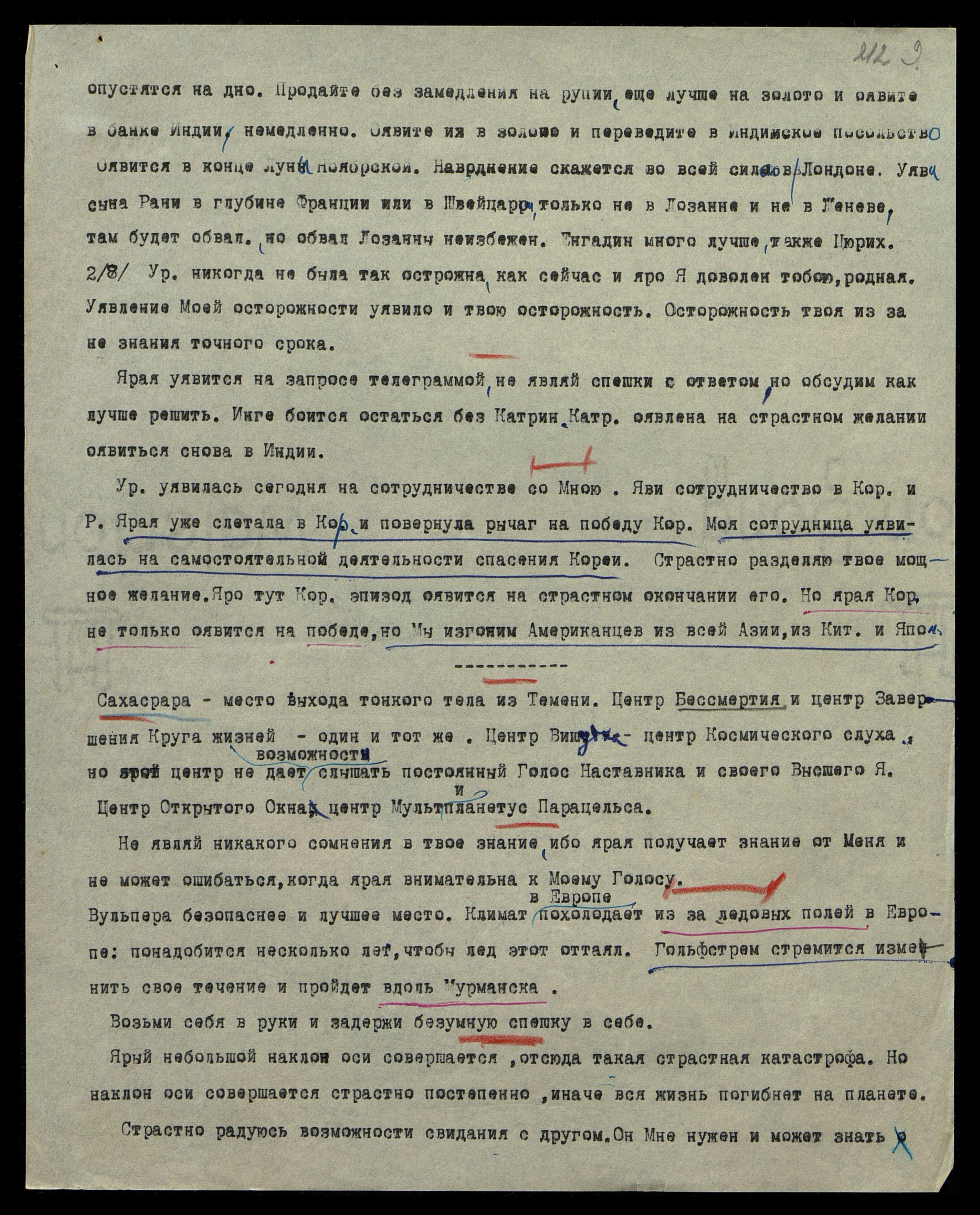 Урусвати уявилась сегодня на сотрудничестве со Мною. Яви сотрудничество в Кор[ее] и Рoссии. Ярая уже слетала в Кор[ею] и повернула рычаг на победу Кор[еи]. Моя сотрудница уявилась на самостоятельной деятельности спасения Кореи. Страстно разделяю твое мощноe желание. Яро тут Кор[ейский] эпизод оявится на страстном окончании его. Но ярая Кор[ея] не только оявится на победе, но Мы изгоним Американцев из всей Азии, из Кит[ая] и Япо[нии].