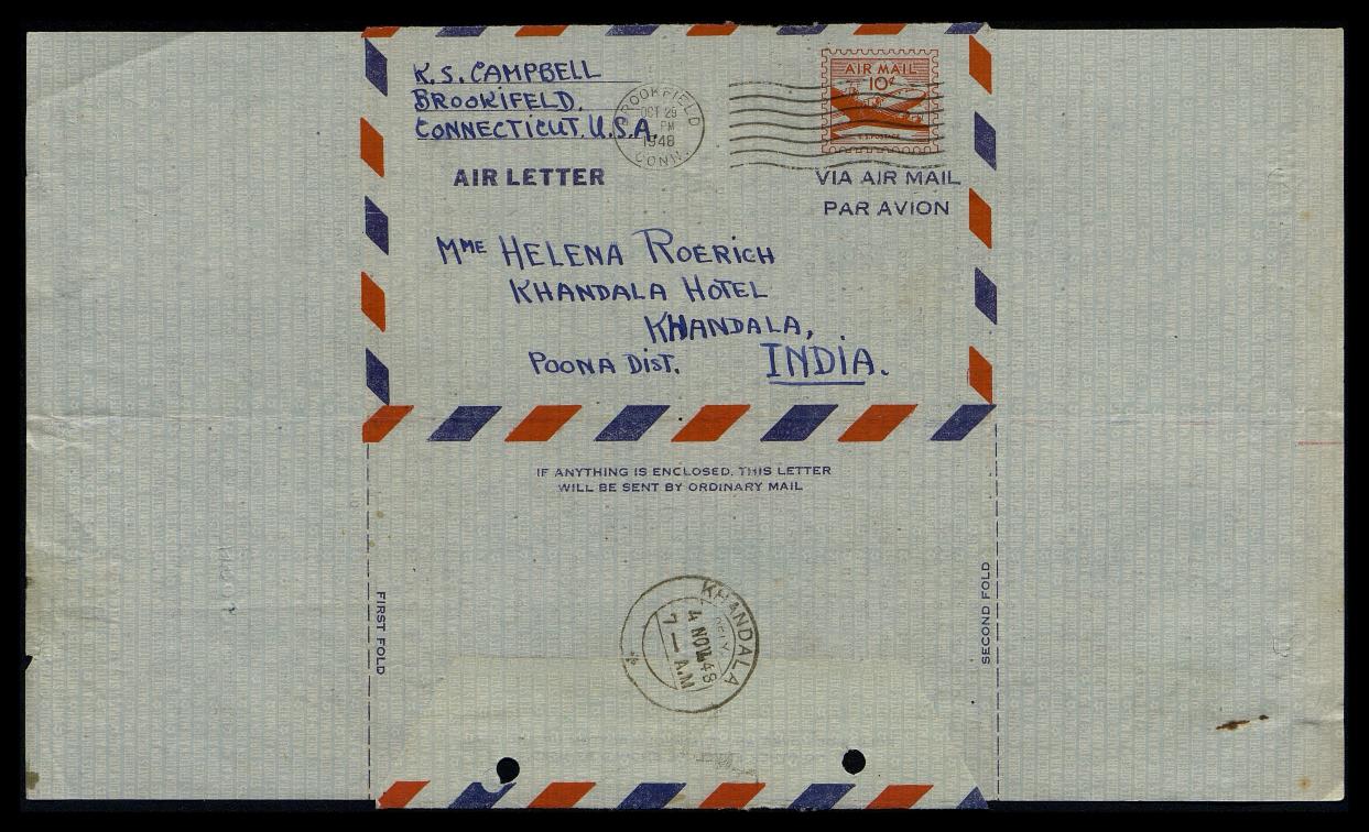 Кому: Мадам Елене Рерих, отель "Кхандала", Кхандала, [Индия]