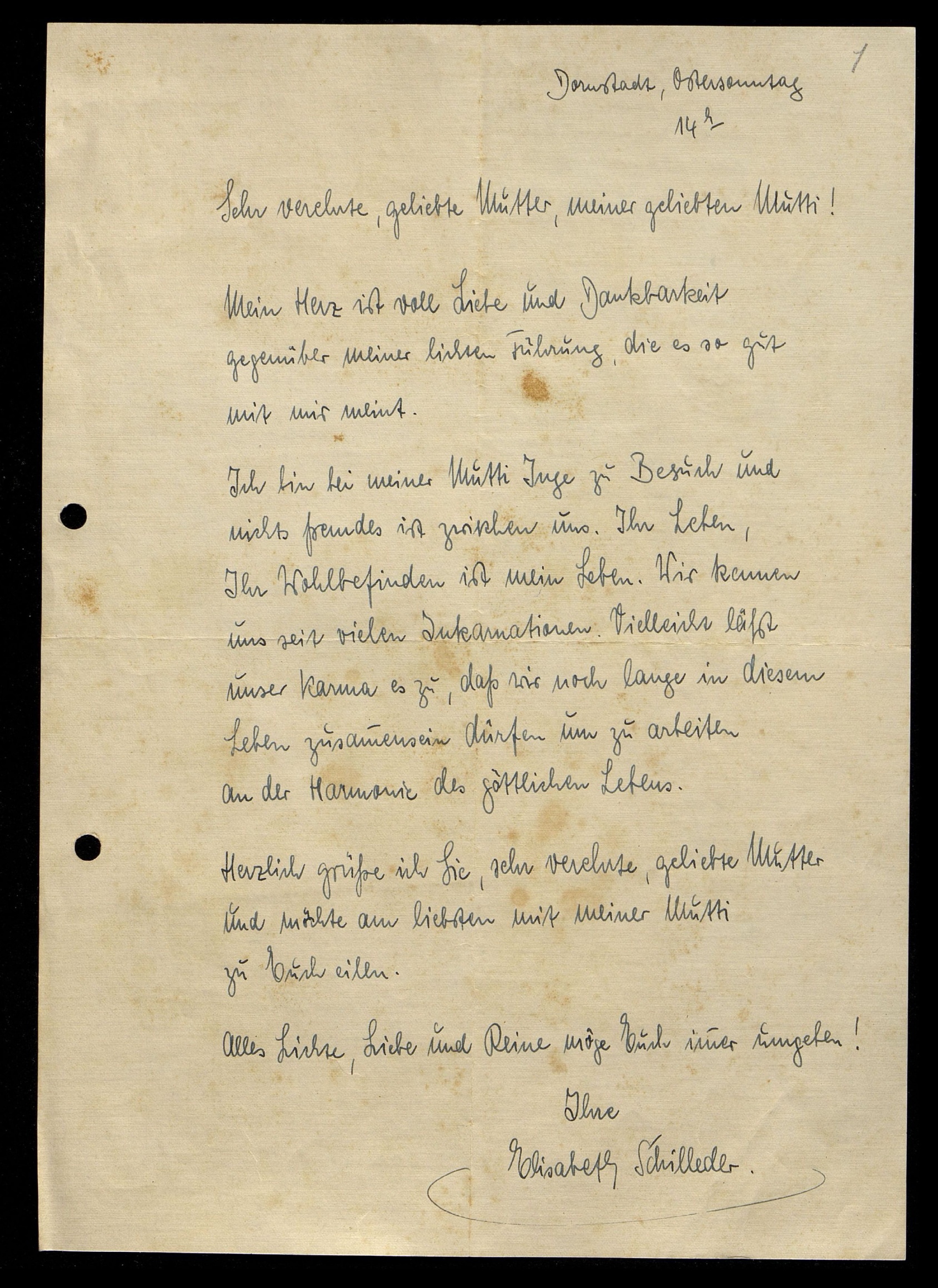 Herzlich grüße ich Sie, sehr verehrte, geliebte Mutter und möchte am liebsten mit meiner Mutti zu Euch eilen.