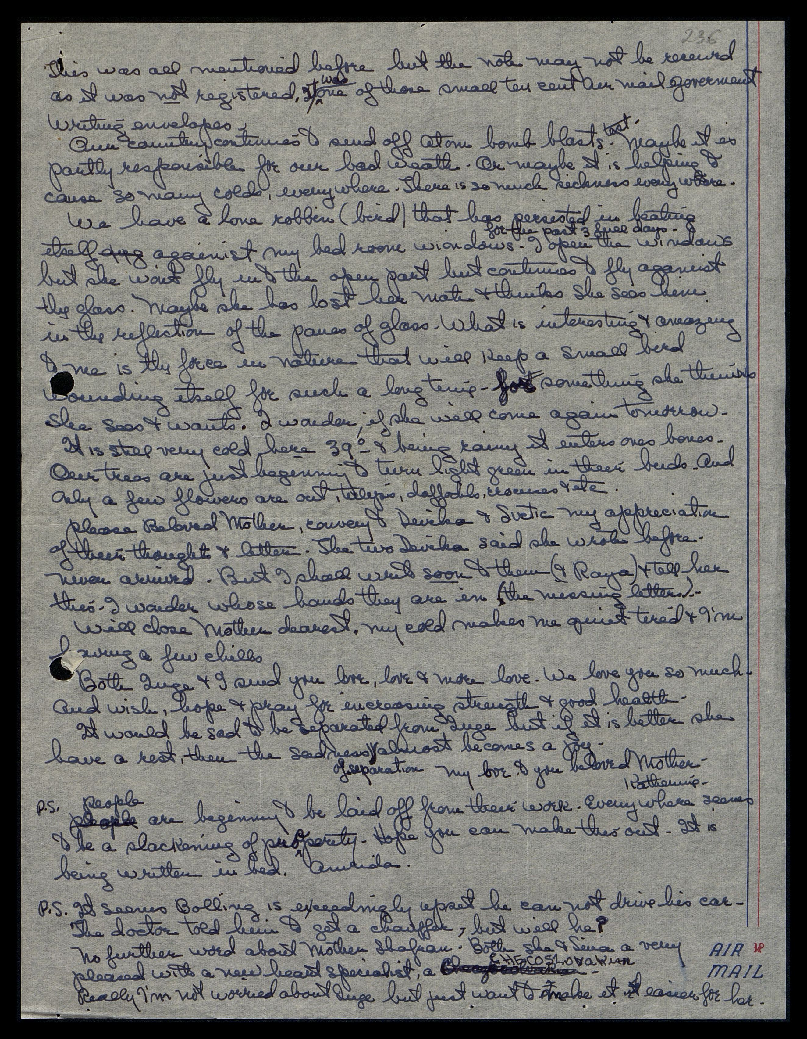 [англ.: Всё это я уже упоминала, но письмо могло не дойти, так как не было заказным. Оно было в одном из маленьких десятицентовых конвертов авиапочты правительства.