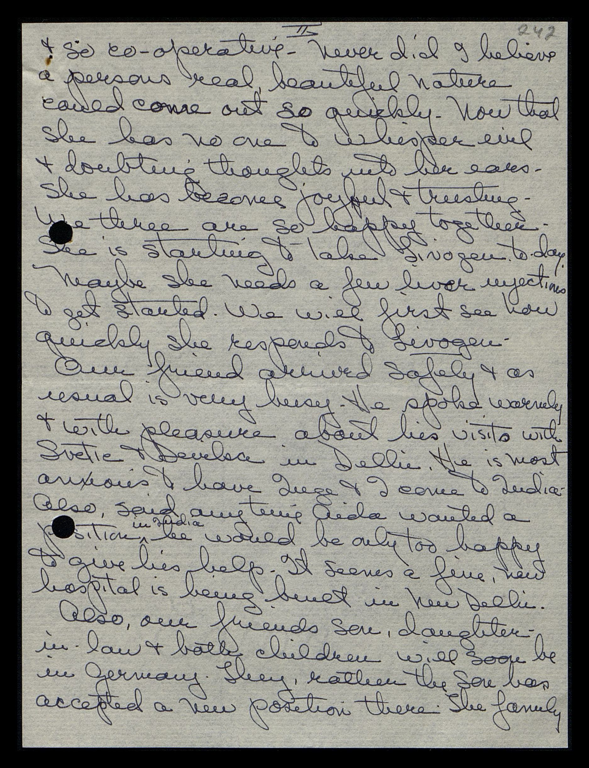 Также благодарим за совет по поводу Аиды. О, Мама, если бы вы могли увидеть и познакомиться с Аидой и Джорджем, как бы Вы их полюбили! Аида такая замечательная. Какой радостью было бы привезти её в Индию!