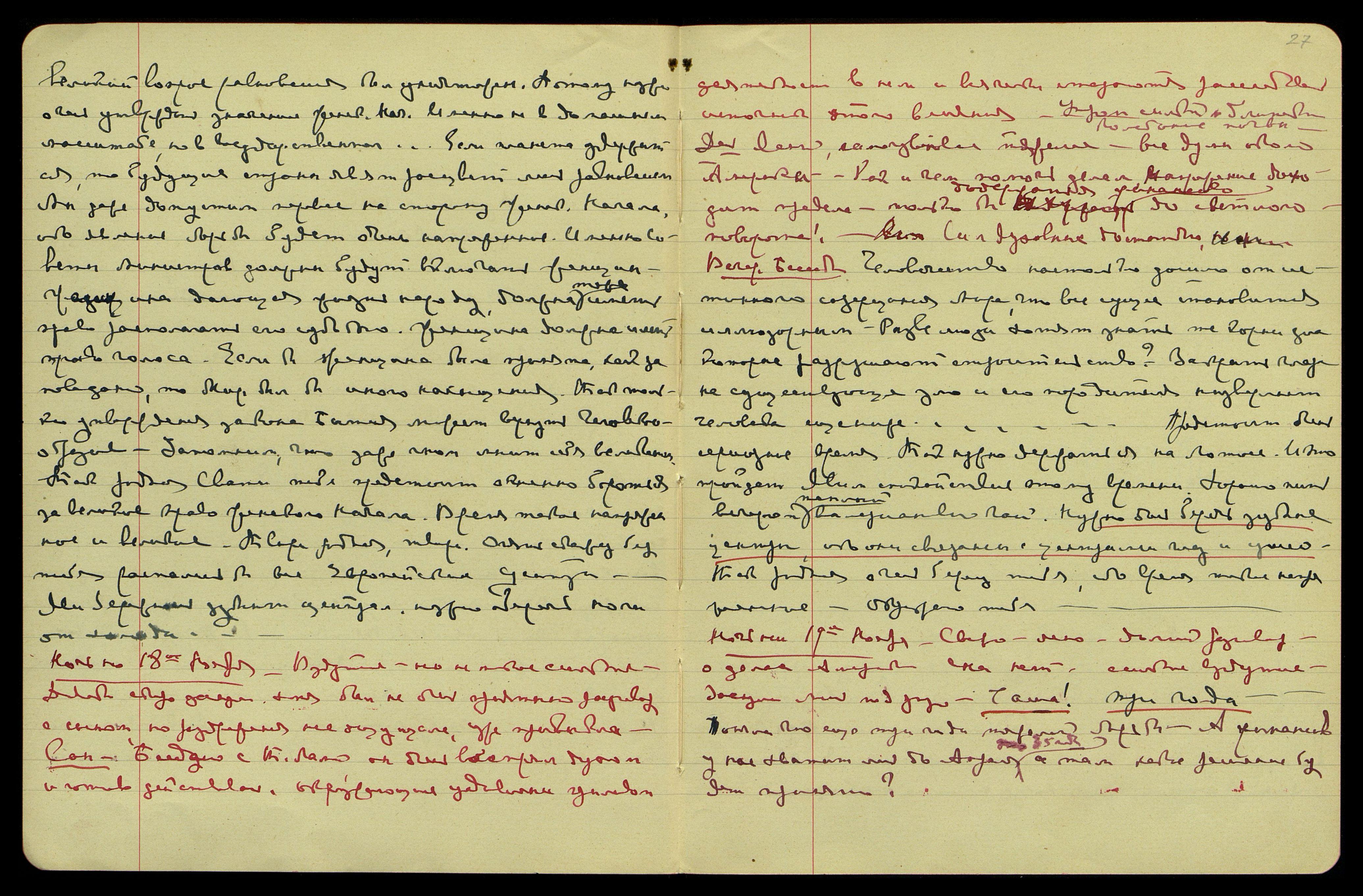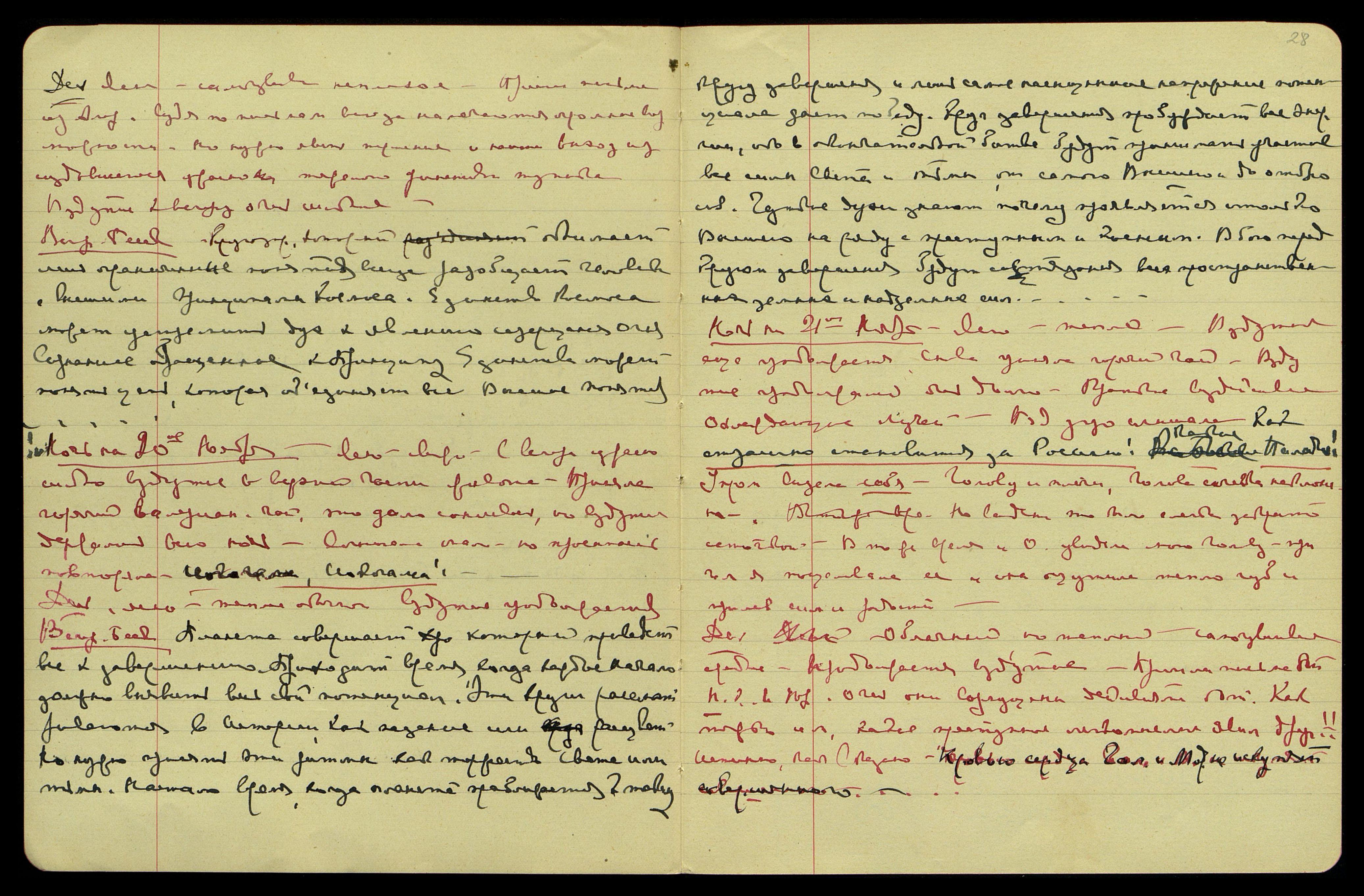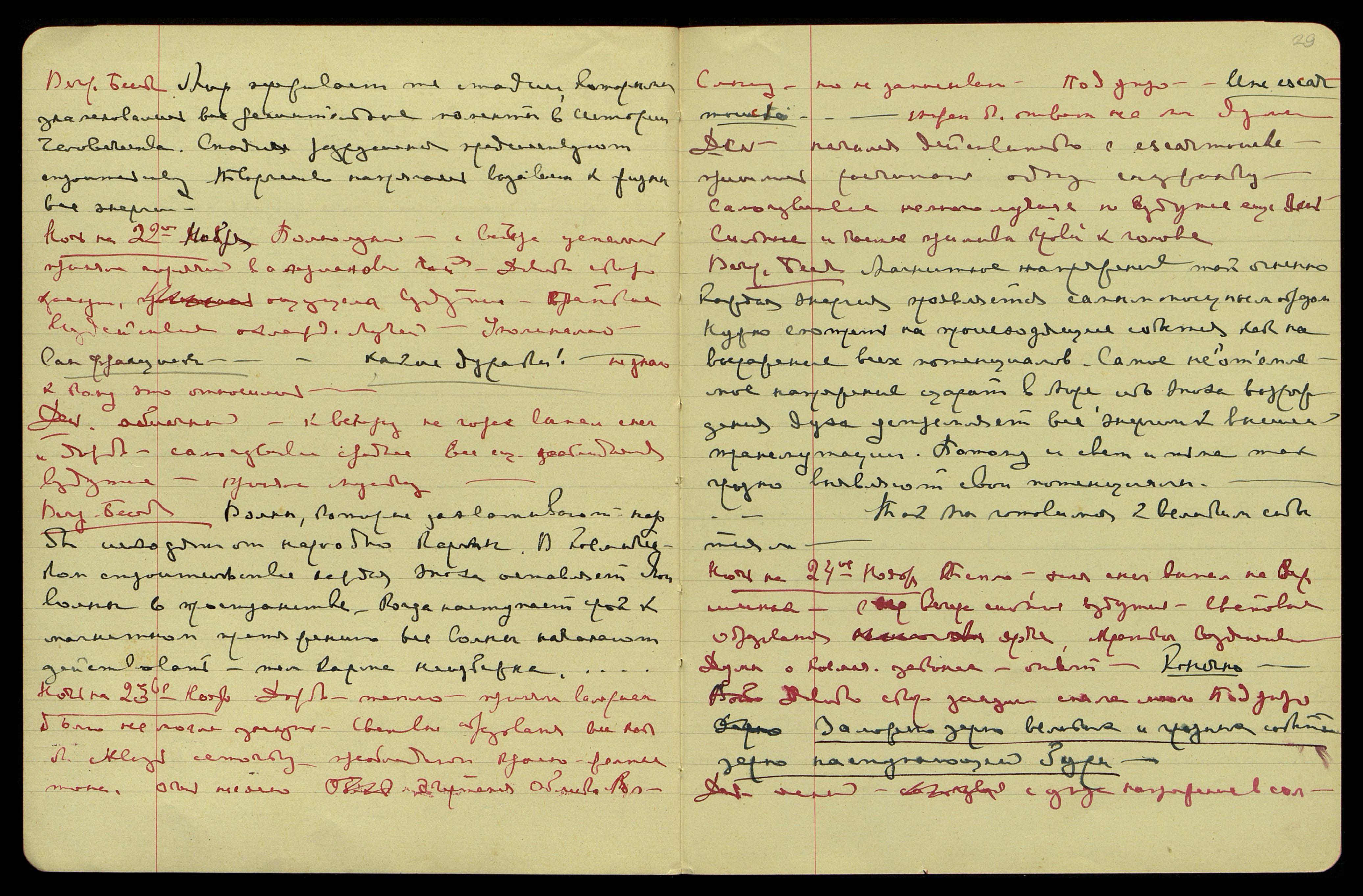 Ночь на 25-е ноября. Ясно, свежо. Сна нет. Атмосфера очень плотная. Слышу... Заснула в четвёртом часу. Под утро: New area will be stricken by famine [англ.: Новое место будет подвержено голоду]. Время лучшее для великих построений".
