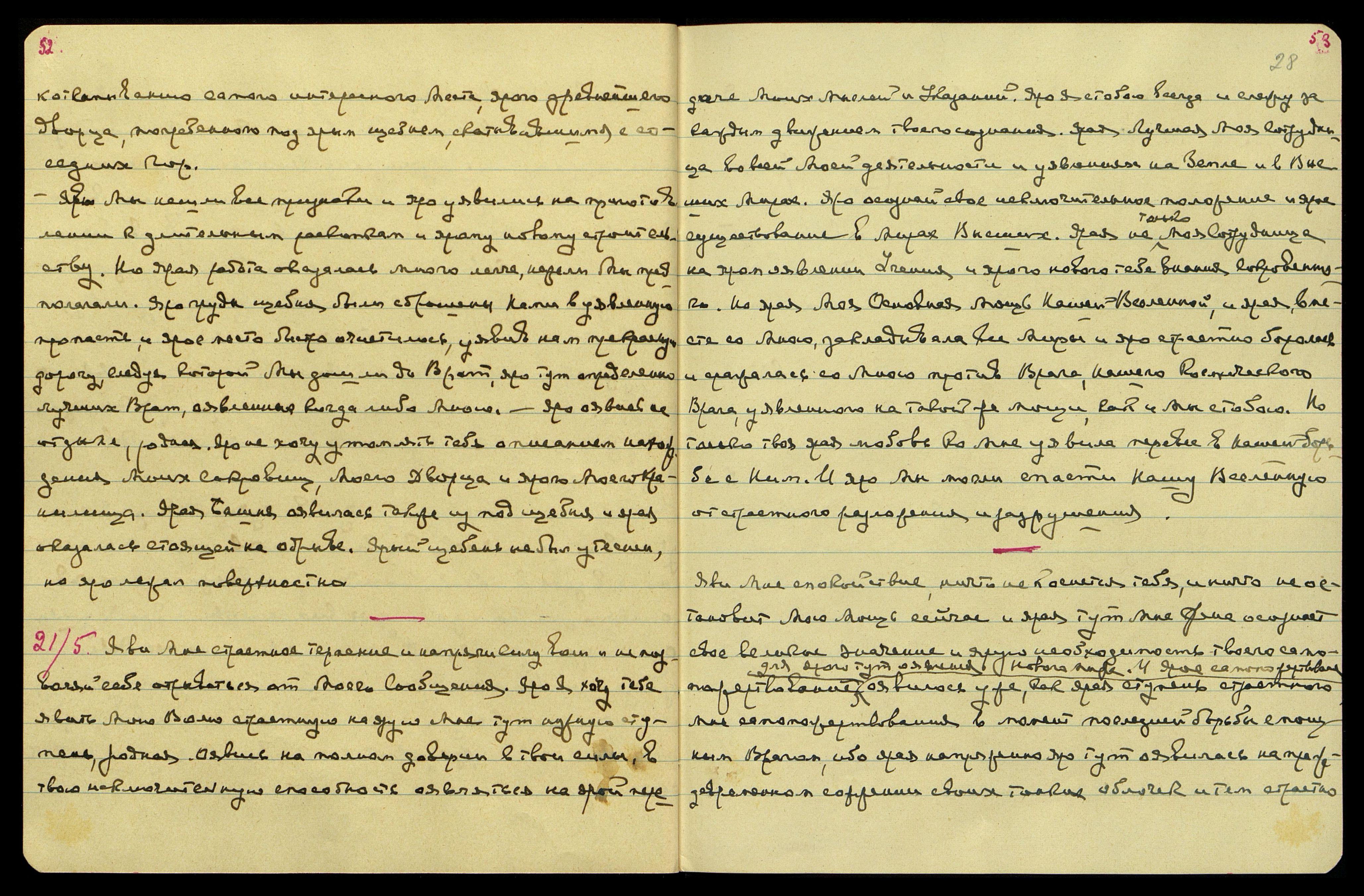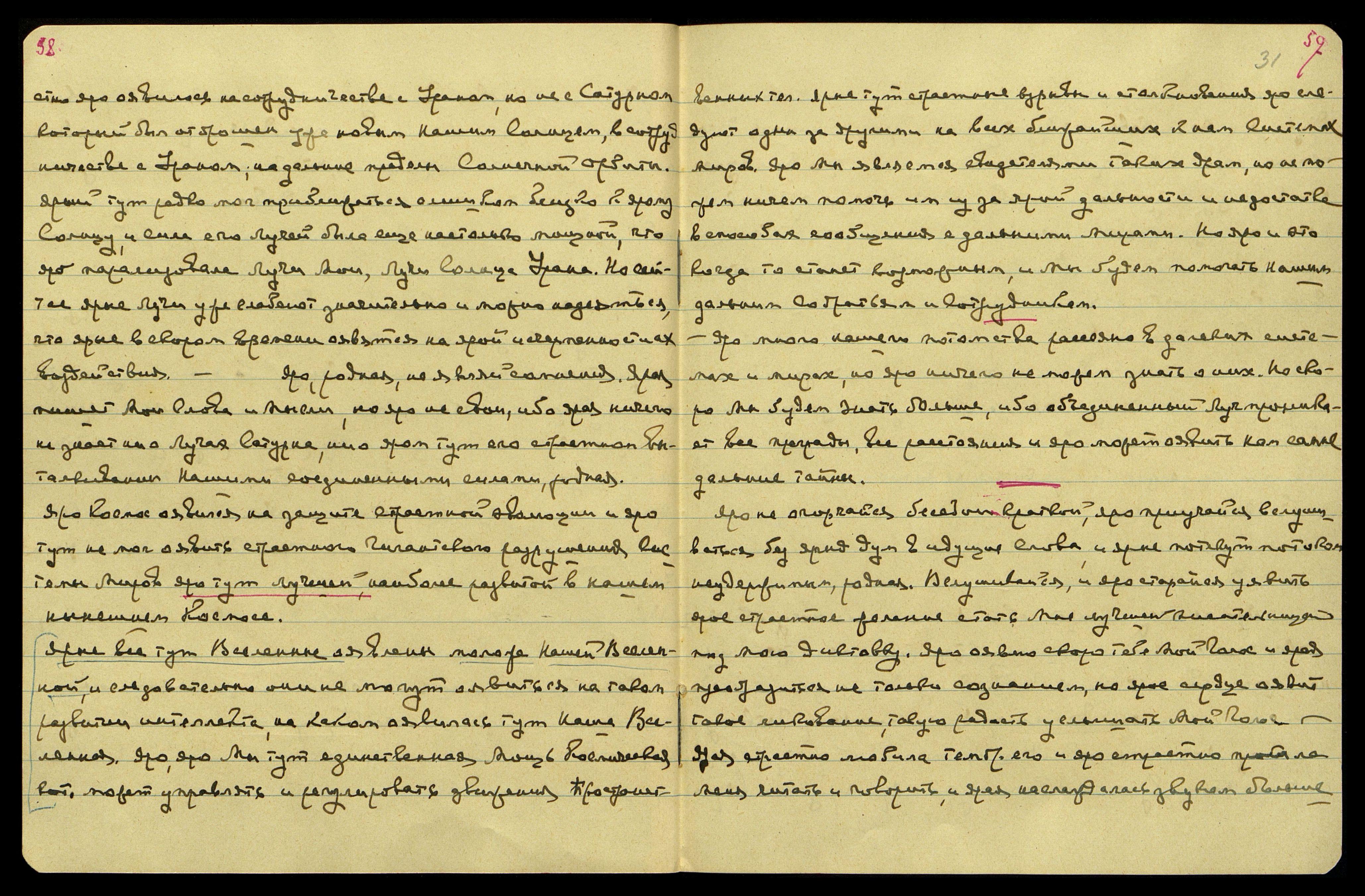 4/6. Не являй сомнения, родная, и яро пиши. Яро хочу уявить тебе картину нашей ярой связи с ярым Основным Светилом, родная. Но яро не тоскуй и не грусти. Но яро напиши завтра коротенькую записку и отошли послезавтра. Но не тоскуй и яро знай, что никто не помешает тебе закончить нужную Мне работу по приведению в порядок данного тебе обширного материала. Яро, когда выпишешь все из тетрадей, то яро можешь немного переждать собирать материал из ярых данных раньше в Наггаре и яро начать собирать все сказанное о центрах, затем приступи к списыванию огненного опыта и ярых ступеней Огненного Апофеоза в Космическом