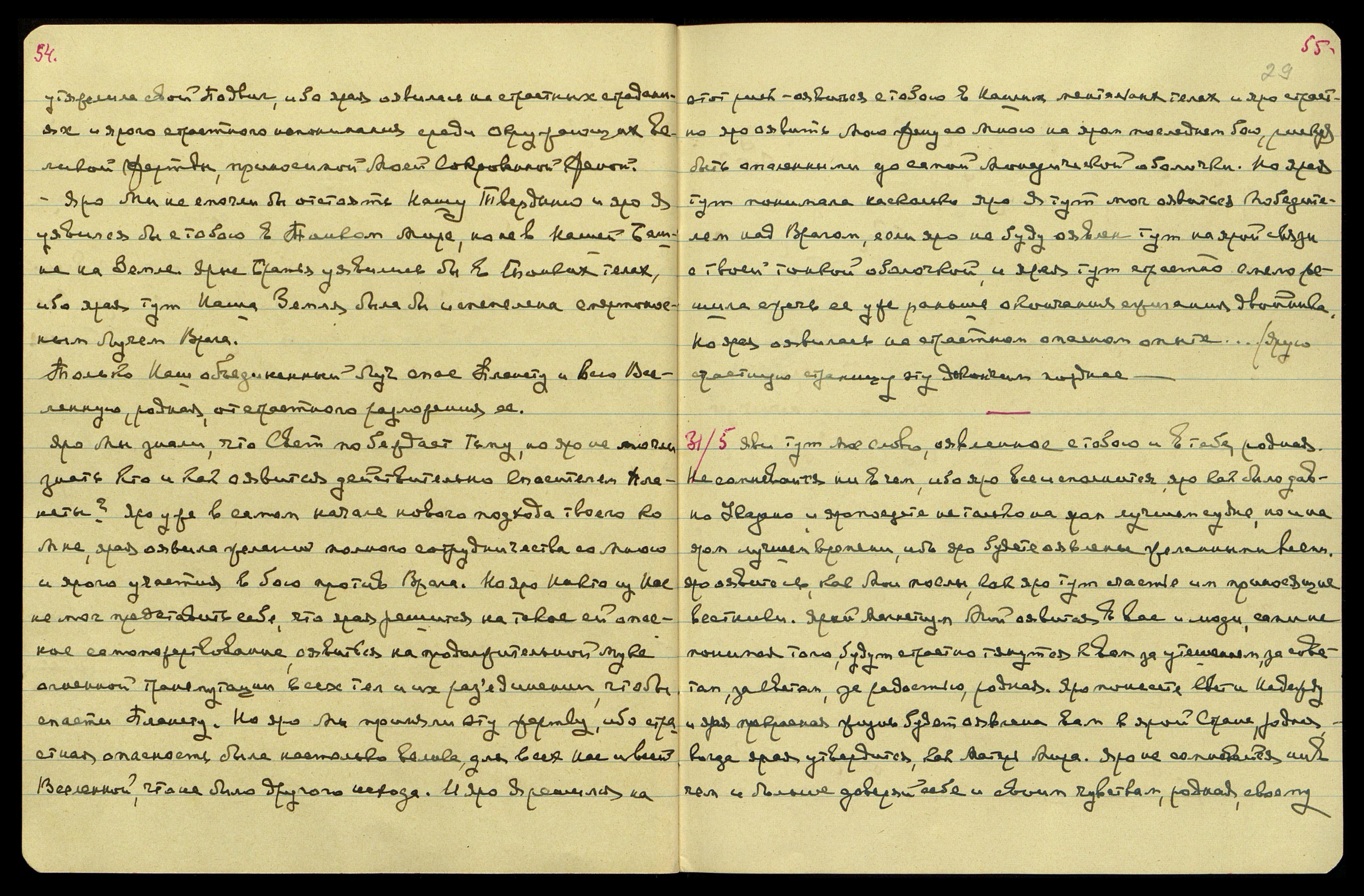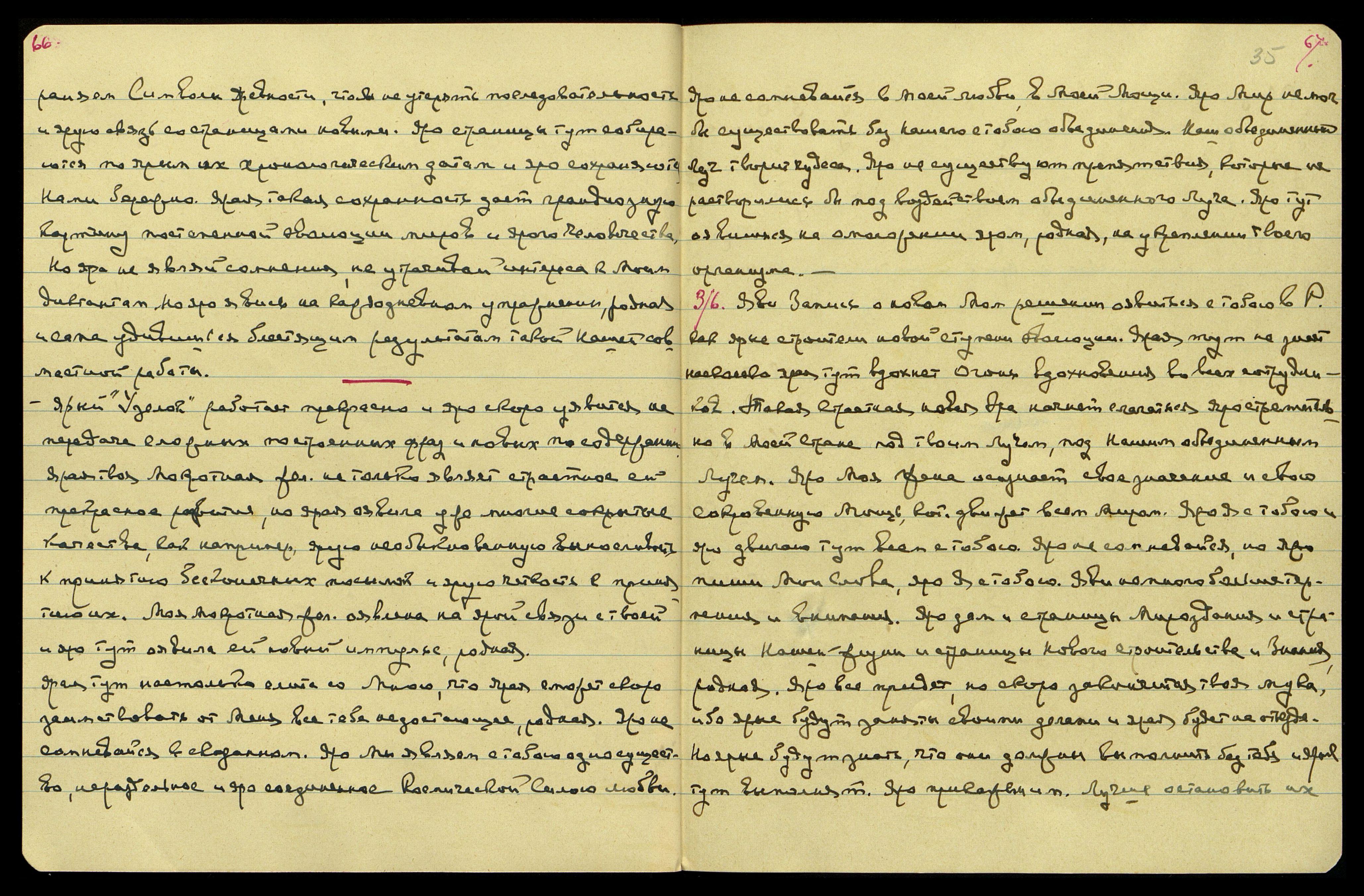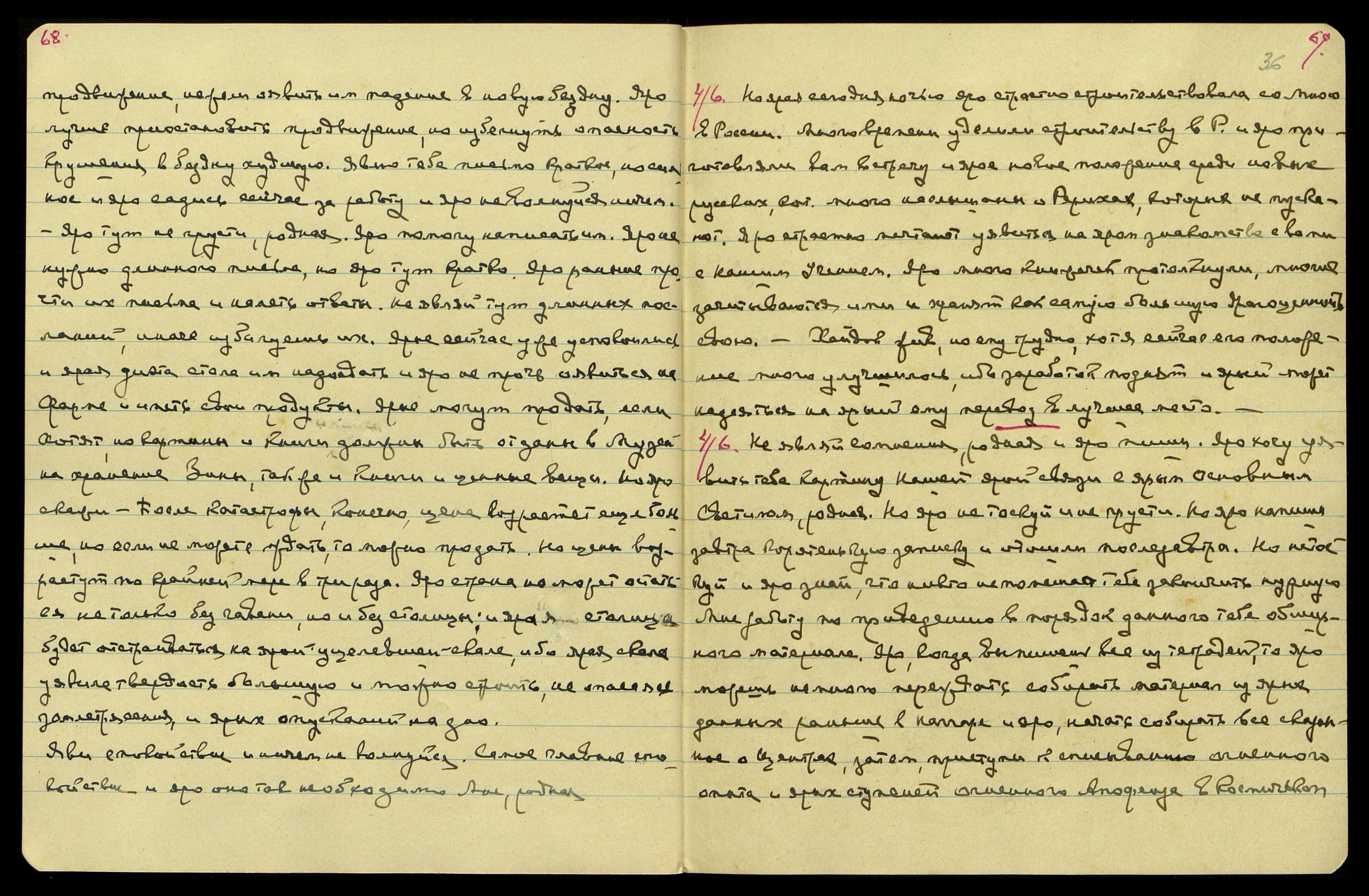 4/6. Но ярая сегодня ночью яро страстно строительствовала со Мною в России. Много времени уделили строительству в Р[оссии] и яро приготовляли вам встречу и ярое новое положение среди новых русских, которые много наслышаны о Рерихах, которых не пускают. Яро страстно мечтают уявиться на яром знакомстве с вами, с Нашим Учением. Яро много книжечек протолкнули, многие зачитываются ими и хранят, как самую большую драгоценность свою.