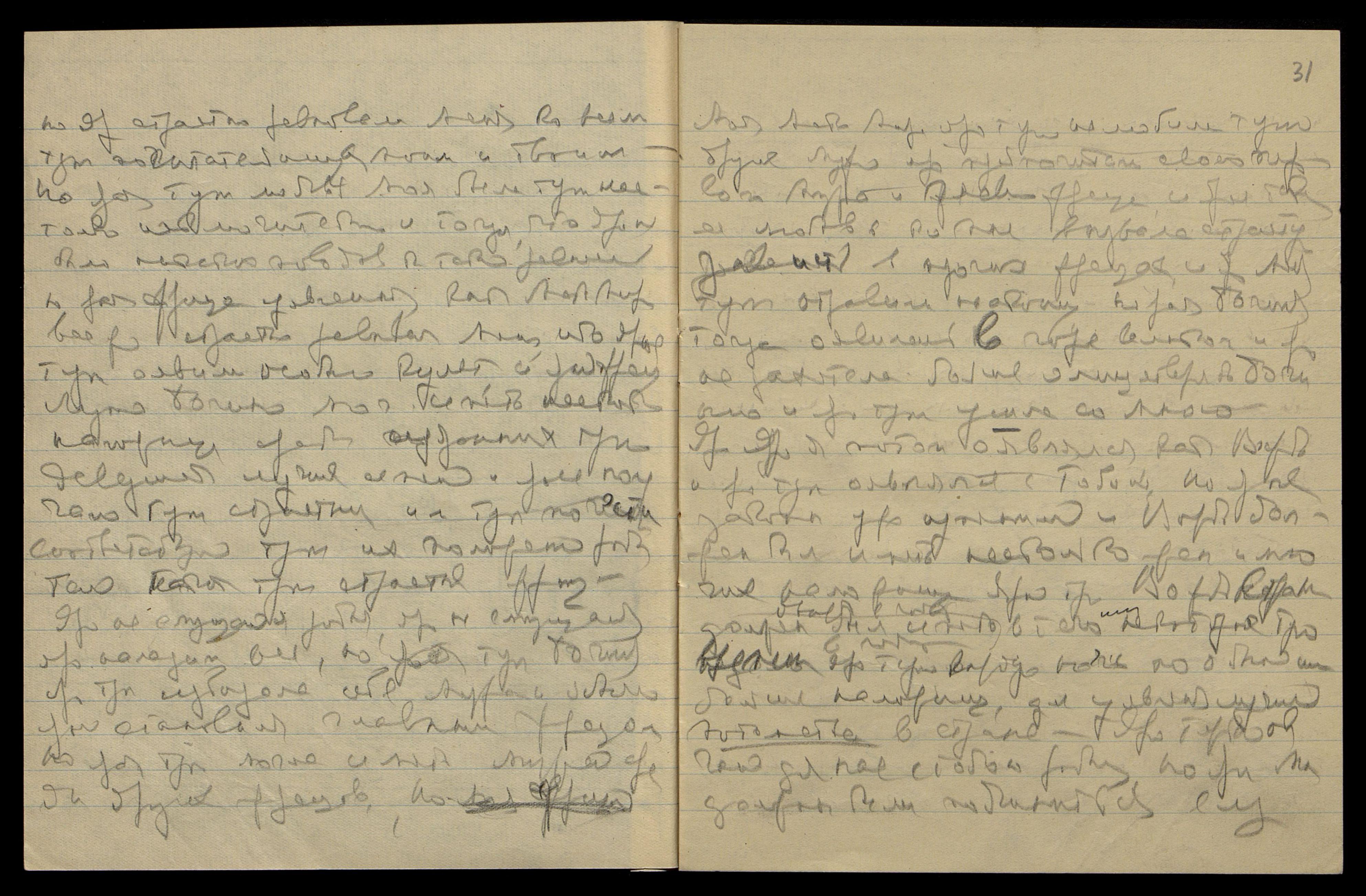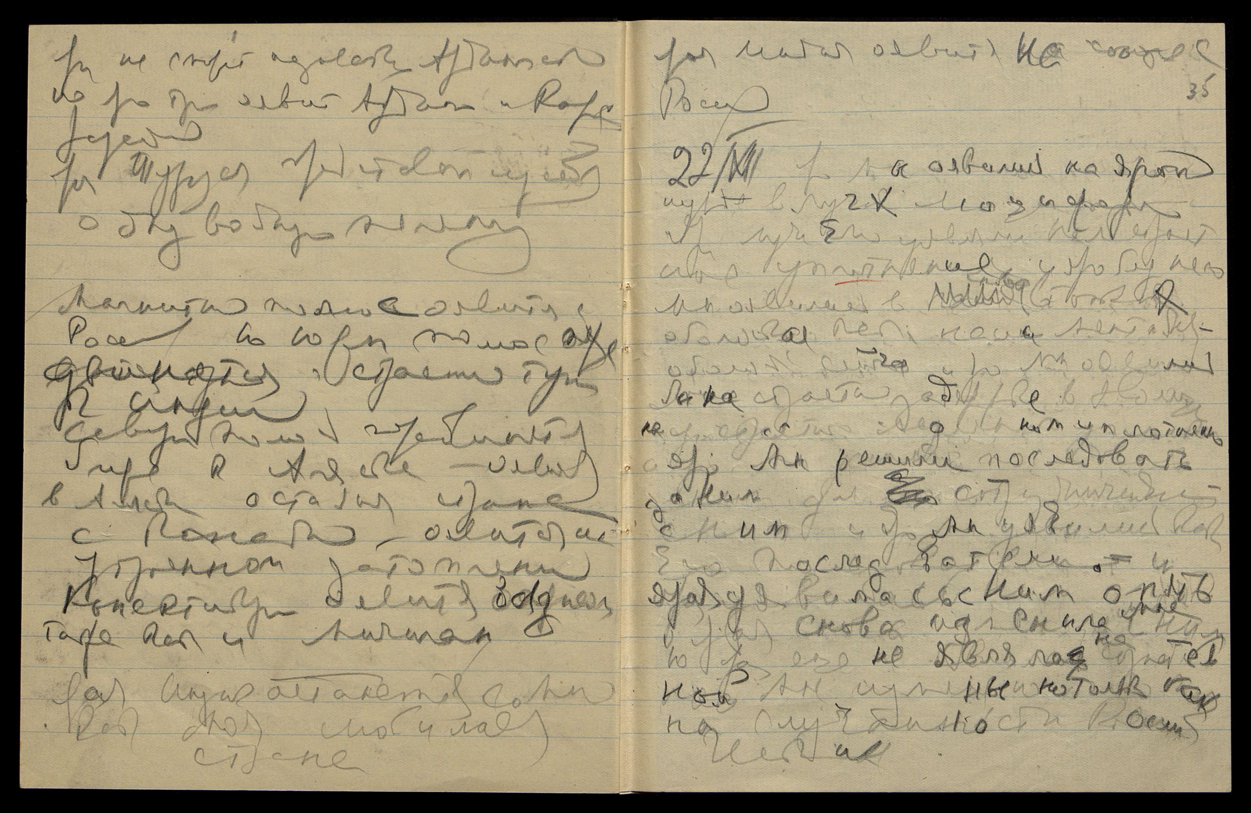 21/XII. Яви напряженное спокойствие. Ярая тут опять омрачила свою ауру. Яро не могу сотрудничать с тобой на строительстве космическом. Ярая утомилась писанием писем и ярым советом им о терпении и терпимости, котор[ый] сама тут не может выполнить.
