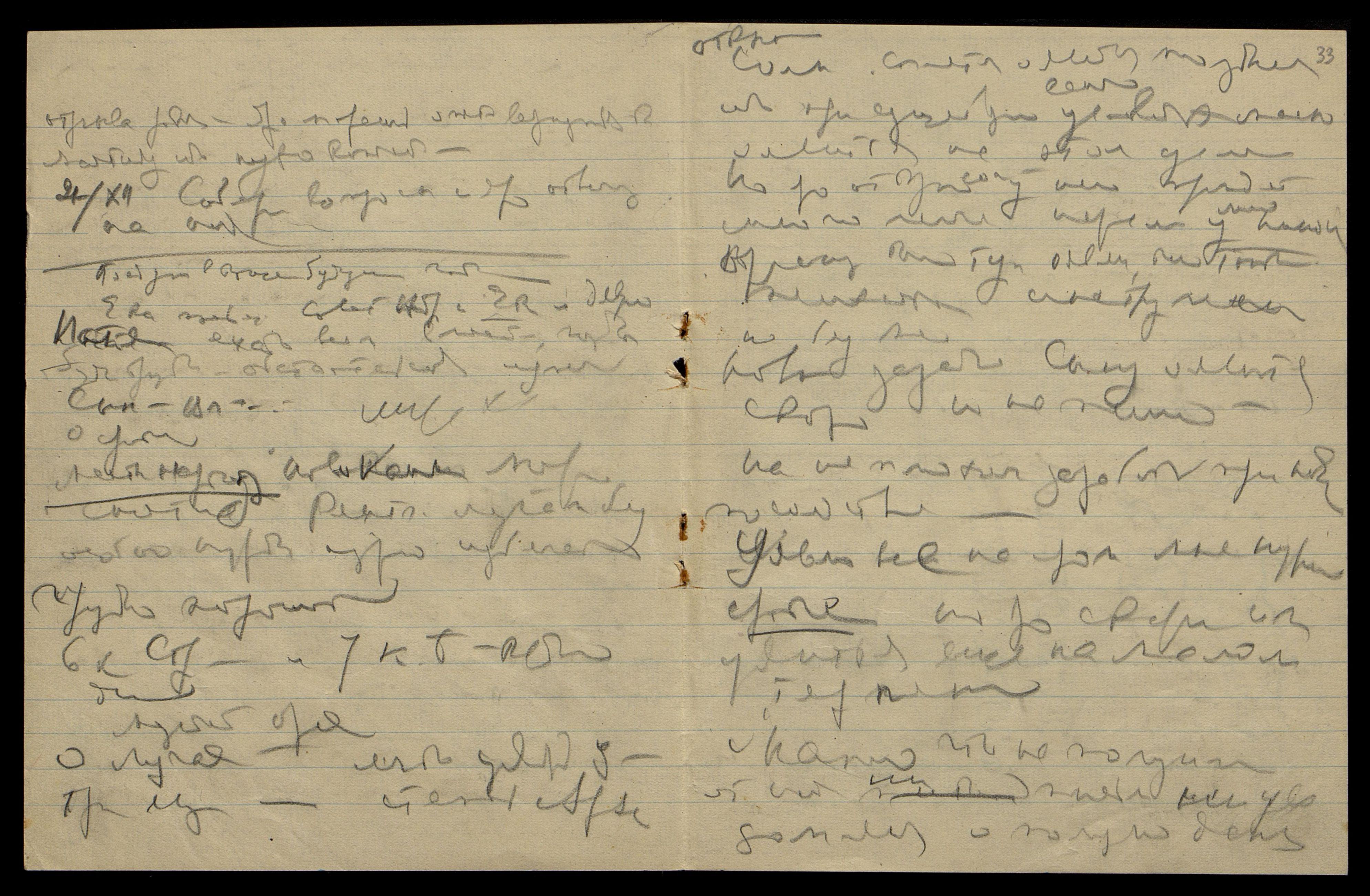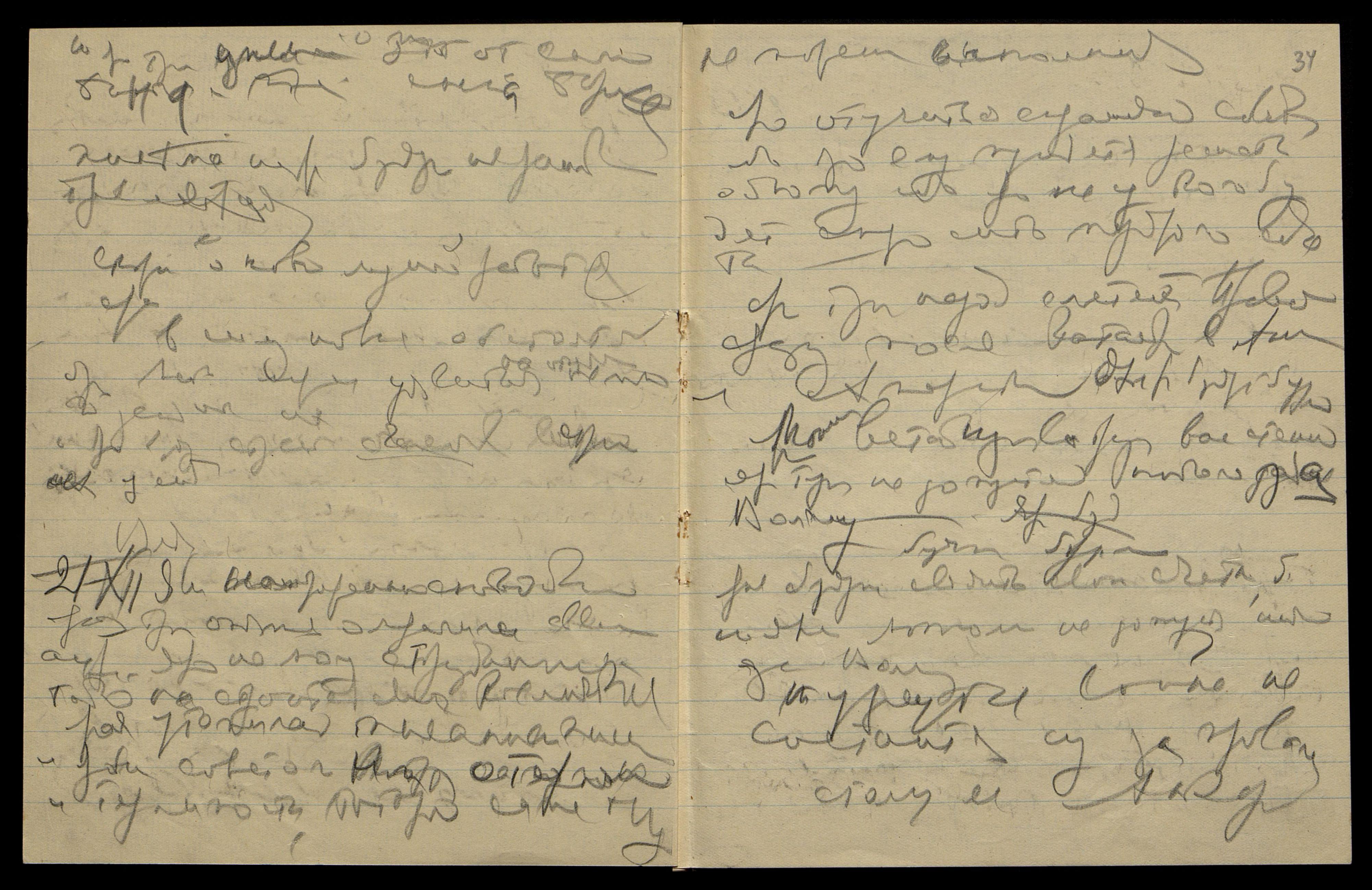 22/XII. Яро Мы оявились на ярой нужде в лучах Люцифера. Ярые лучи Его уявляли нам страстное уплотнение и яро без него мы оявились снова в тонких оболочках, как наши ментальные оболочк[и] сейчас, и яро мы оявились бы на страстной задержке в эволюции, на яро страстном медленном уплотнении, и яро Мы решили последовать за ним для сотрудничества с ним, и яро мы уявились, как Его последователи. Ярая уявилась с Ним опять, и ярая снова изменила Мне с Ним, но ярая еще не являла сознательной Мне измены, но только как на случайности Космическ[ой].