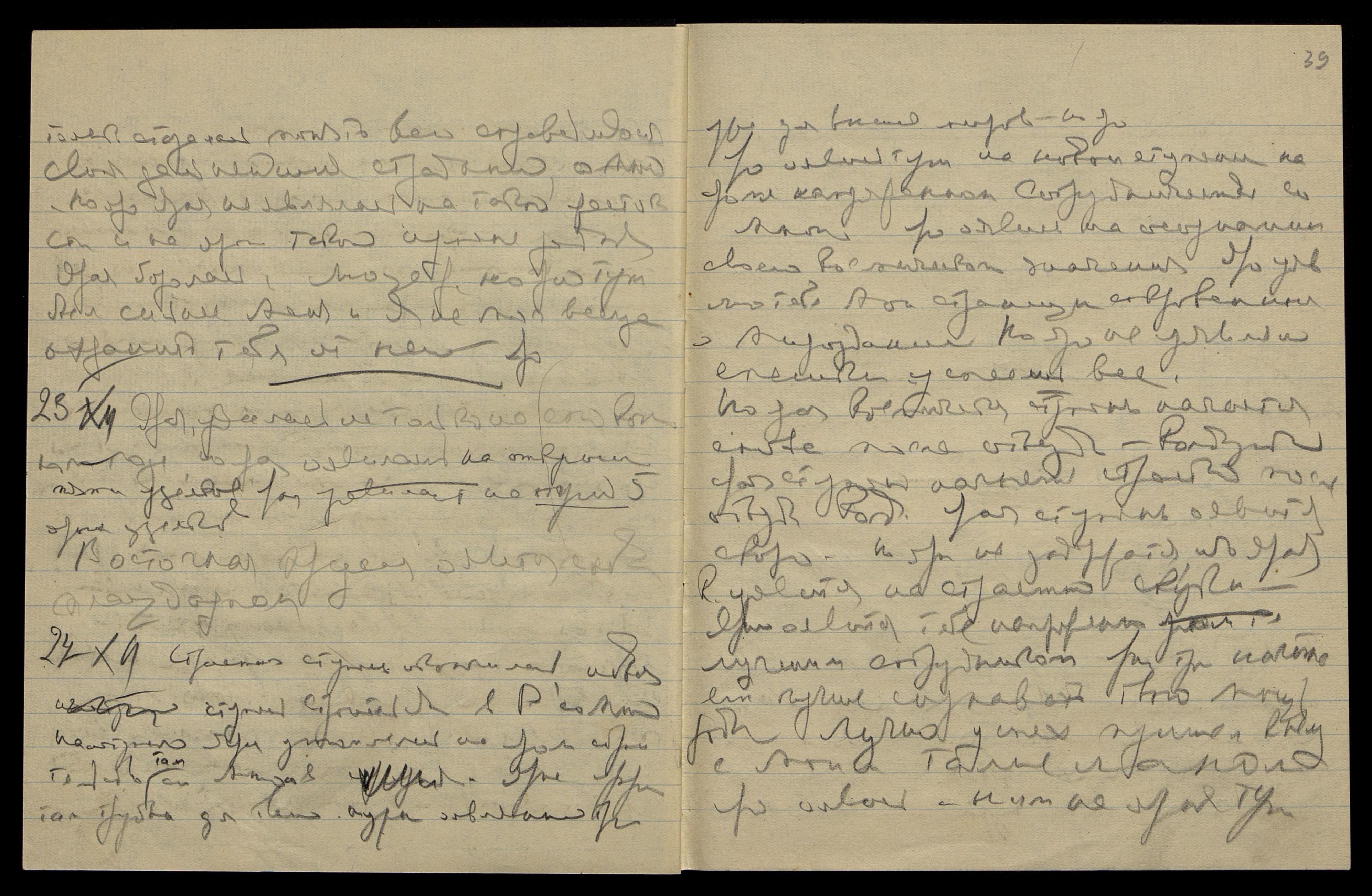 24/XII. Страстная ступень окончилась, новая ступень строительства в Р[оссии] со Мною наступила. Ярая утомилась на яром строительстве там со Мною. Ярое [слово неразборчиво] там трудно для твоей ауры, оявленной тут уже для высших миров, но яро...
