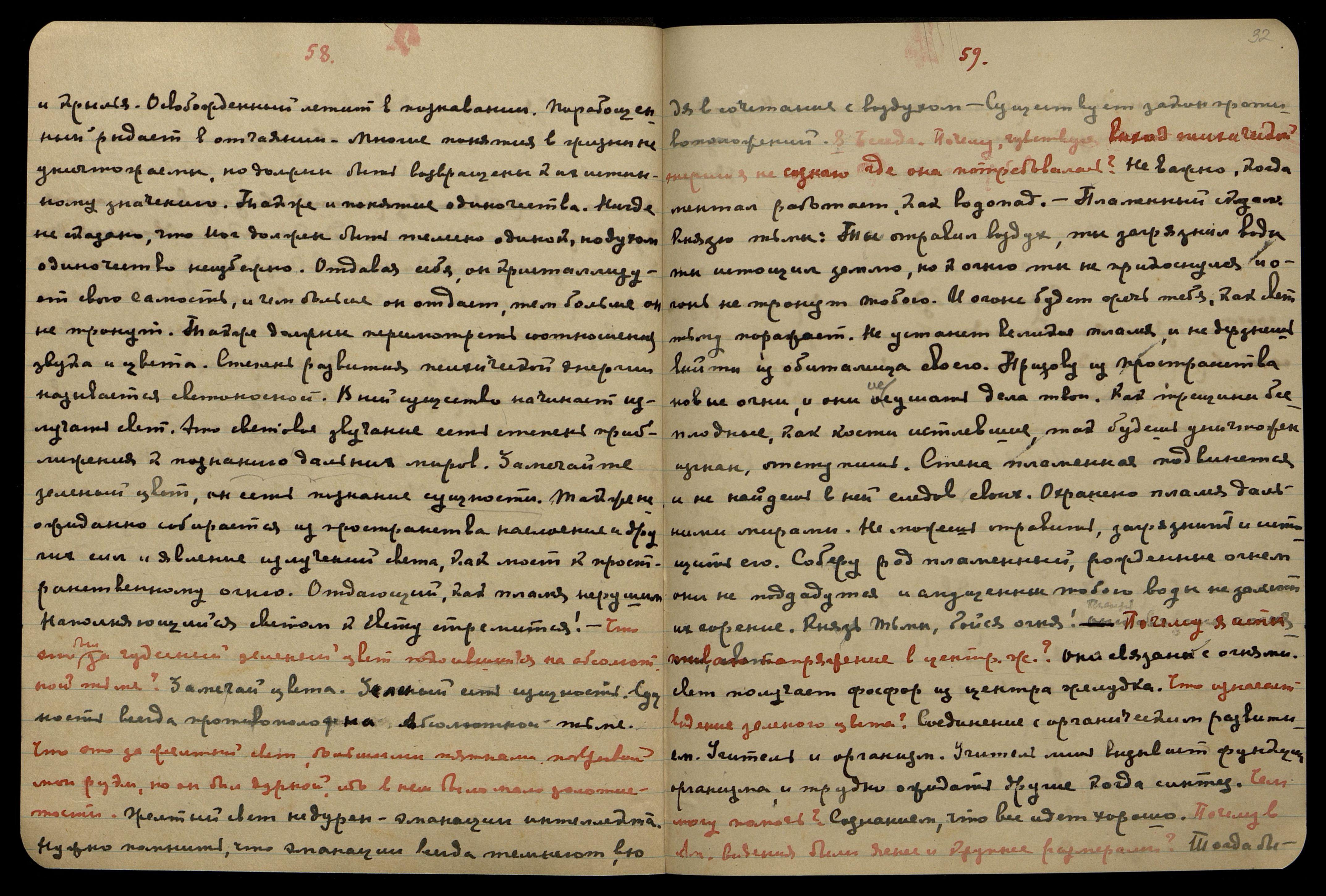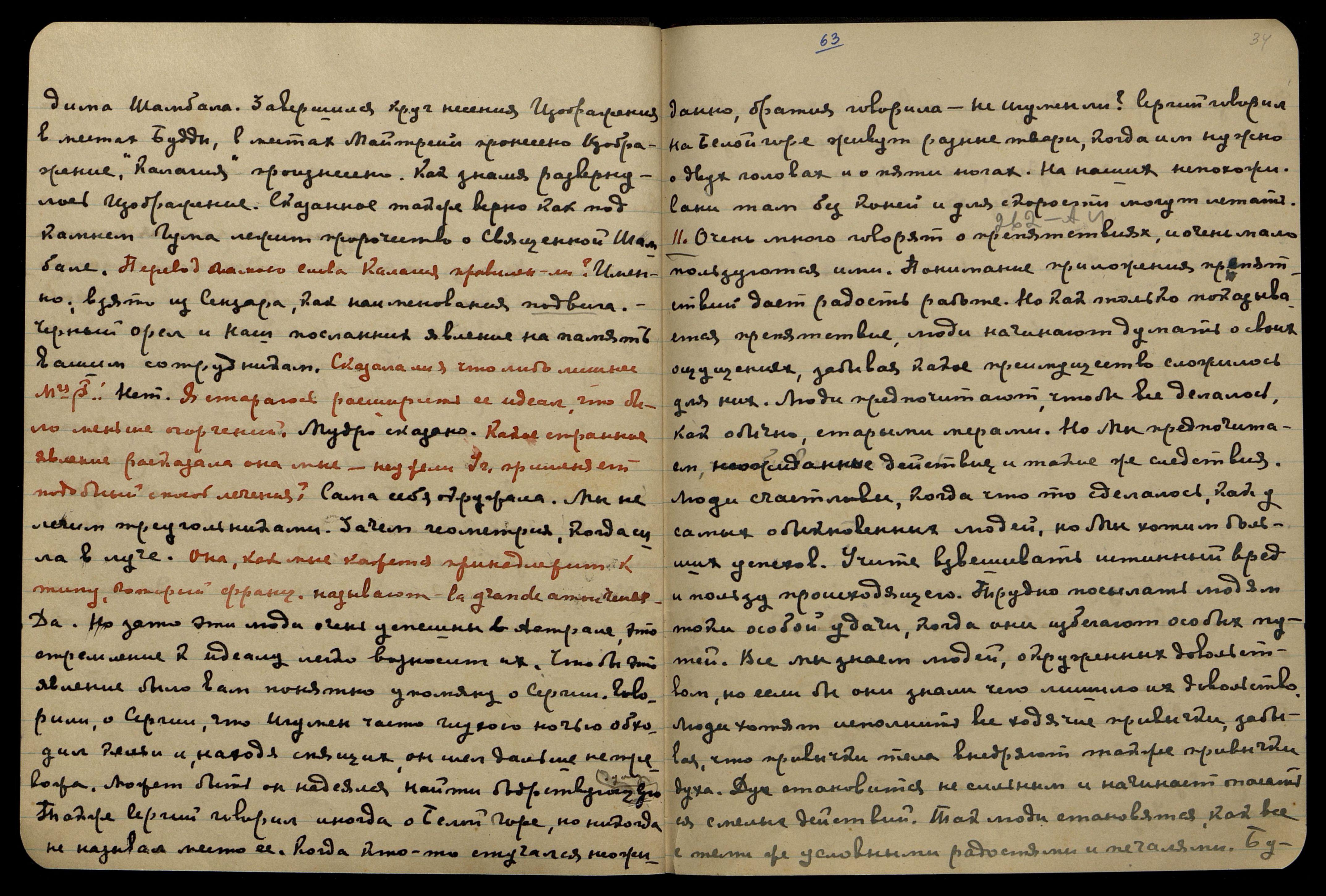 Теперь др[угое]. Можно видеть, как дела М[осквы] и Т[ибета] трудны. Не принявший дар духа сохнет. Через еще вечное невежество уничтожают себя темные.