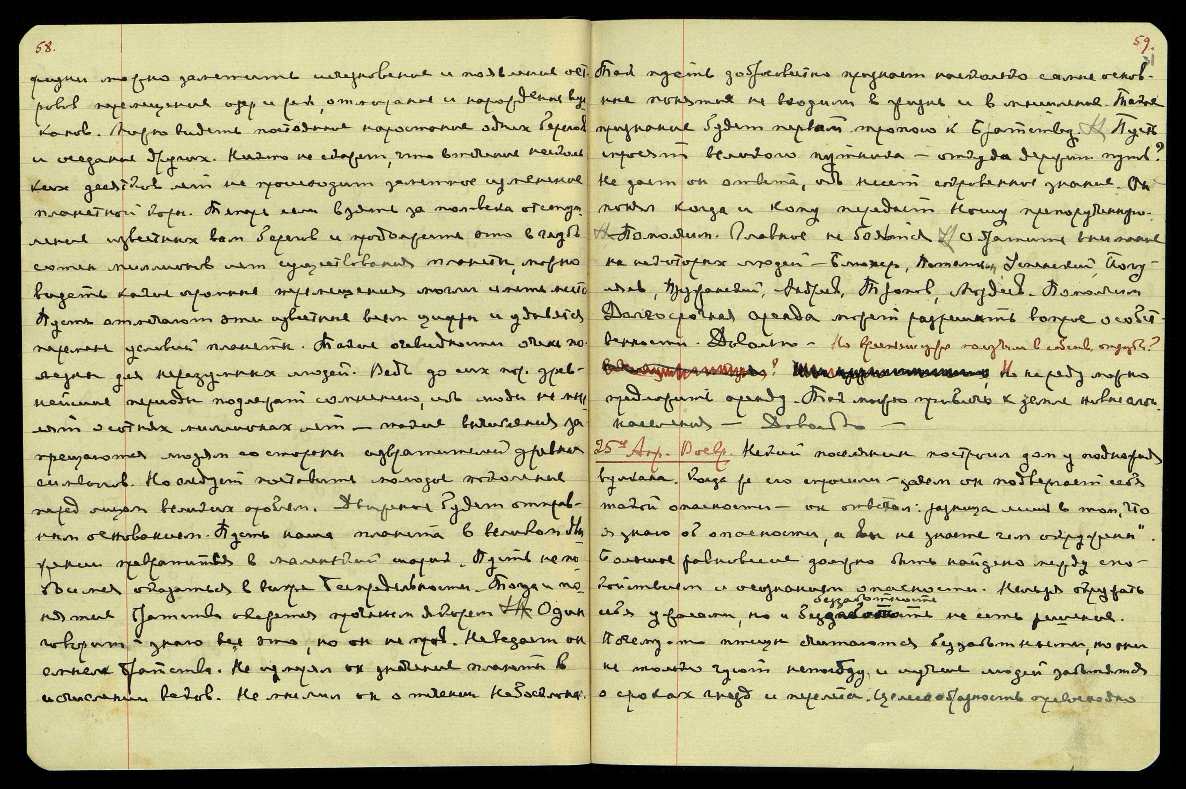 26-е апреля. Понед[ельник]. Посидим спокойно. Сейчас происходит важное решение. Мир опять содрогается. Сядем.