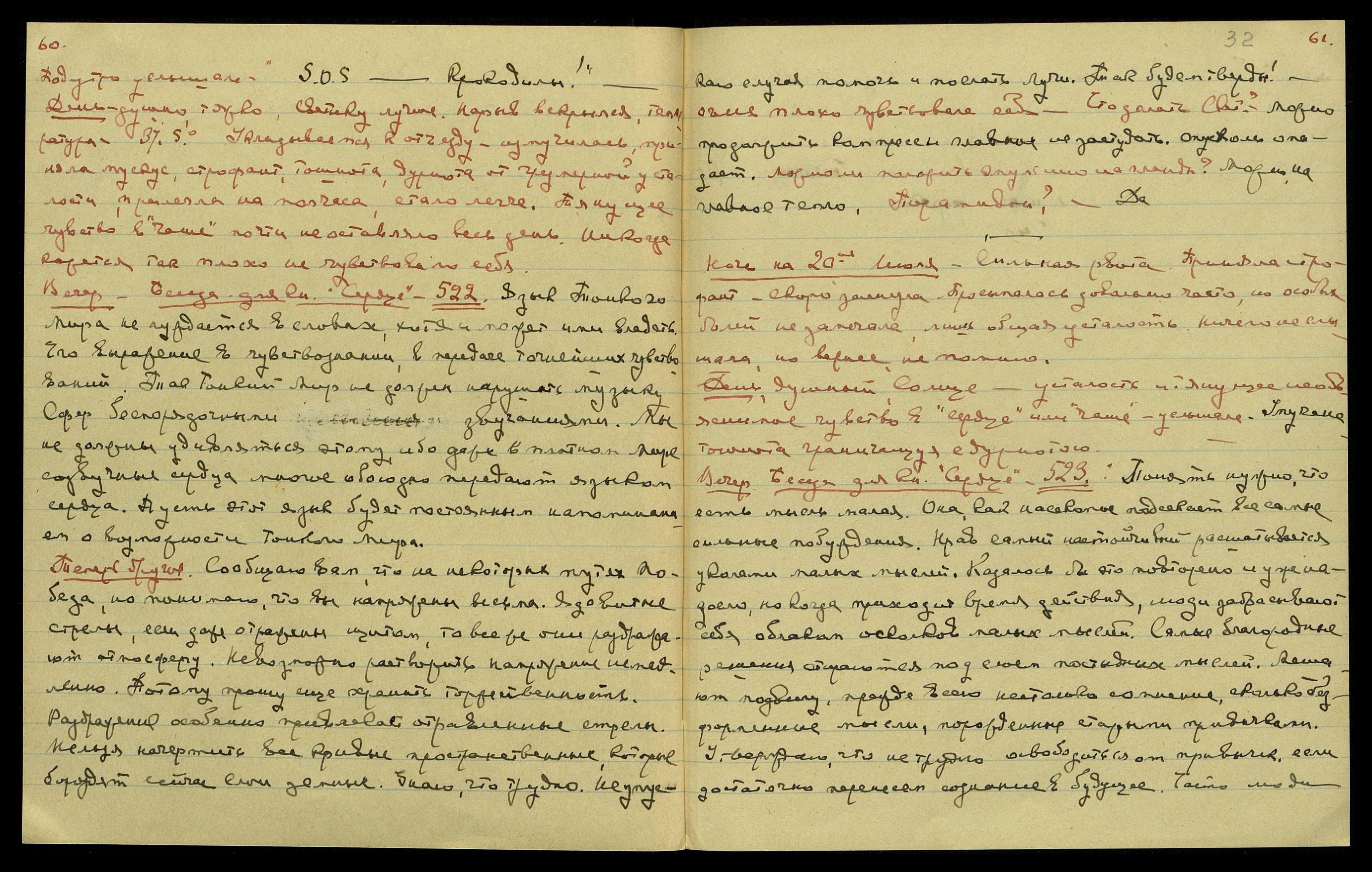 Вечер. Беседа для кн[иги] "Сердце" § 520. После пульсаций мира не ужасны трепетания сердец человеческих. Нужно потому везде примерять большой пробный камень, иначе невозмножно просуществовать, погрузившись в лужи подлости. Мера целой Вселенной нужна там, где шумит Армагеддон. Утешение в соизмеримости. Нужно приложить всю наблюдательность, взвесить вещество битвы. Часто люди всё-таки понимают [битву] не больше уличного столкновения, забывая, что сражение в почтовом ящике, в [улыбке] ухищрённой лжи и в задержке Света. Битва гораздо драматичнее, нежели обыватели её понимают. Когда говорю о бережности, тоже понимайте на семь концов.