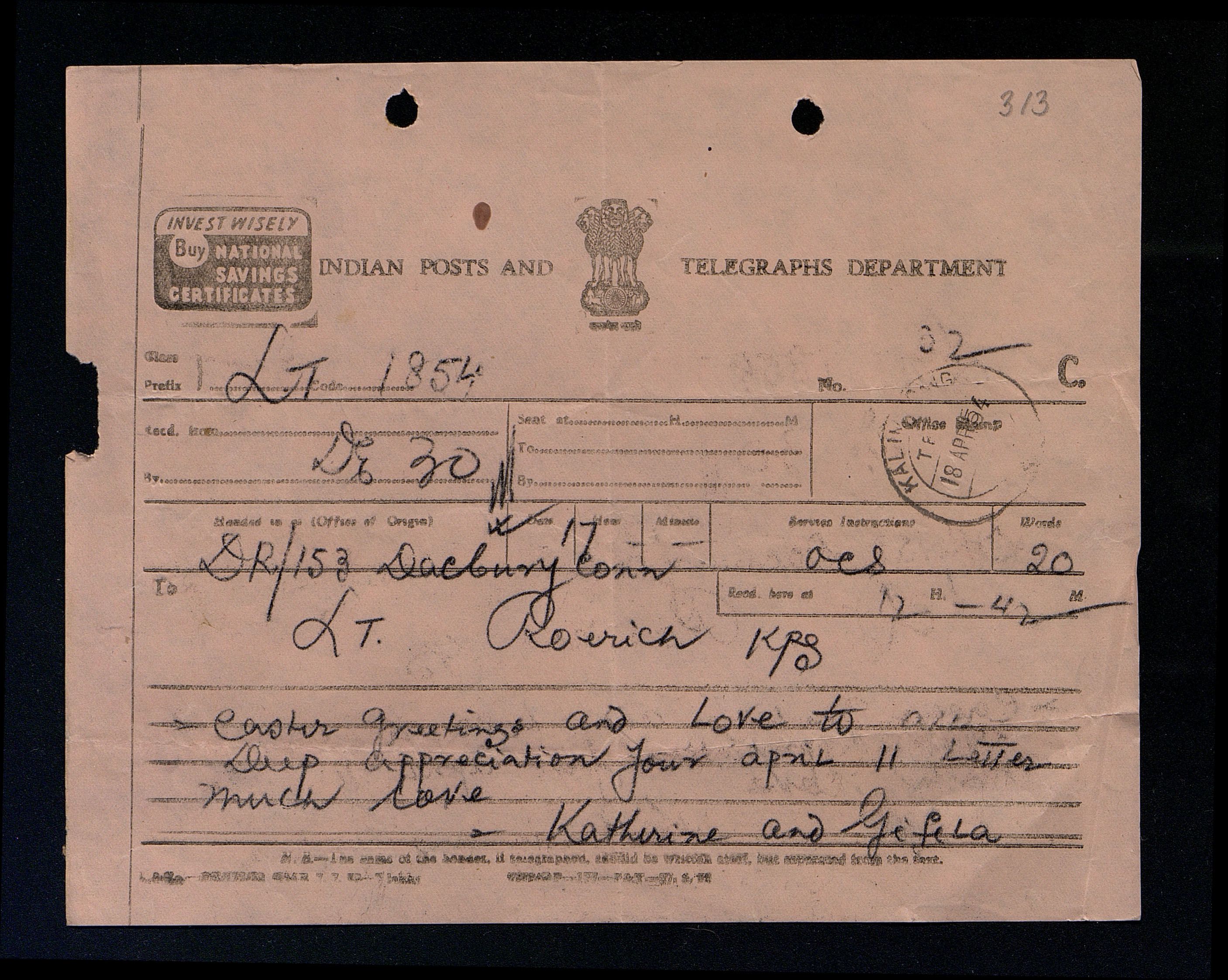 Am getting these few lines off to you in a hurry. Our friend, ([Shanti] Bh[atnagar]), wrote and advised I change my account where it now is to another bank. As the Punjab Nat[ional] Bank has changed hands, and now a Mr. Dalmiya controls it. He, our friend, advises I change my account to the Imperial, but if any change is ADVISED by you, I would prefer to make it to the National City Bank of New [Delhi?] in Bombay [India]. At least they keep one informed and write letters one can understand. Our friend Bh[atnagar] says there has been a rush on the Punjab Bank, and it can fail, but he does not think so before two or three months. As our friend has given me the same advice and request to change banks several times before, I do not feel very alarmed by his news. But am writing all this so you will know what is taking place.