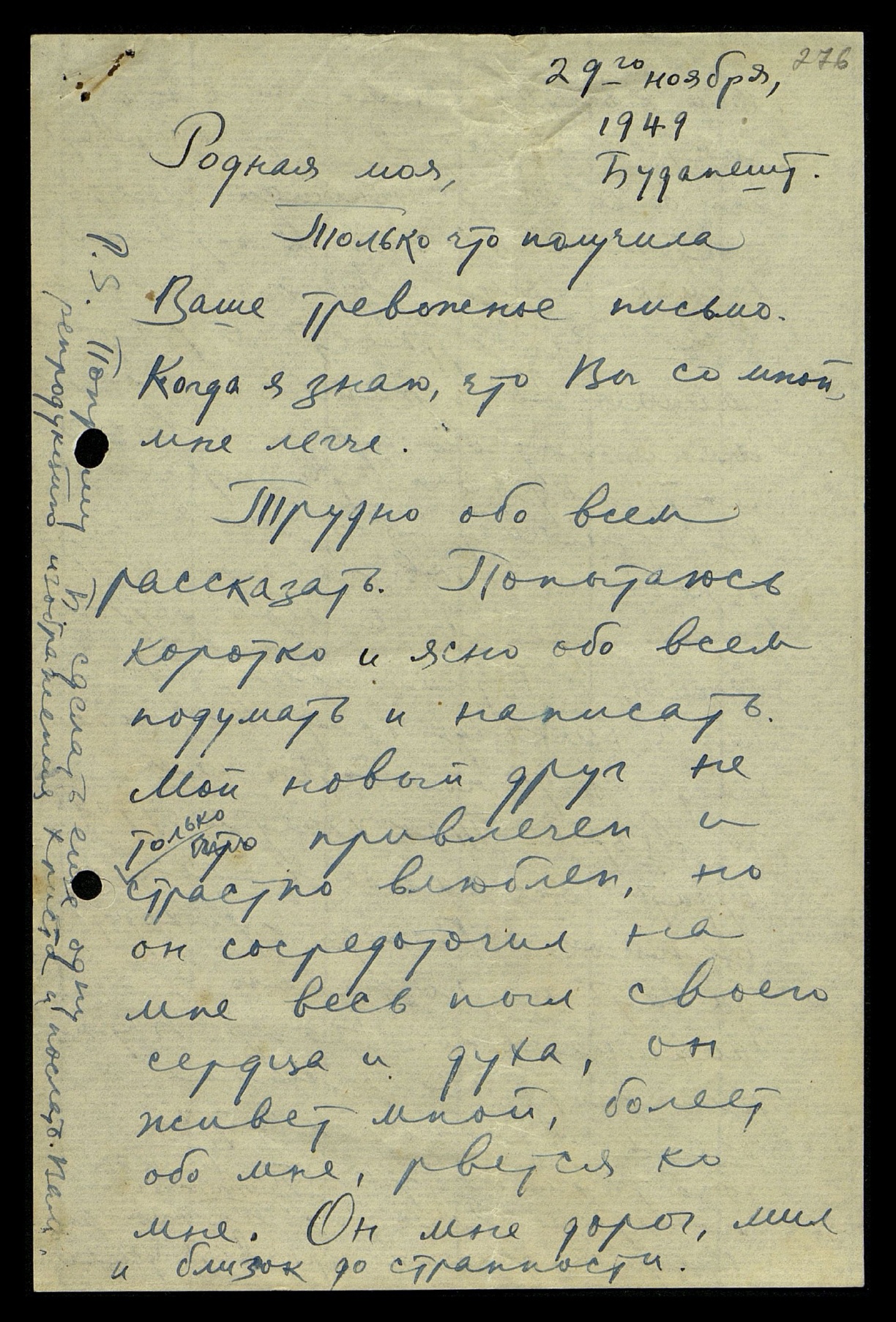 Родная моя, только что получила Ваше тревожное письмо. Когда я знаю, что Вы со мной, мне легче.