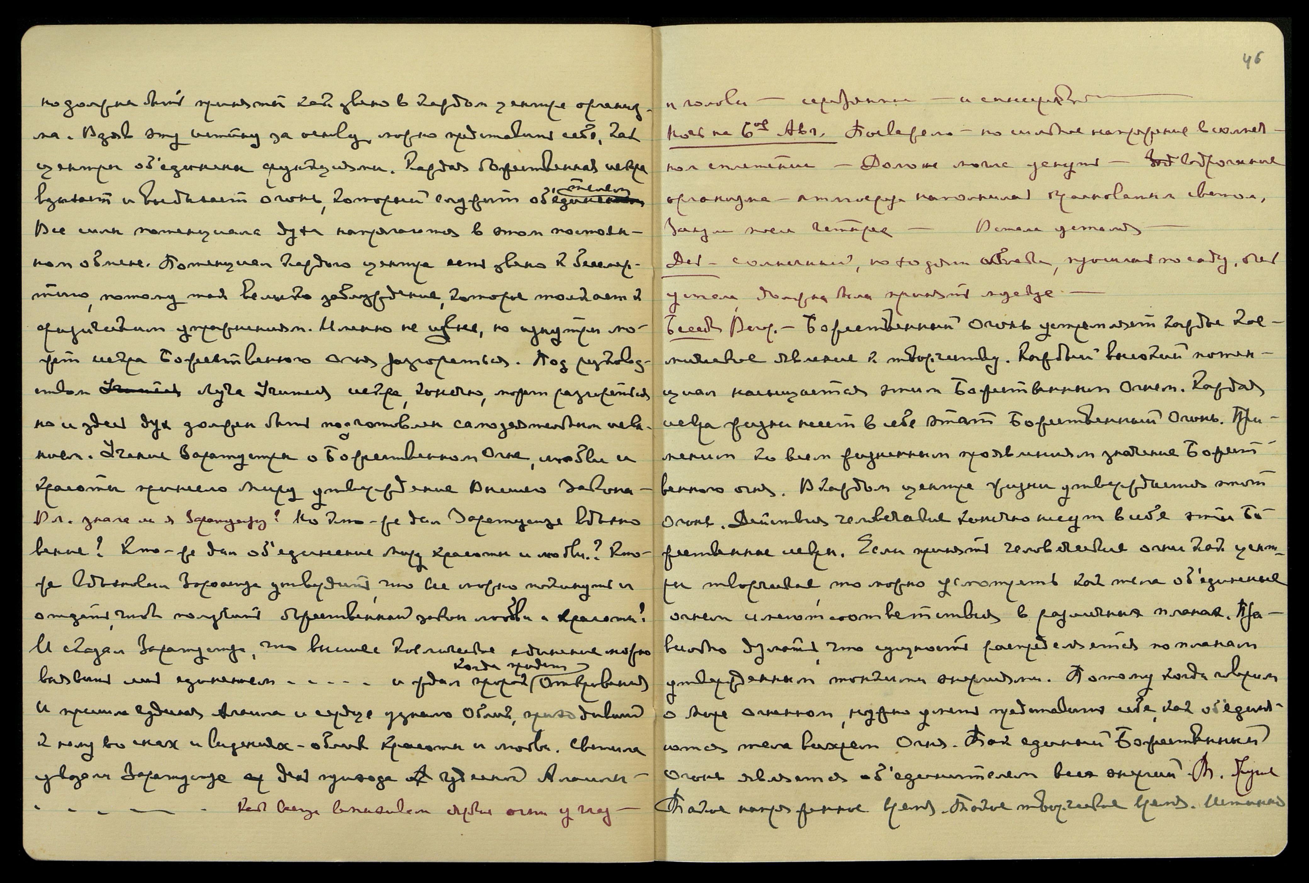 Ночь на 6-е авг[уста]. Посвежело, но сильное напряжение в солнечном сплетении. Долго не могла уснуть. Содрогание организма, атмосфера наполнилась красноватым светом. Заснула после четырех. Встала усталая.