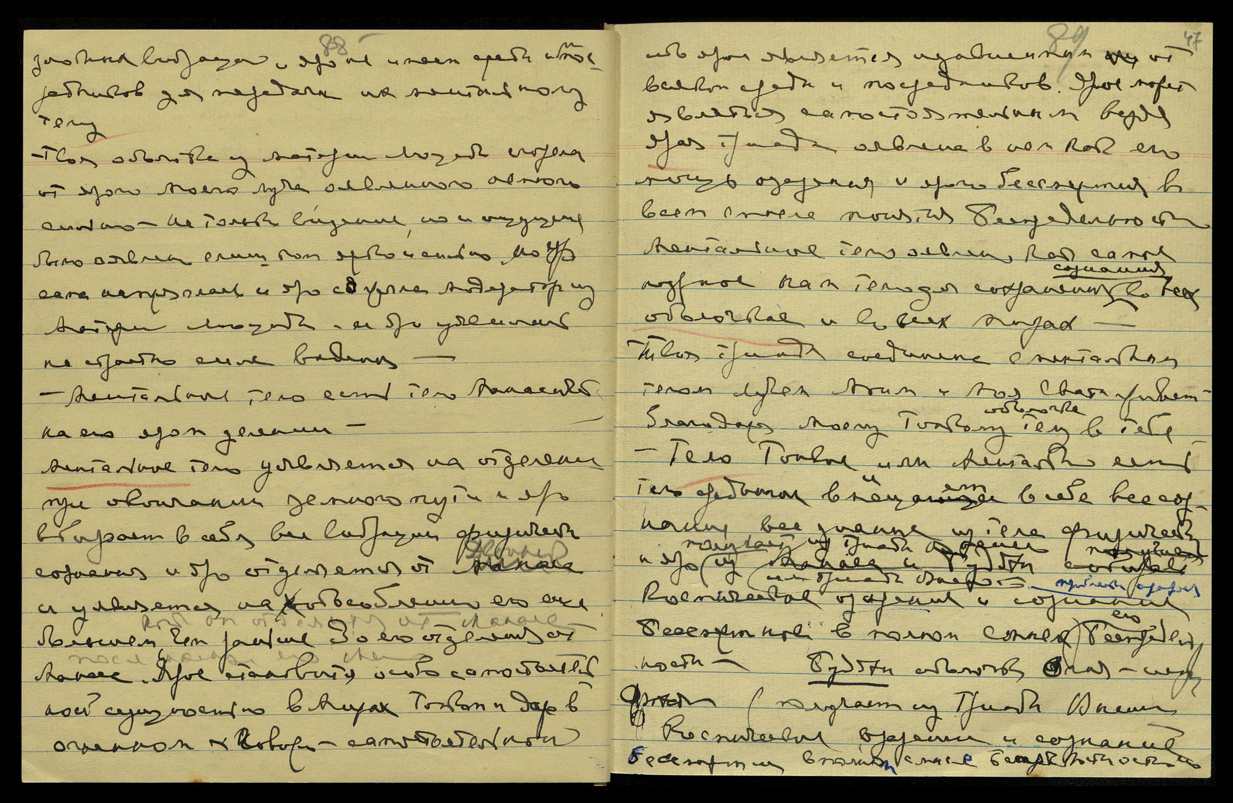 Ментальное тело уявляется на отделении при окончании земного пути и яро вбирает в себя все вибрации физического сознания, и яро отделяется от Двойника [зачеркнуто слово "Манаса"] и уявляется на обособлении его еще большем, чем раньше, до его отделения от Манаса*. Ярое становится особо самостоятельной сущностью в Мирах Тонком и даже в Огненном. Говорю — самостоятельной, ибо ярое является независимым от всякой среды и посредников. Ярое может являться самостоятельным везде. Ярая триада оявлена в нем как его мощь озарения и ярого бессмертия во всем смысле понятия Беспредельности. Ментальное тело оявлено как самое нужное нам тело для сохранения сознания во всех оболочках и во всех Мирах.