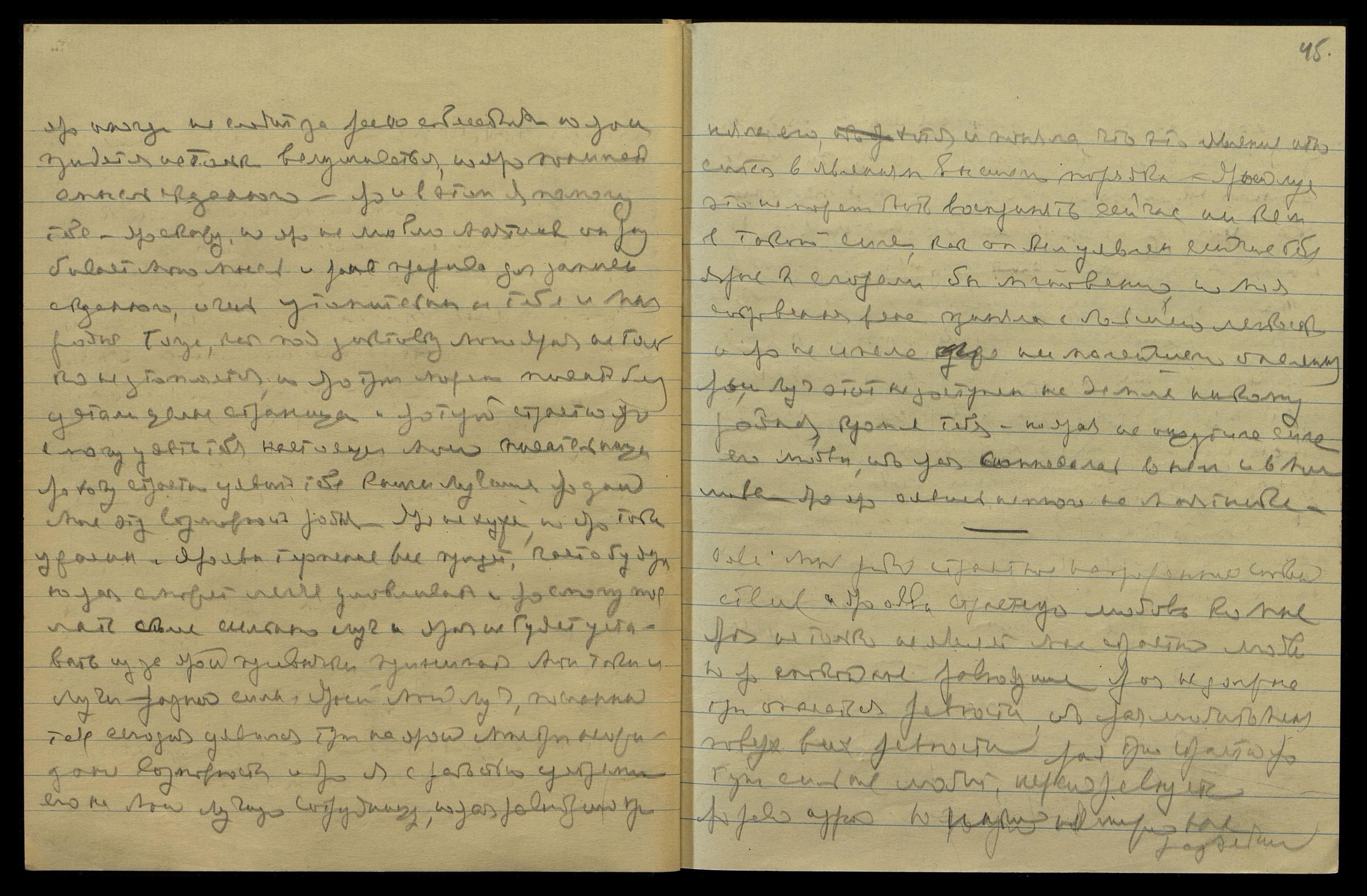 Ояви Мне, родная, страстное напряженное спокойствие и яро ояви страстную любовь ко Мне. Ярая не только не являет Мне страстной любви, но яро спокойное равнодушие. Ярая не должна тут опасаться ревности, ибо ярая любит Меня поверх всех ревностей. Ярая тут страстно яро тут сильнее любит, нежели ревнует. Яр[ая] рев[ность] [слово неразборчиво]. Но никто не может нас разъединить.