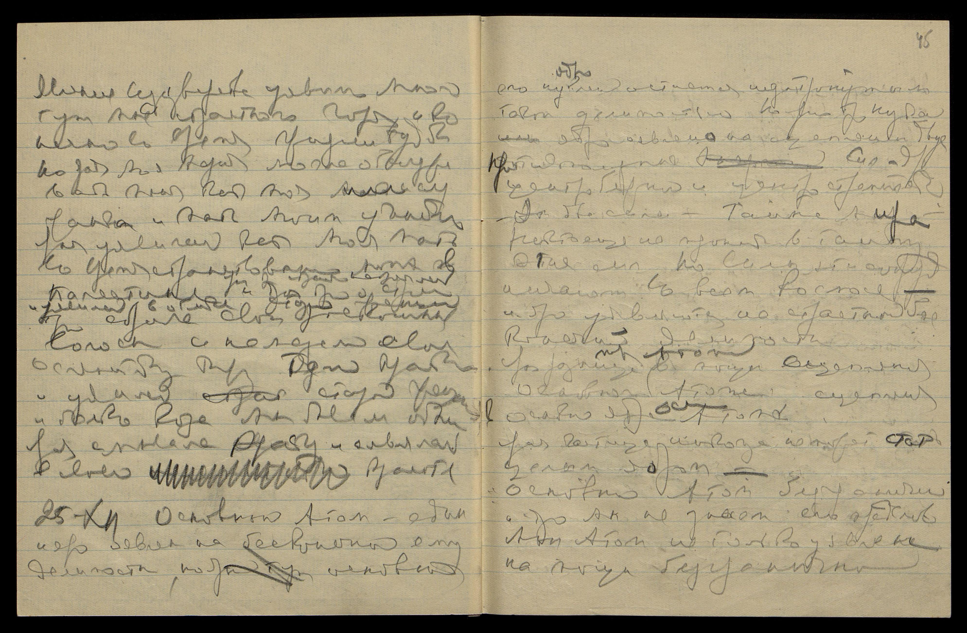 Но ярое тут оявлен[ие] Основн[ого] Атом[а] с Магнитной Силой — его первая Индивидуализ[ация], и яро тут Основной Атом сотрудничал с Магнитной Силою в нем неисчислимые эоны времени, пока ярый не уявился на первом ему взрыве и на бесчисленных Атомах, одинаковых в их основной мощью с Основным Атомом, одинаков[ых] по сущности с Осн[овным] Атомом, но не по страстной силе с Основн[ым] Атомом. Ярая cила Осн[овного] Атома осталась при нем.