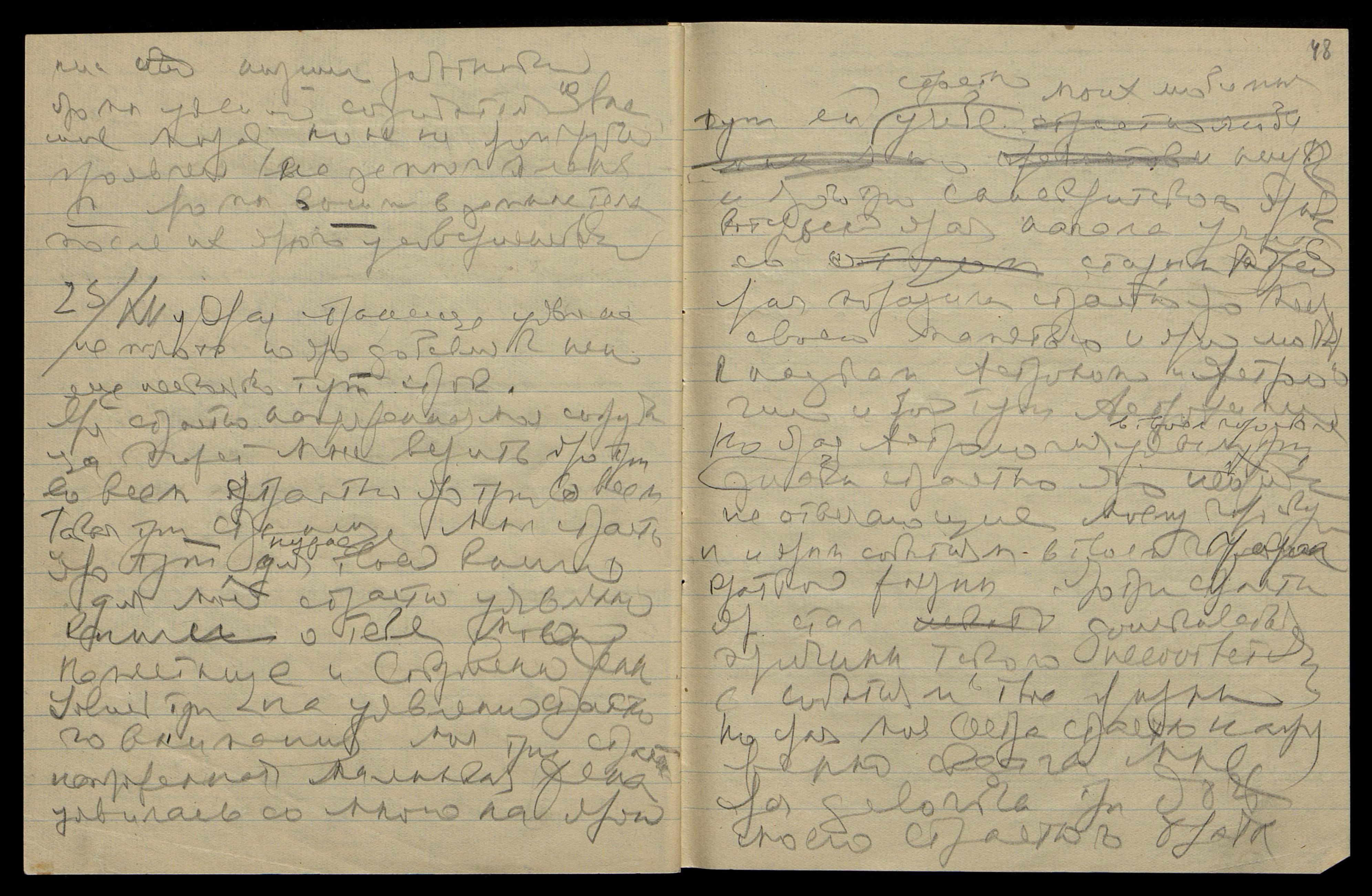 25-XII. Основной Атом — един и яро оявлен на бесконечной ему делимости, но основное его ядро остается незатронутым такой делимостью. Но ярое тут ядро оявлено на сцеплении двух противоположных сил — яр[ой] центробежной и центростремительной. Эти две силы — Тайна Мира. Никто еще не проник в тайну этих сил. Но Силы эти сотрудничают во всем Космосе и яро уявляются на страстной бесконечной делимости.