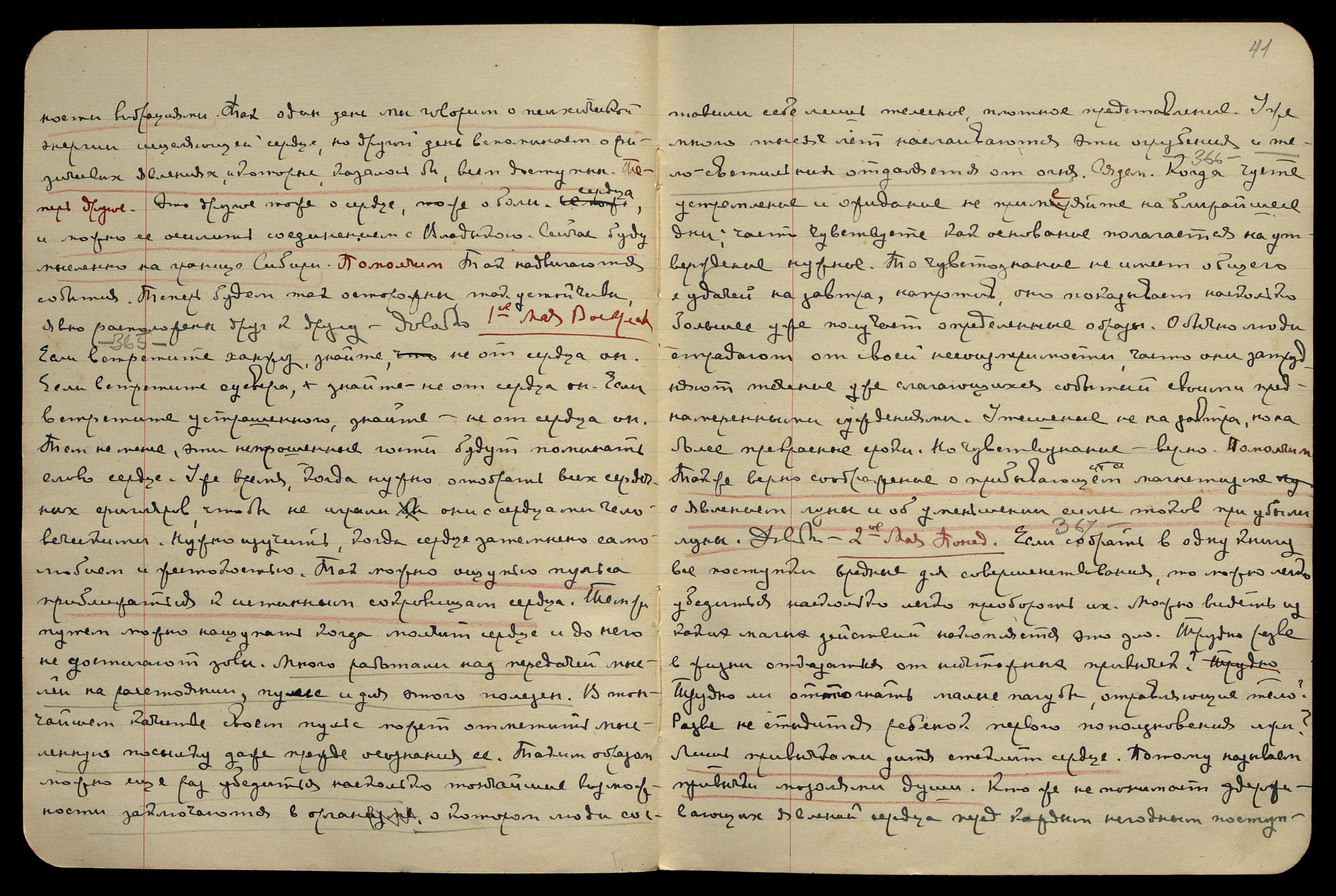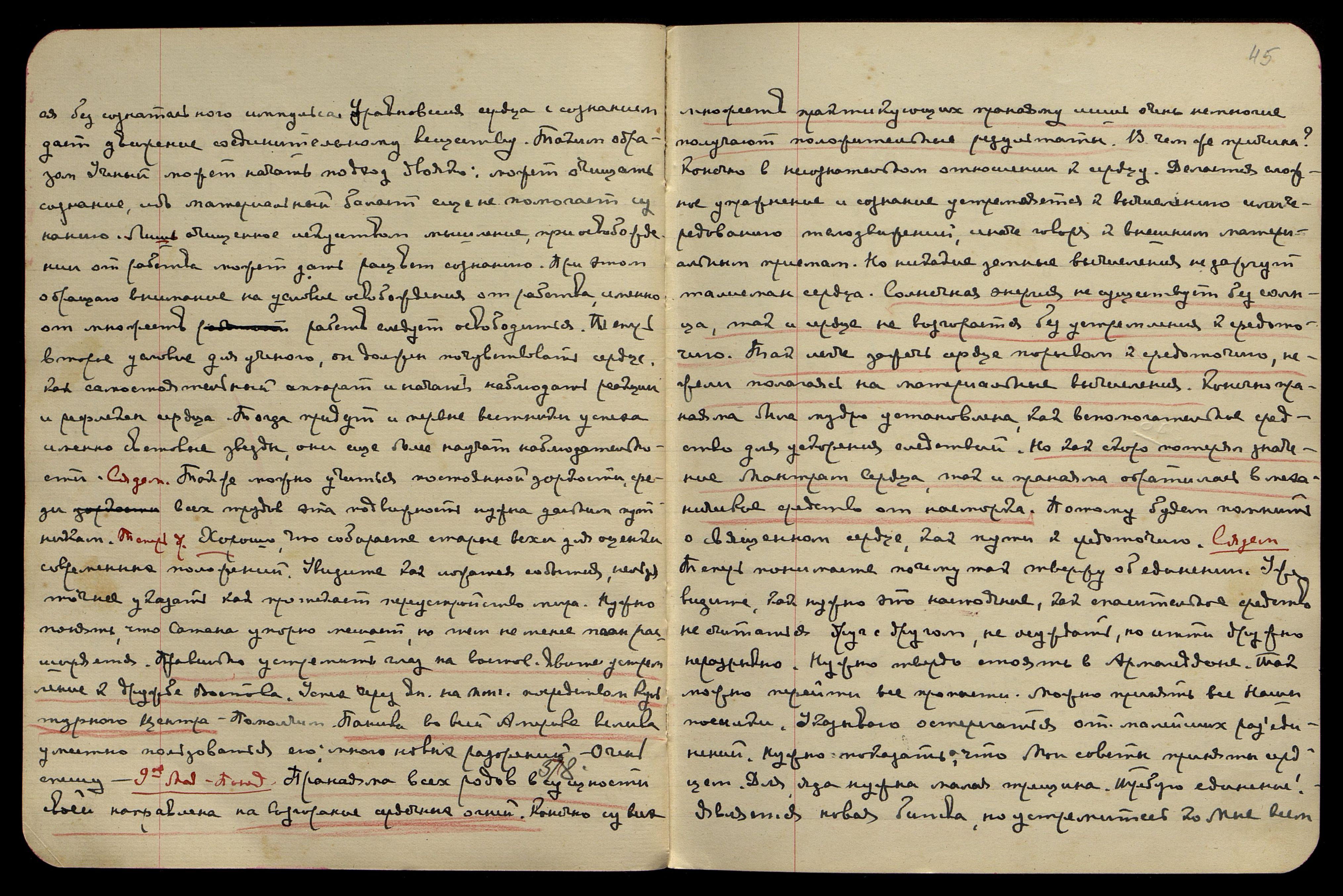 25-ое апр[еля]. Понед[ельник]. [Сердце] § 353. Думает сердце, утверждает сердце, объединяет сердце. Можно помнить всегда значение сердца, так долго затемнённое мозгом. Сердце вздрогнет первое, сердце затрепещет первое, сердце узнаёт много прежде, нежели рассудок мозга дерзнёт помыслить. Не отнимая извилистый путь мозга, разве можем умолчать о прямейшем достижении сердца, о стреле подобном луче, равном чудо-сердцу. Так можно приобщаться к сердцу и ограждаться от всех нападений зла. Лишь сердцем можно учуять коричневый газ и вовремя прекратить удушение. Так и победа на поле Армагеддона останется за сердцем. Потому так советую сердце хранить как уничтожающий меч против всякого зла. Сядем. Так и в Америке, и в Японии, и всюду поставьте сердце на дозоре. Хотя путь и крутой, но чем круче, тем ближе. Также ночь кончиться долж-