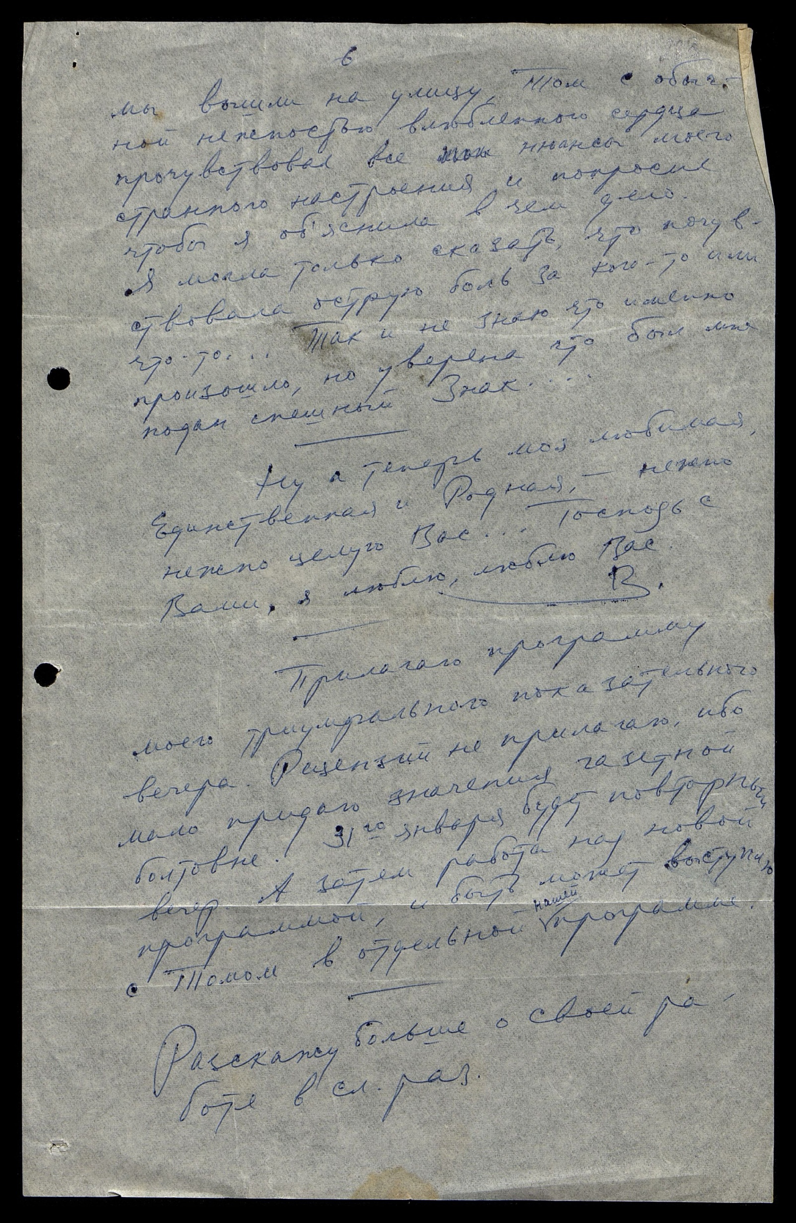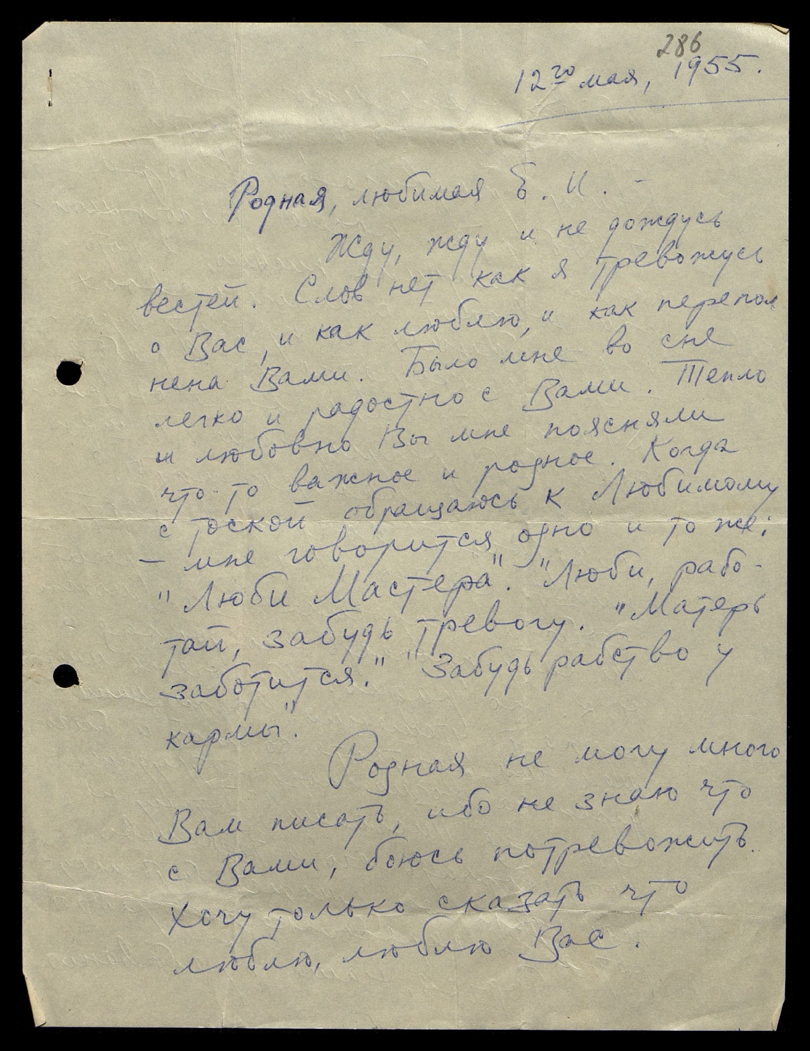 Родная, не могу много Вам писать, ибо не знаю, что с Вами, боюсь потревожить. Хочу только сказать что люблю, люблю Вас.