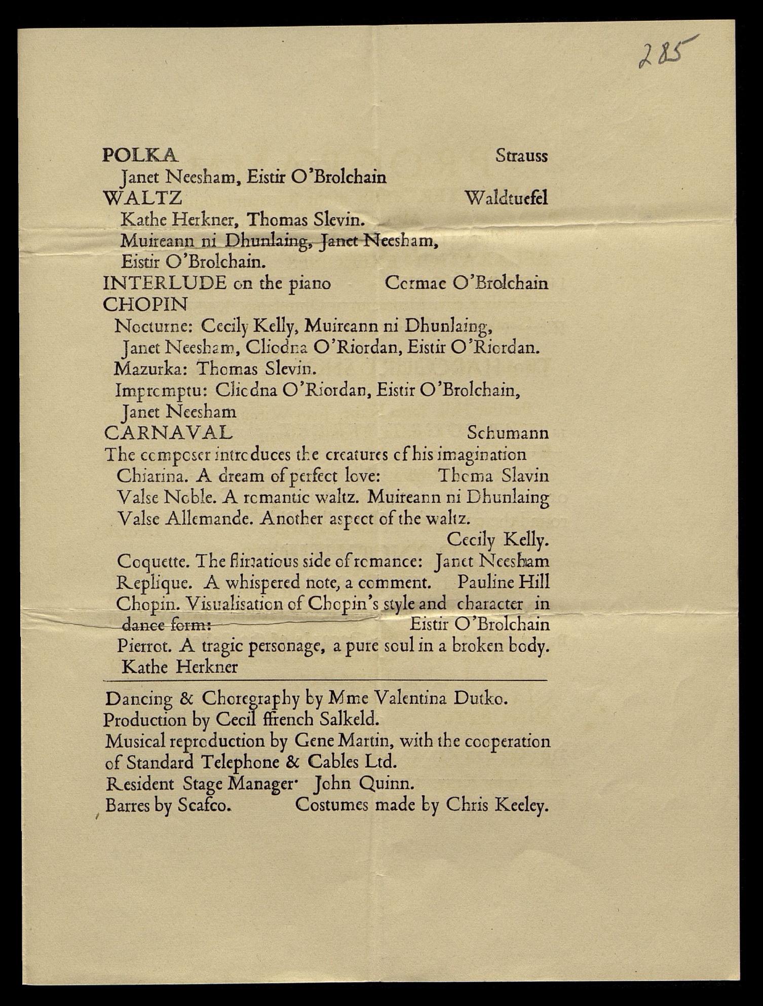 Полин Хилл, Джанет Кейн, Джоан Уилсон, Джанет Нишам, Глионда О'Риордан, Томас Слевин.