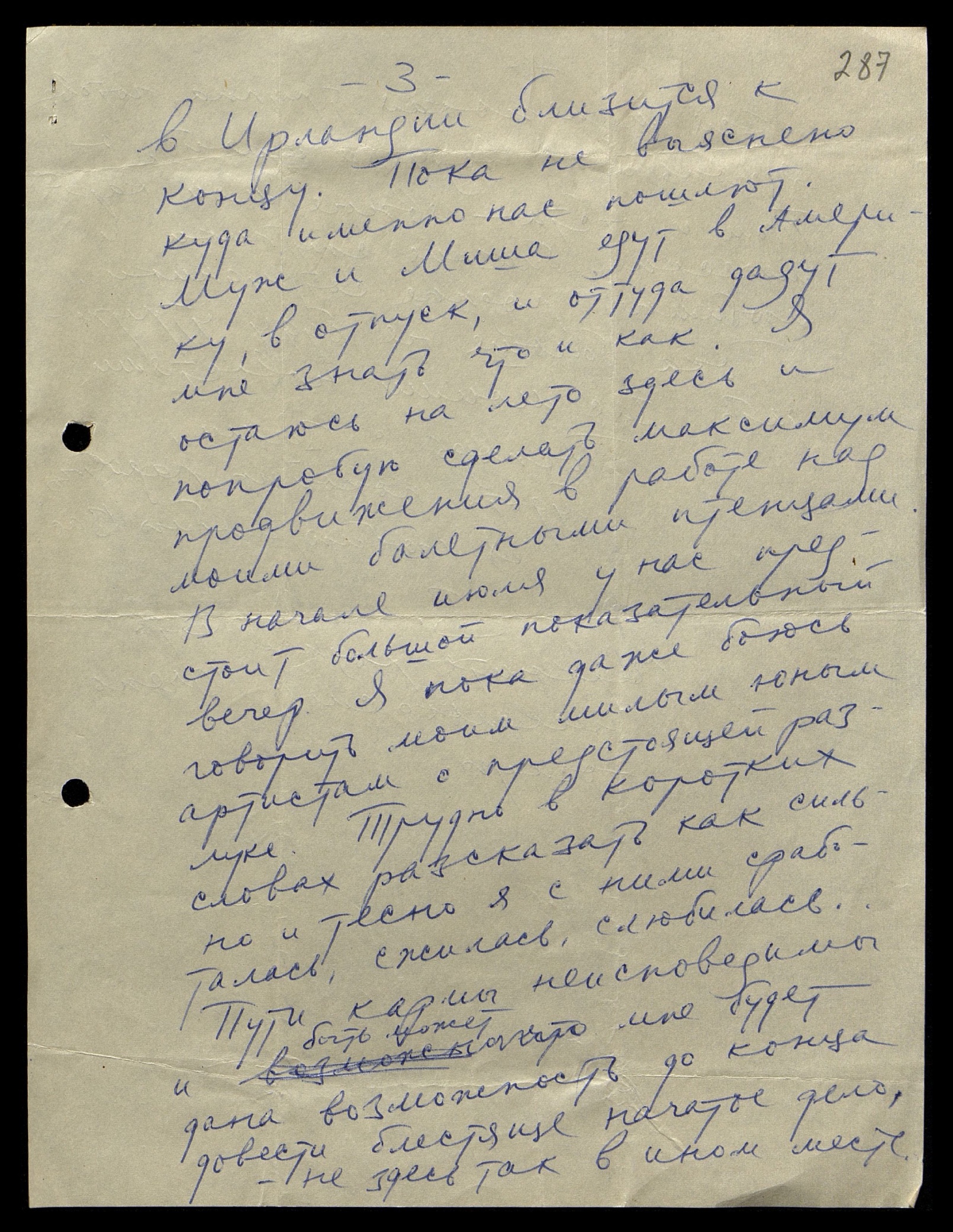 в Ирландии близится к концу. Пока не выяснено, куда именно нас пошлют. Муж и Миша едут в Америку, в отпуск, и оттуда дадут мне знать что и как. Я остаюсь на лето здесь и попробую сделать максимум продвижения в работе над моими балетными птенцами. В начале июля у нас предстоит большой показательный вечер. Я пока даже боюсь говорить моим милым юным артистам о предстоящей разлуке. Трудно в коротких словах рассказать, как сильно и тесно я с ними сработалась, сжилась, слюбилась… Пути кармы неисповедимы и, быть может, мне будет дана возможность до конца довести блестяще начатое дело — не здесь, так в ином месте.