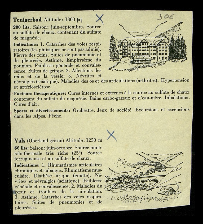 Tenigerbad Altitude: 1300 m 200 lits. Saison: juin-september.Source au sulfate de chaux, contenant du sulfate de magnesie.