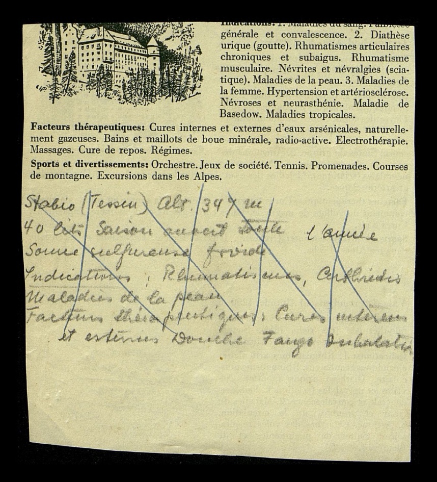 Indications: 1. Catarrhes des voies respiratoires (les phtisiques ne sont pas admis). Fievre des foins. Suites de pneumonie et de pleuresie. Asthme. Emphyseme du poumon. Faiblesse generale et convalescence. Suites de grippe. 2. Affections des reins et de la vessie. 3. Nevrites et nevralgies (sciatique). Maladies des os et des articulations (arthrites). Hypertension et arteriosclerose.