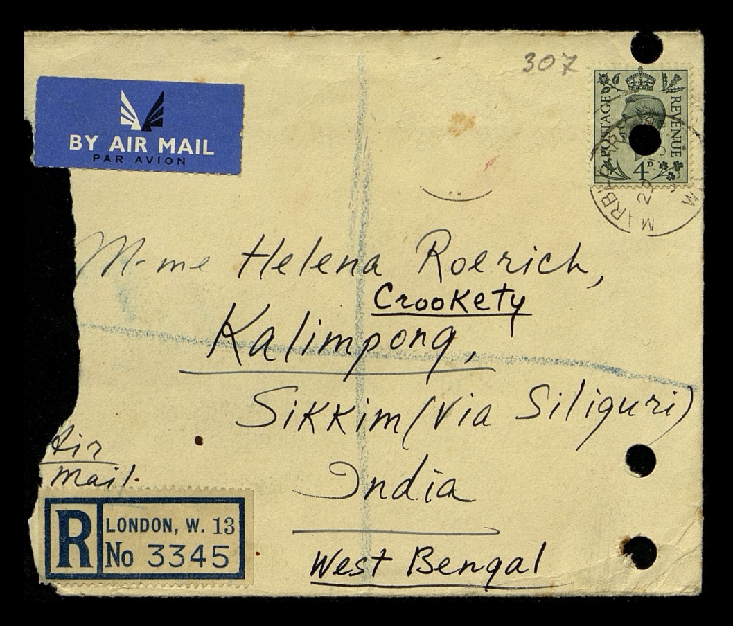 M-me Helena Roerich, Crookety Kalimpong, Sikkim (Via Siliguri), India. West Bengal/