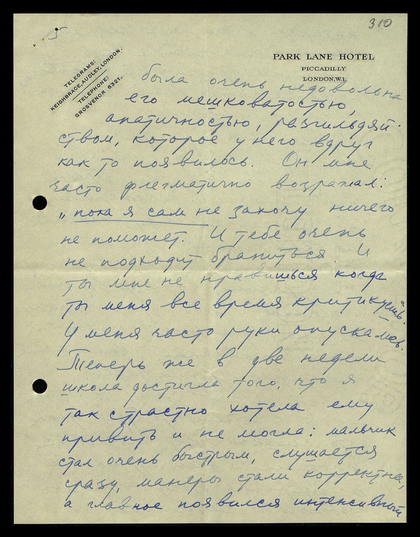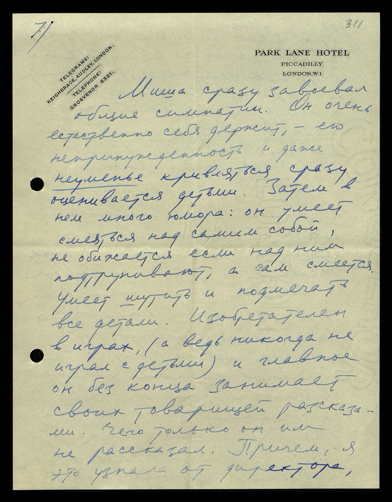 Большое удовлетворение и радость даёт мне Миша и здешние возможности для него. Английские школы, пожалуй, единственные в мире, где детям полезно воспитываться. Не знаю, как дальше будет, когда мальчик подрастёт и будет готов для их высших школ, — там много досадного снобизма и искусственности, — но пока, подготовительная школа, куда я Мишу поместила,