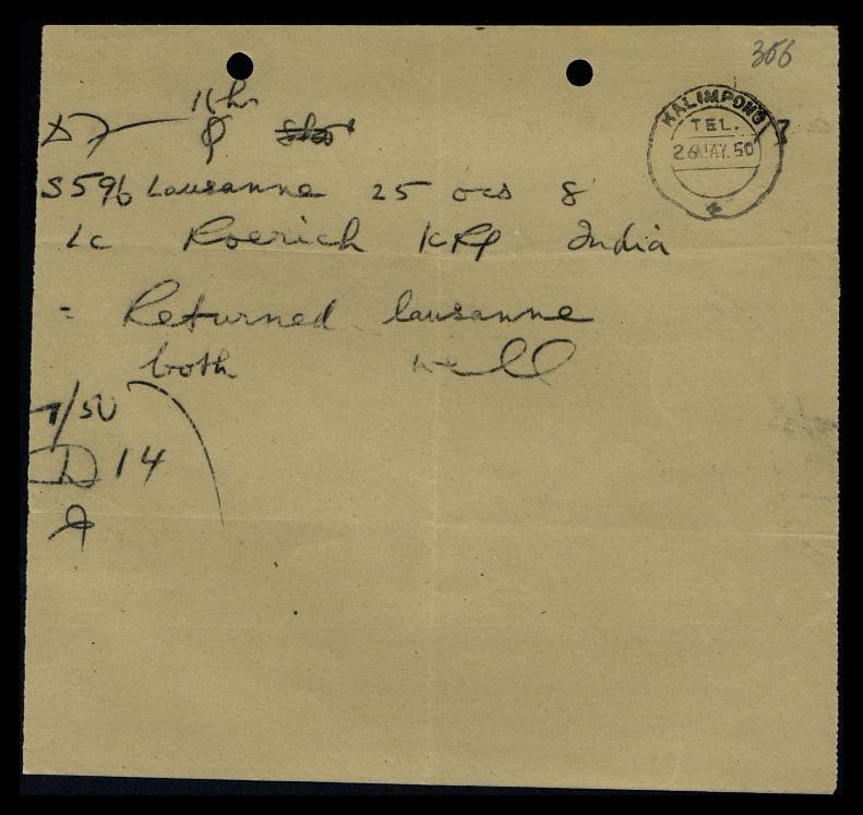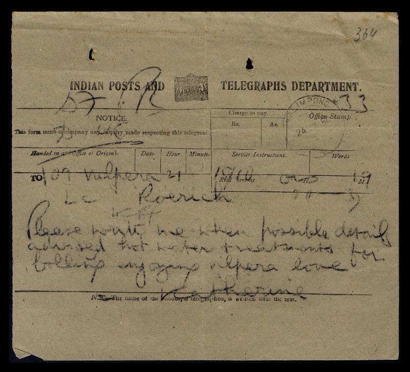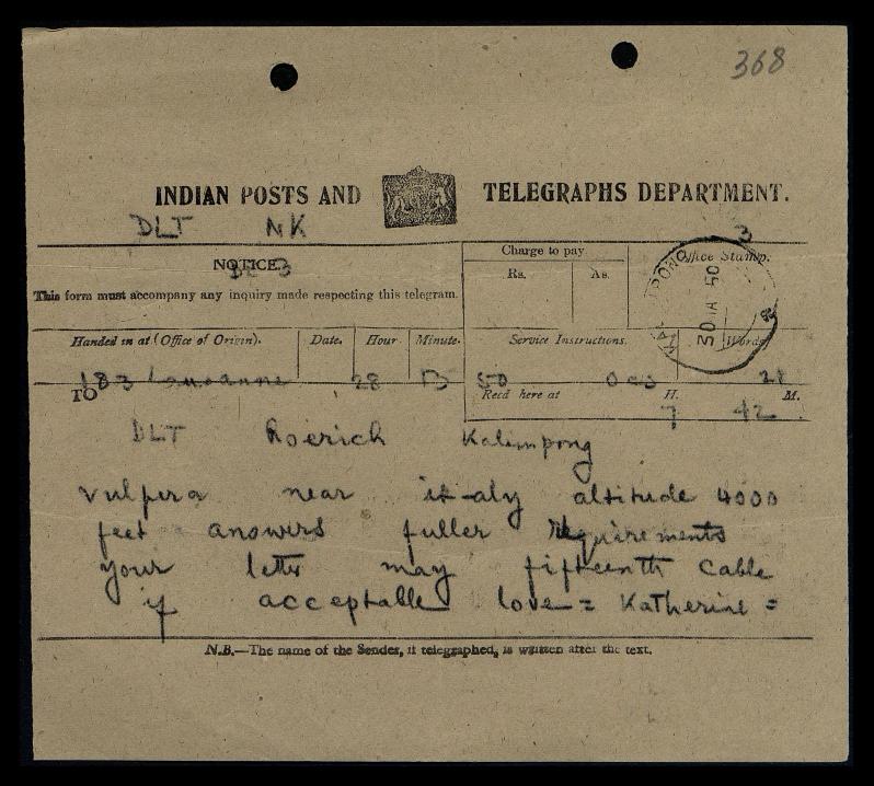 To: Roerich, Kalimpong, India